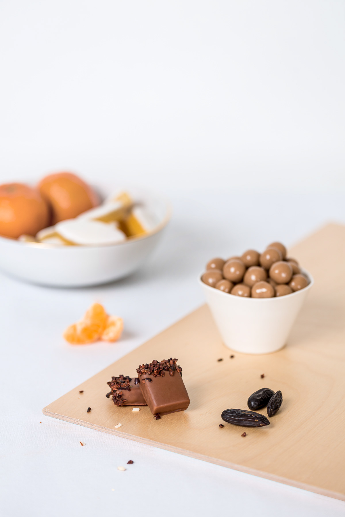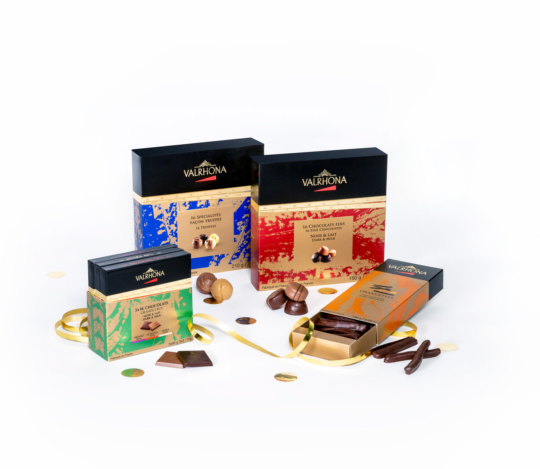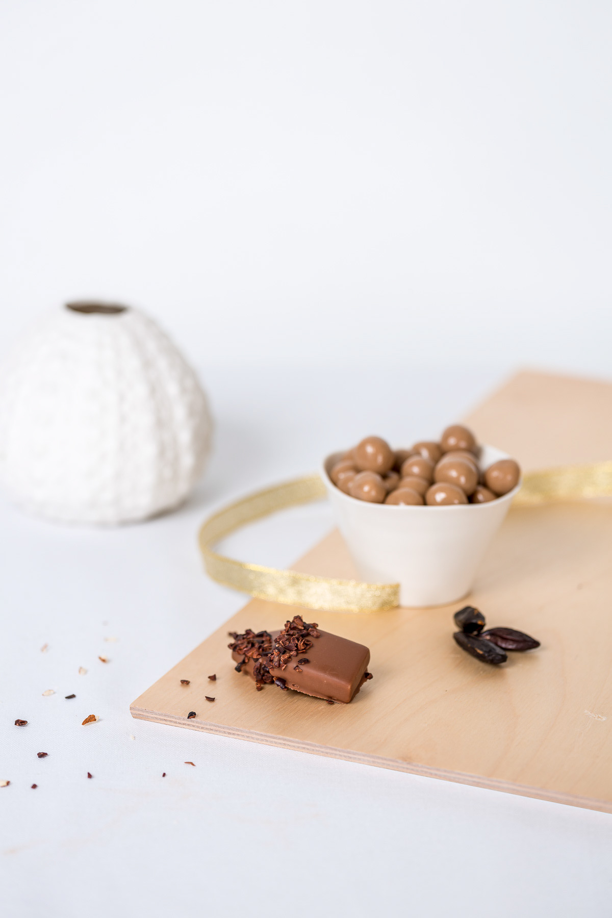 Compositions photographiques de chocolats festifs, en studio et lumière naturelle - Lyon, France
