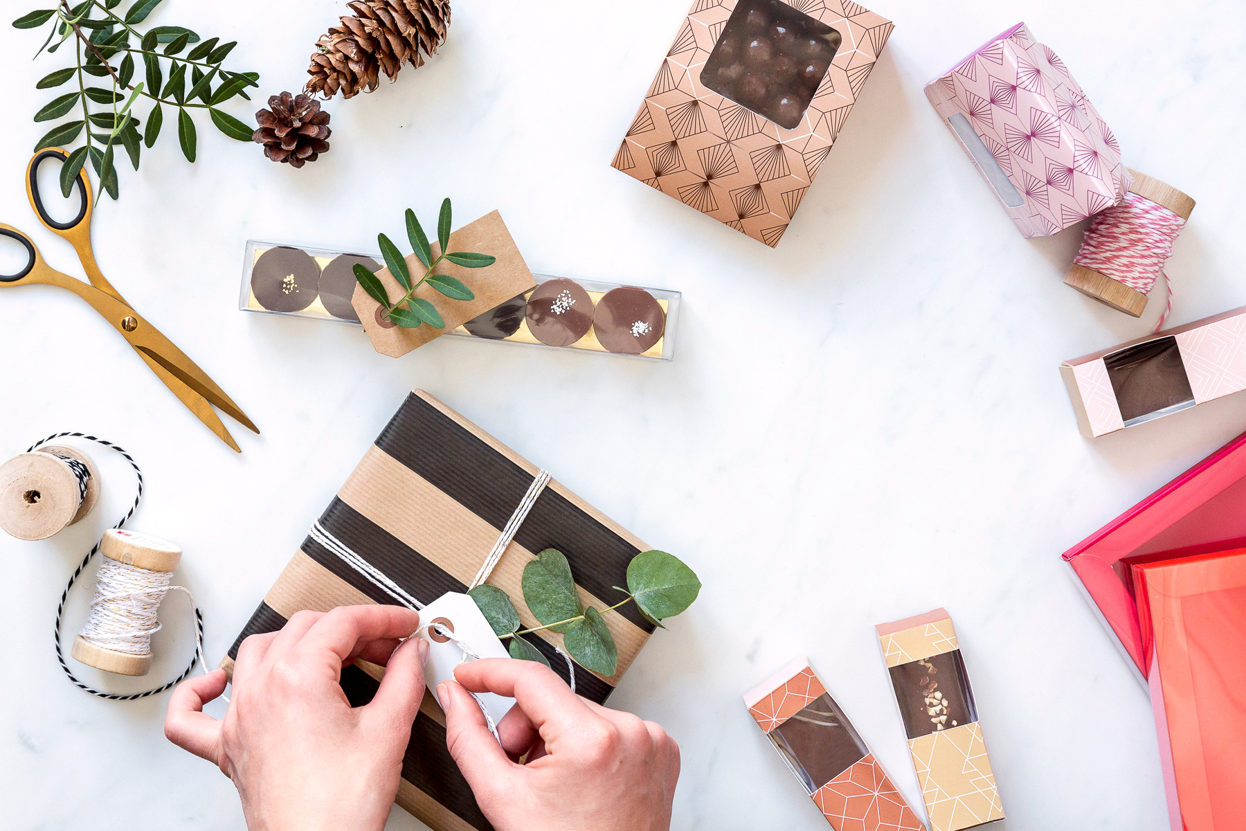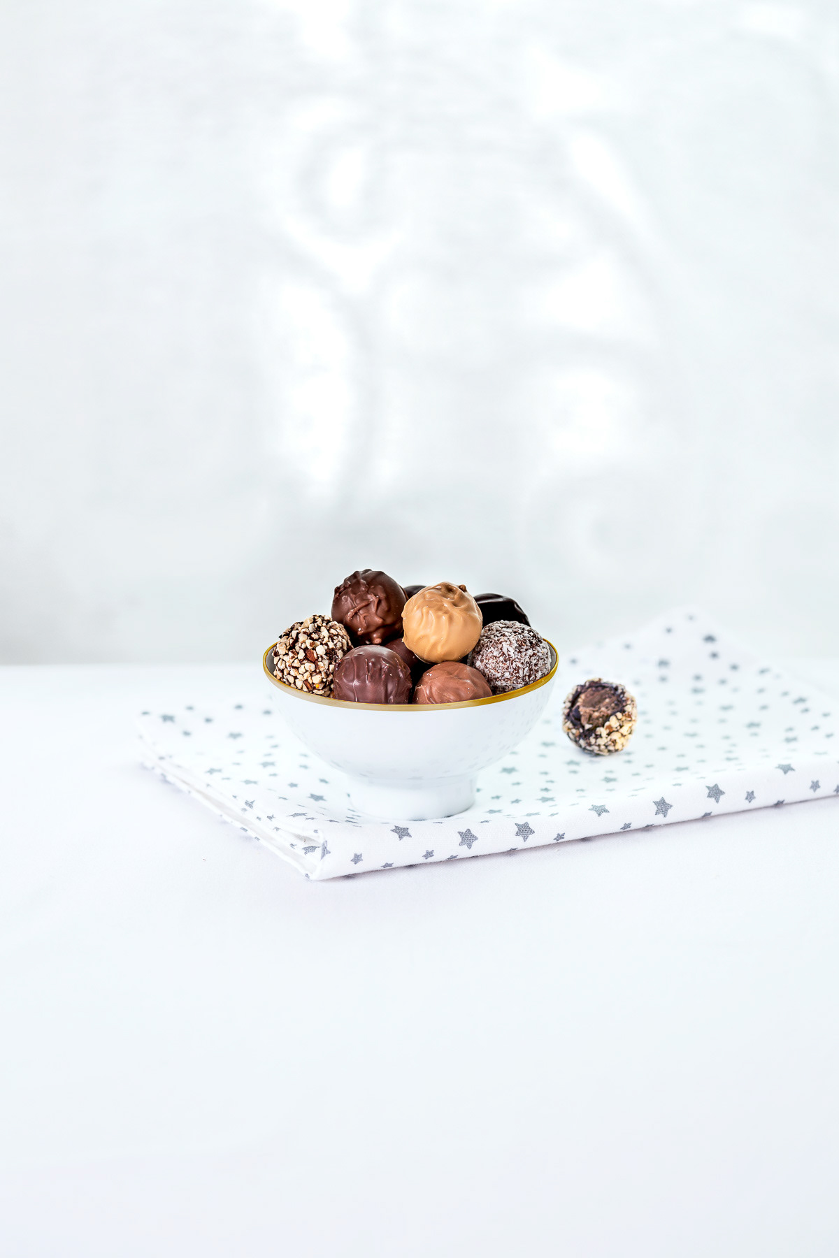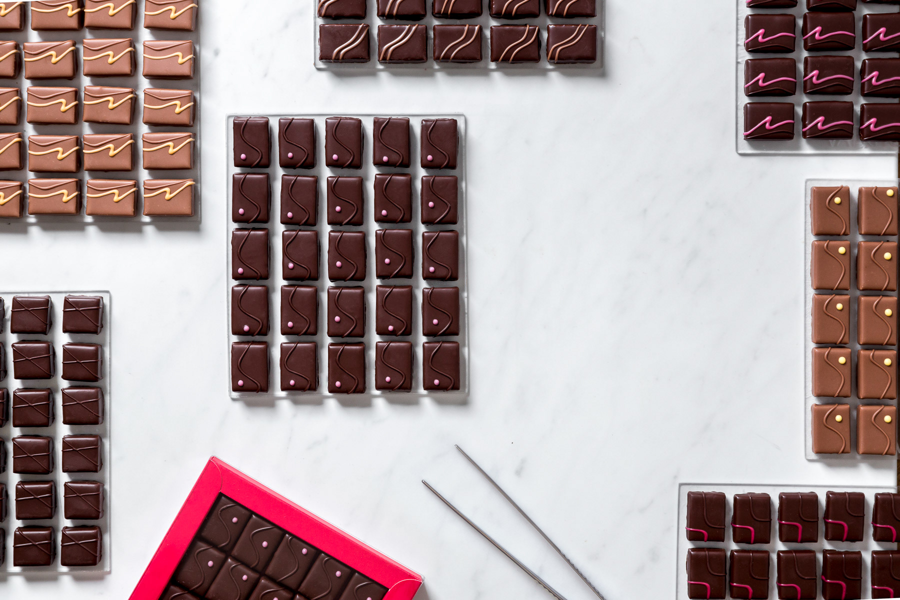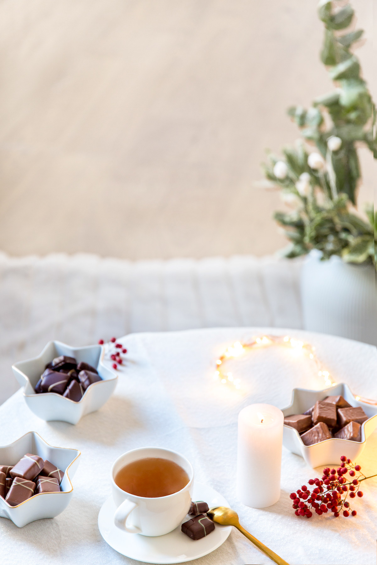 Compositions photographiques de chocolats festifs, en studio et lumière naturelle - Lyon, France