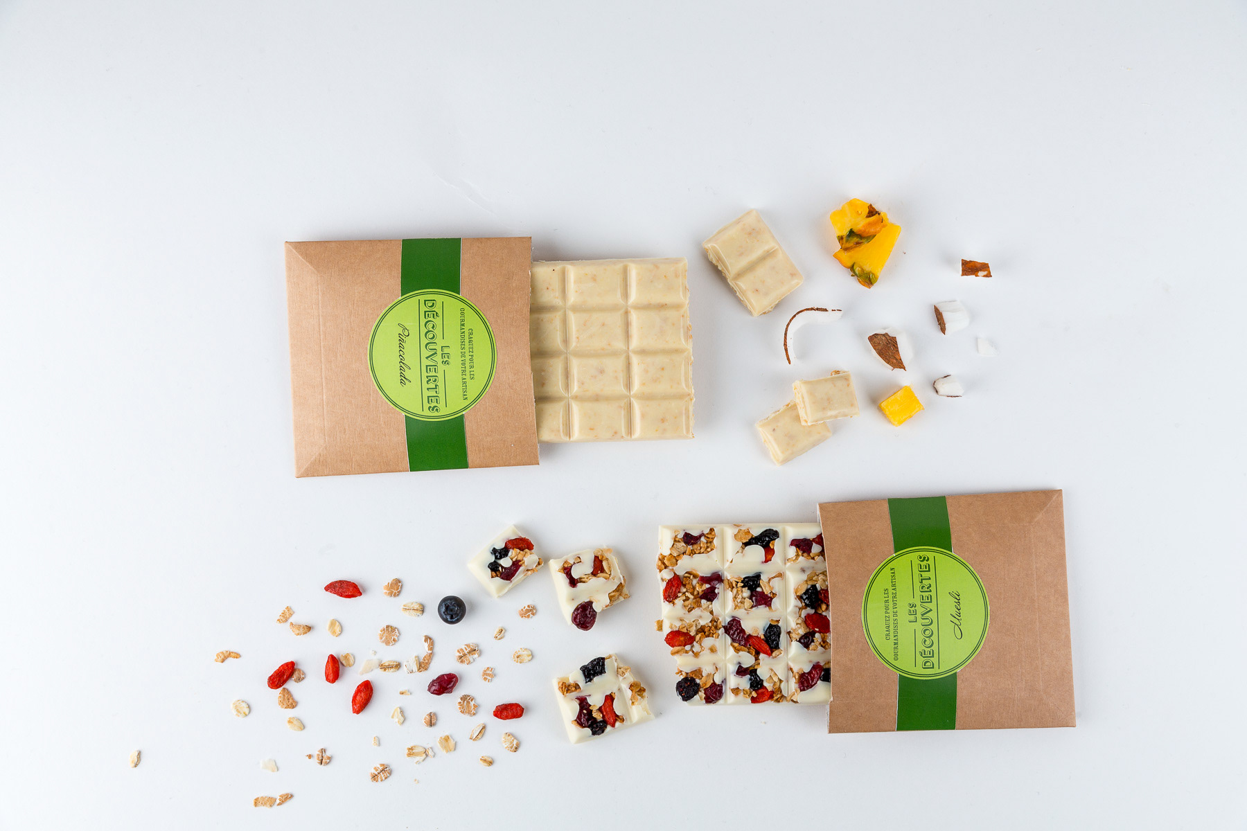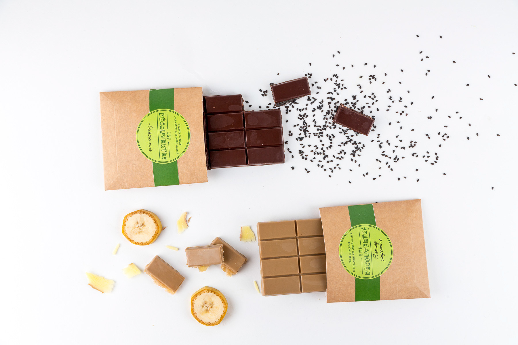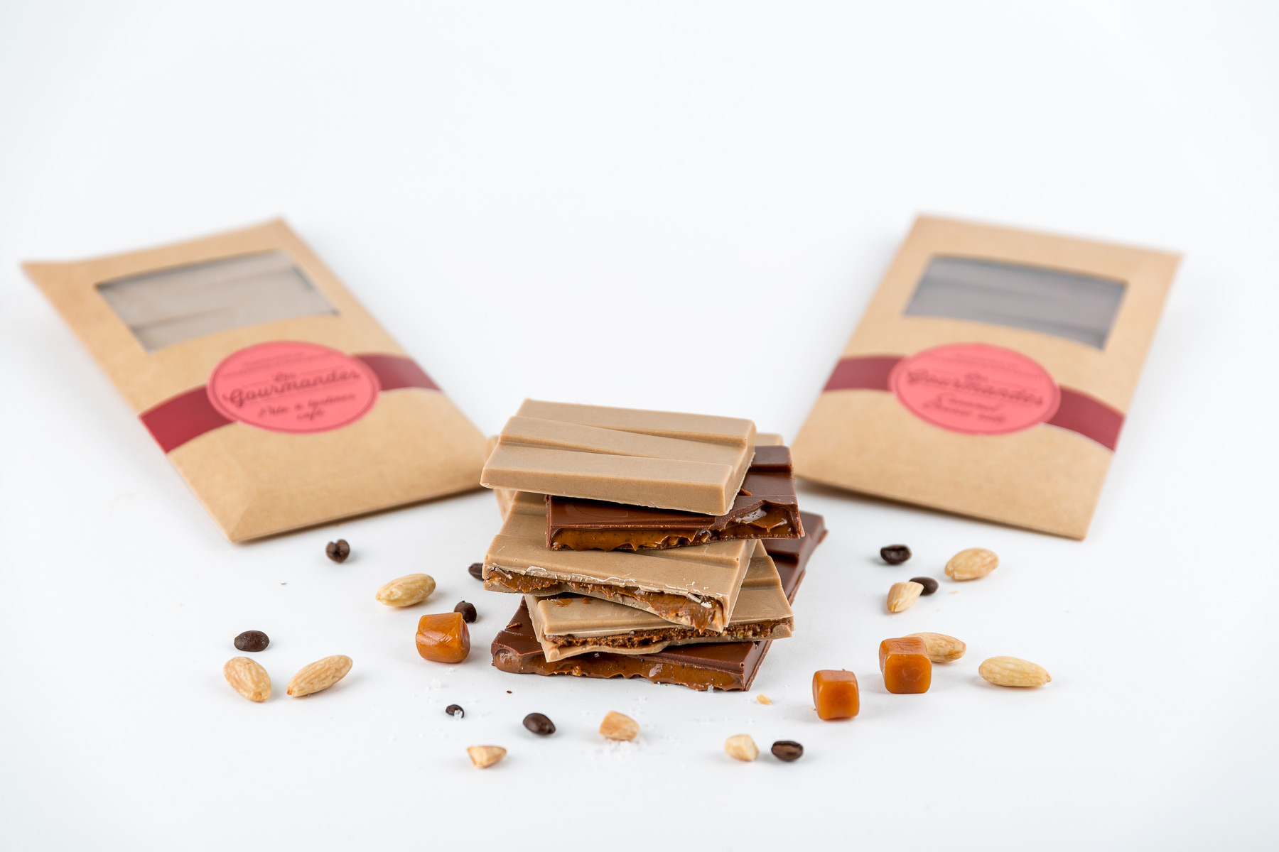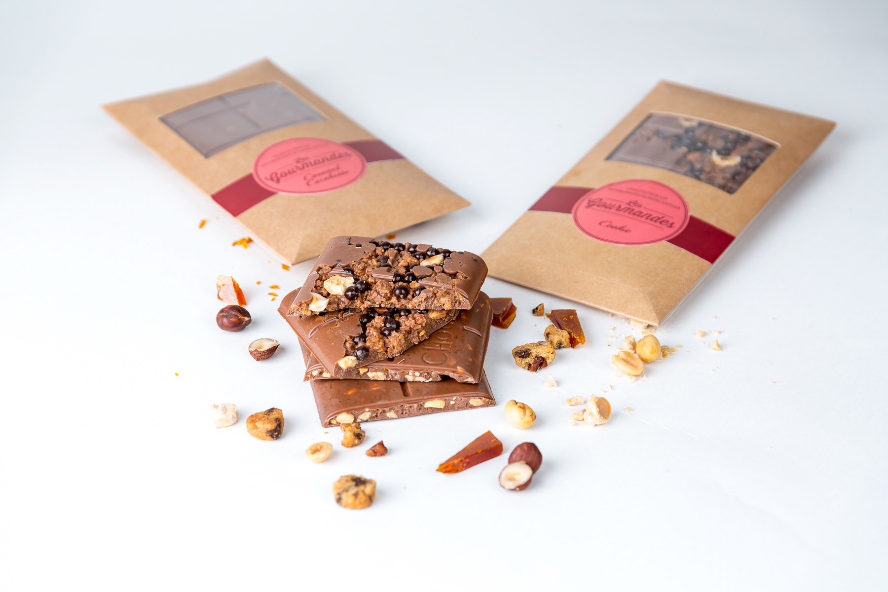 Photos studio de compositions avec des tablettes de chocolat Valrhona - Lyon, France
