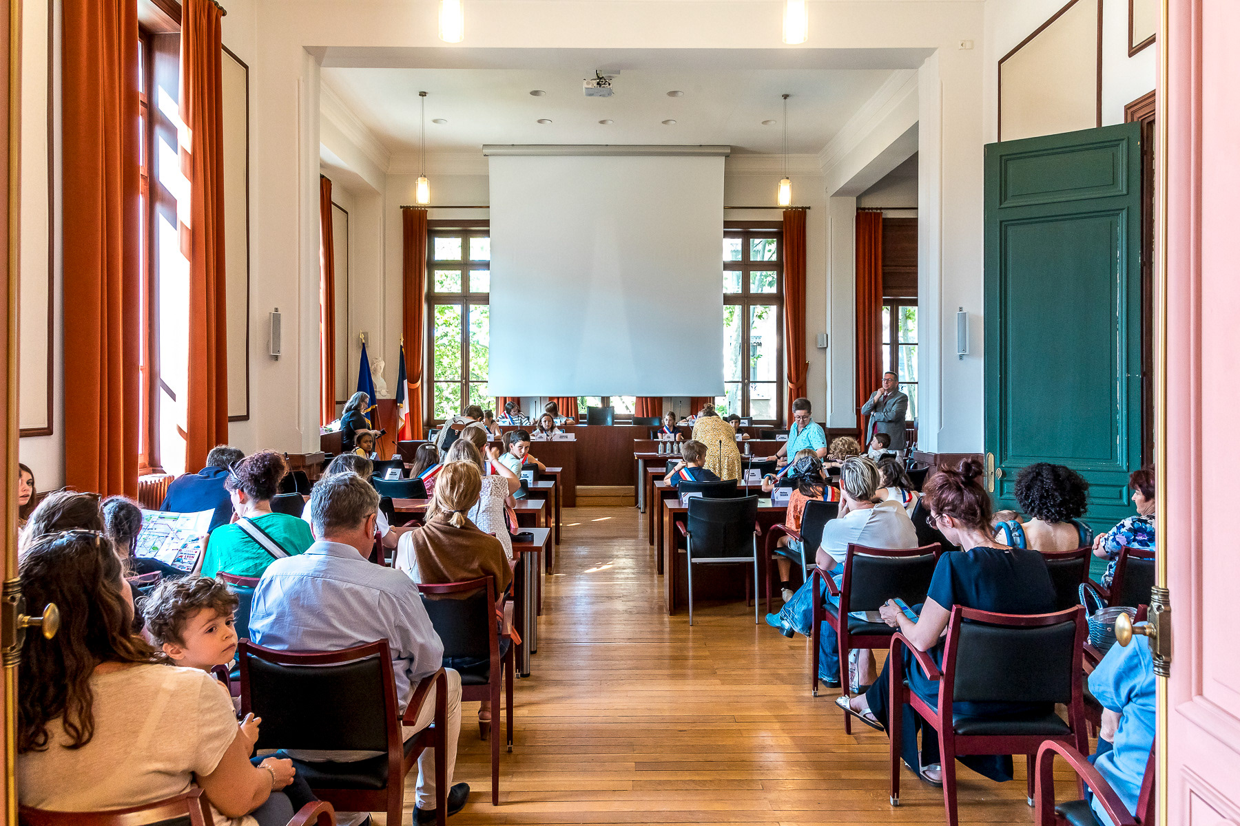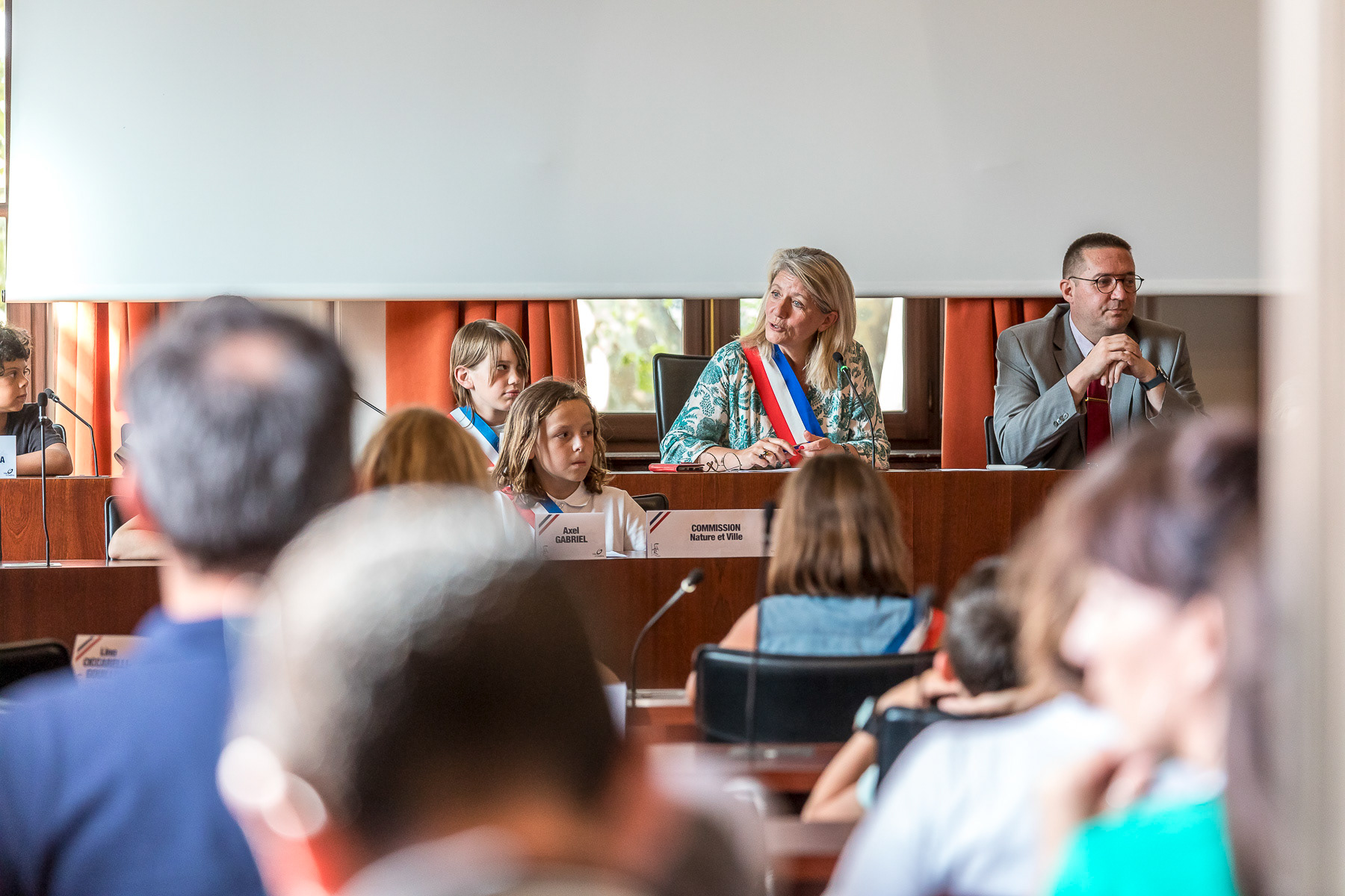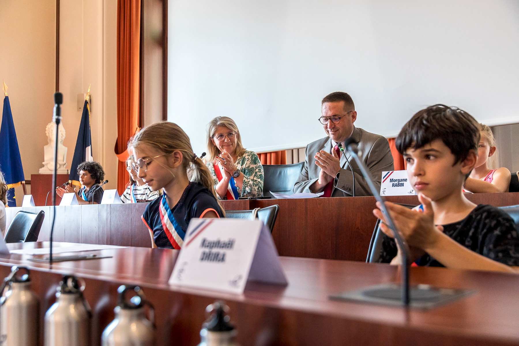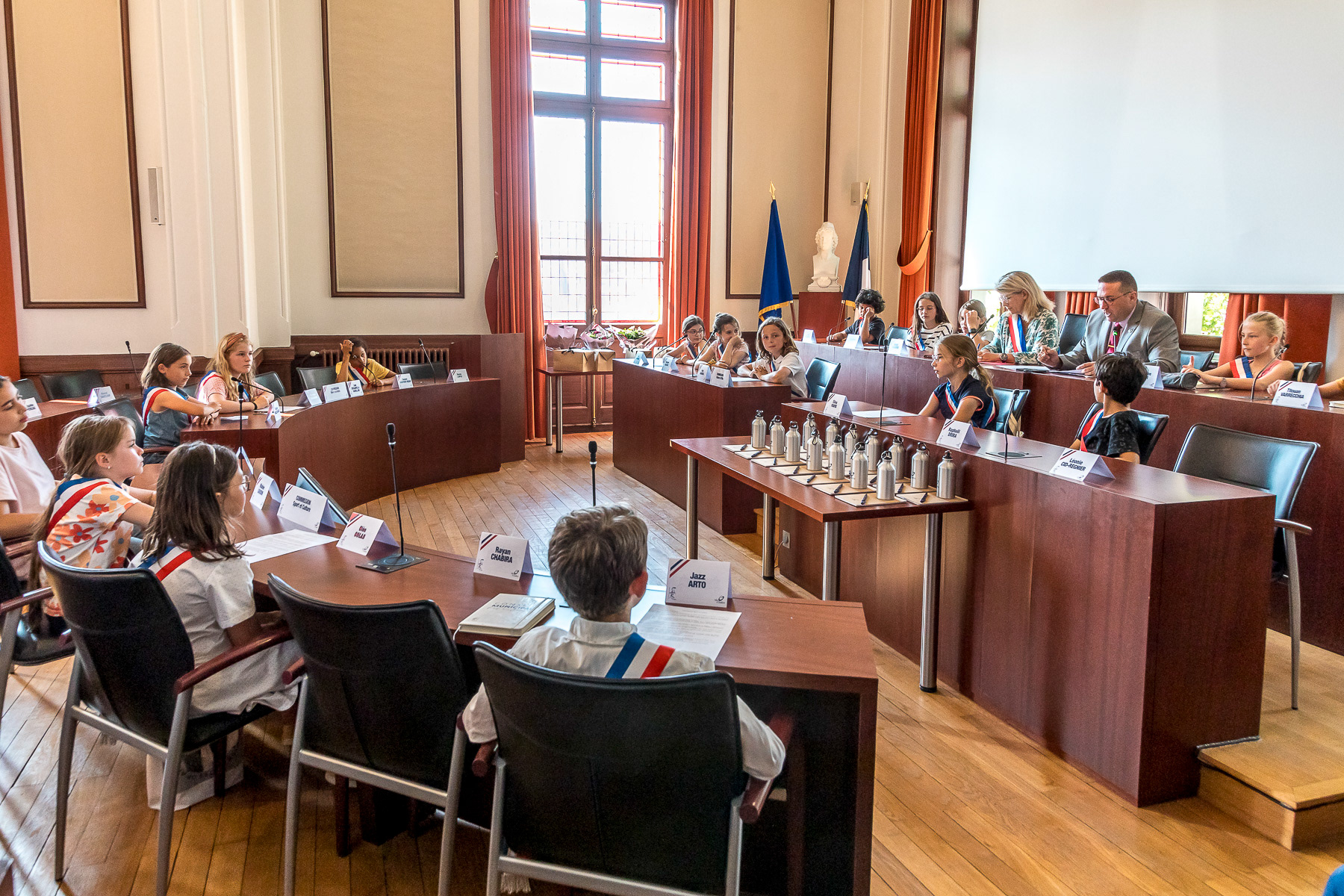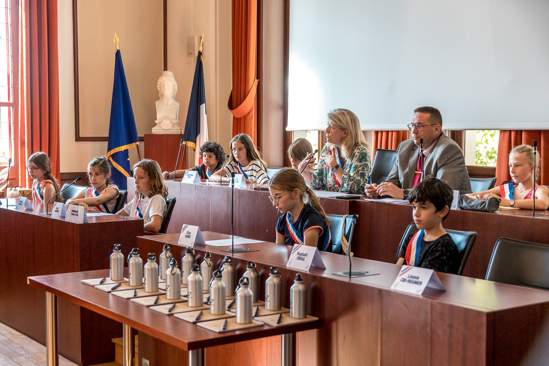 Réalisation d'un reportage sur le Conseil Municipal des Enfants (CME) de la ville d'Oullins à l'occasion du dernier conseil de l'année dans les locaux de la Mairie - Oullins, Grand Lyon, France