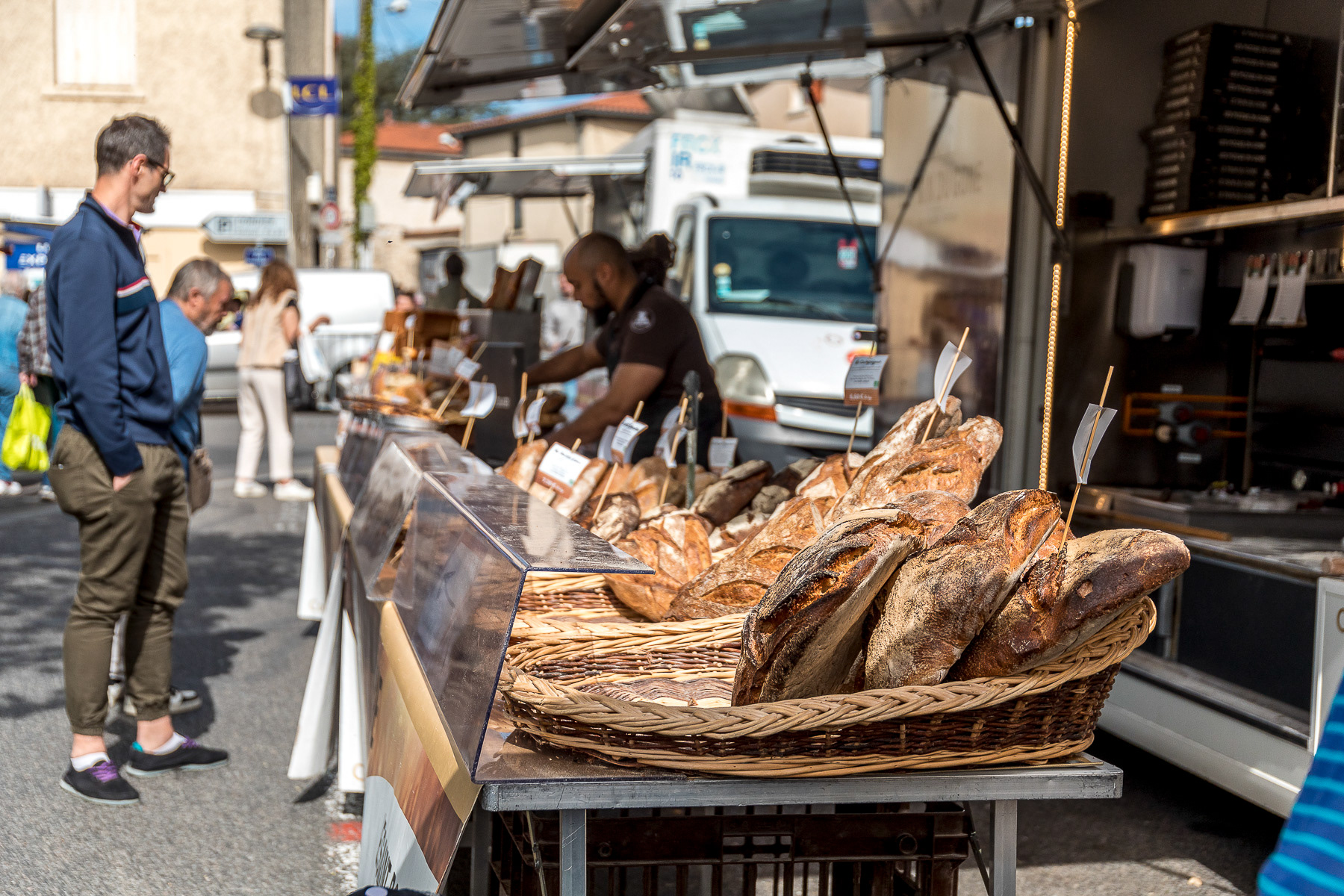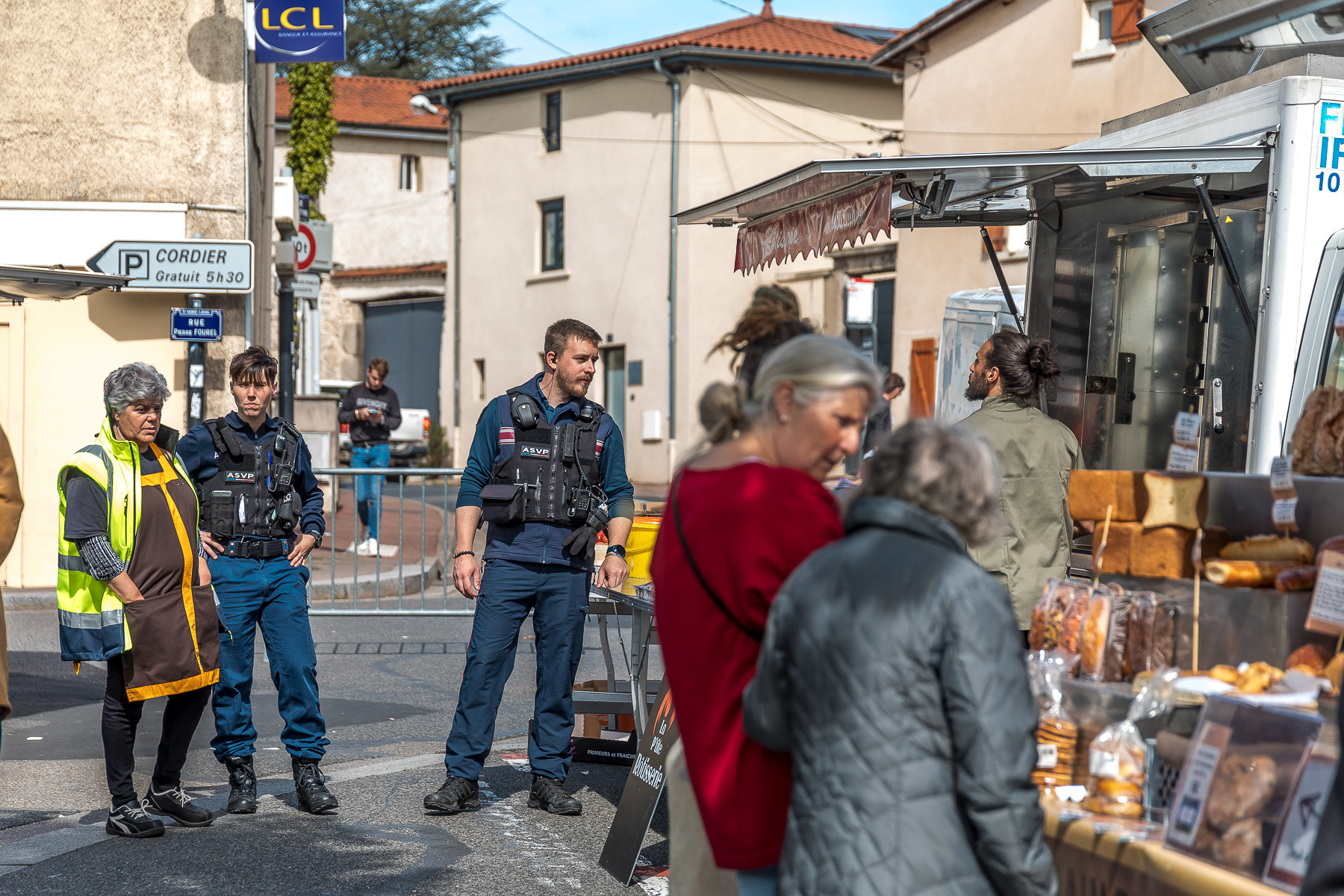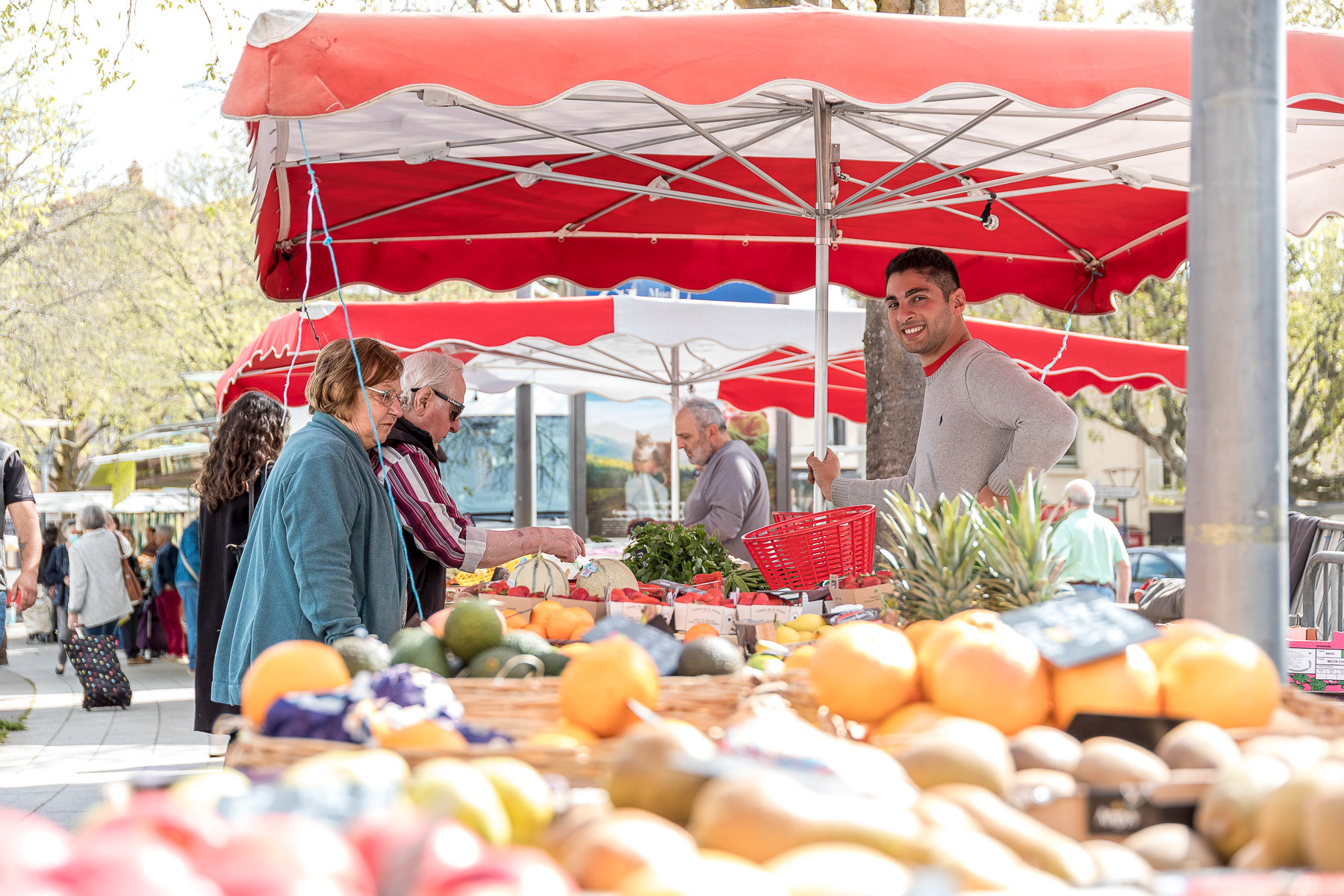 Reportage photo d'illustration sur l'ambiance du marché des forains de la place Jaboulay - Saint-Genis Laval, Grand Lyon, France