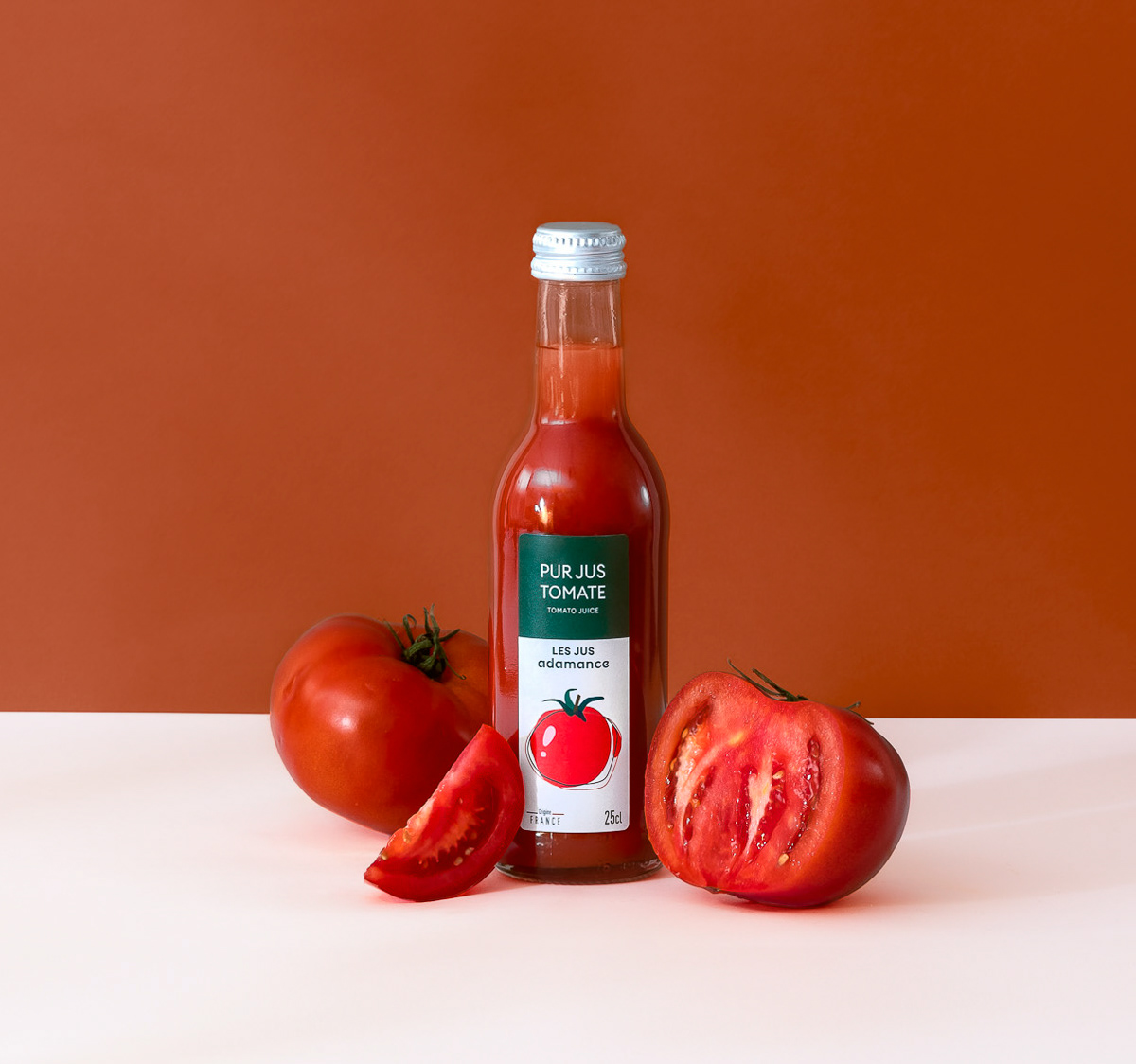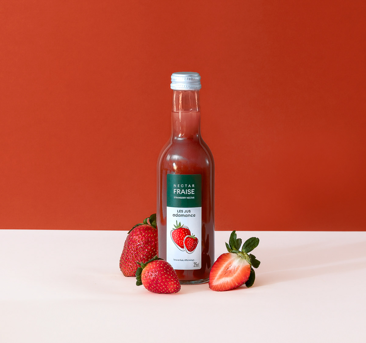 Shooting studio packshot d'une gamme de jus de fruit