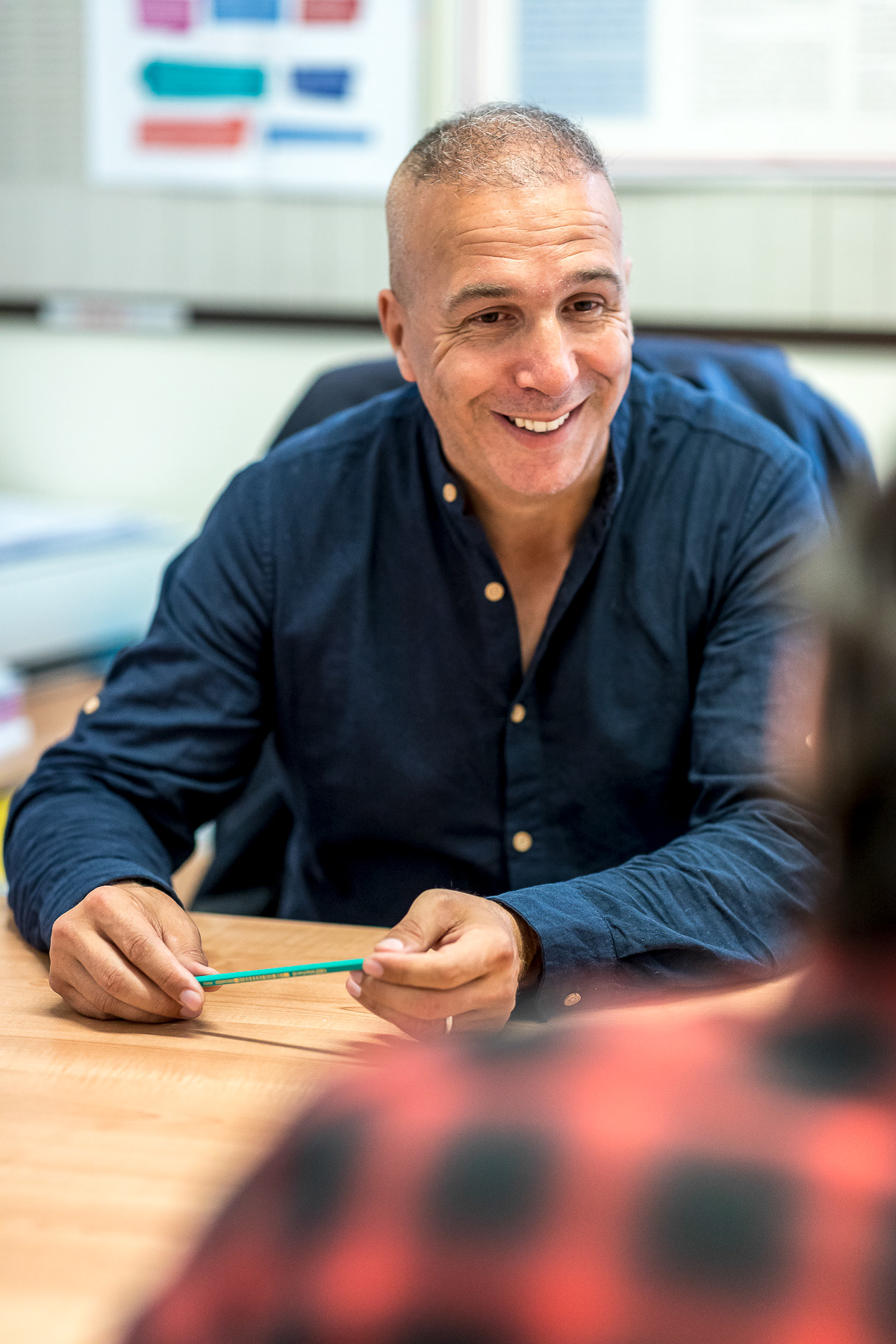 Réalisation de portraits pris sur le vif lors d'un reportage journalistique sur différents intervenants d'une école primaire interviewés (directeur, enseignant, éducateurs, parent d'élève, enfant) - Saint-Genis Laval, Grand Lyon, France