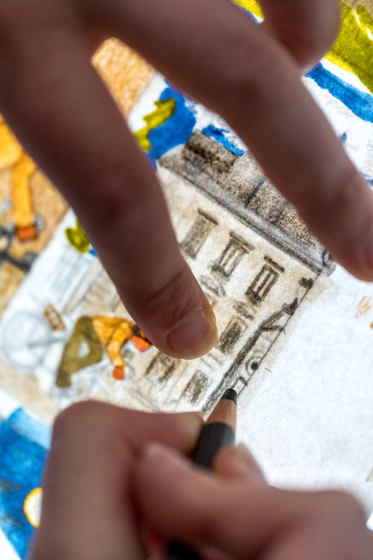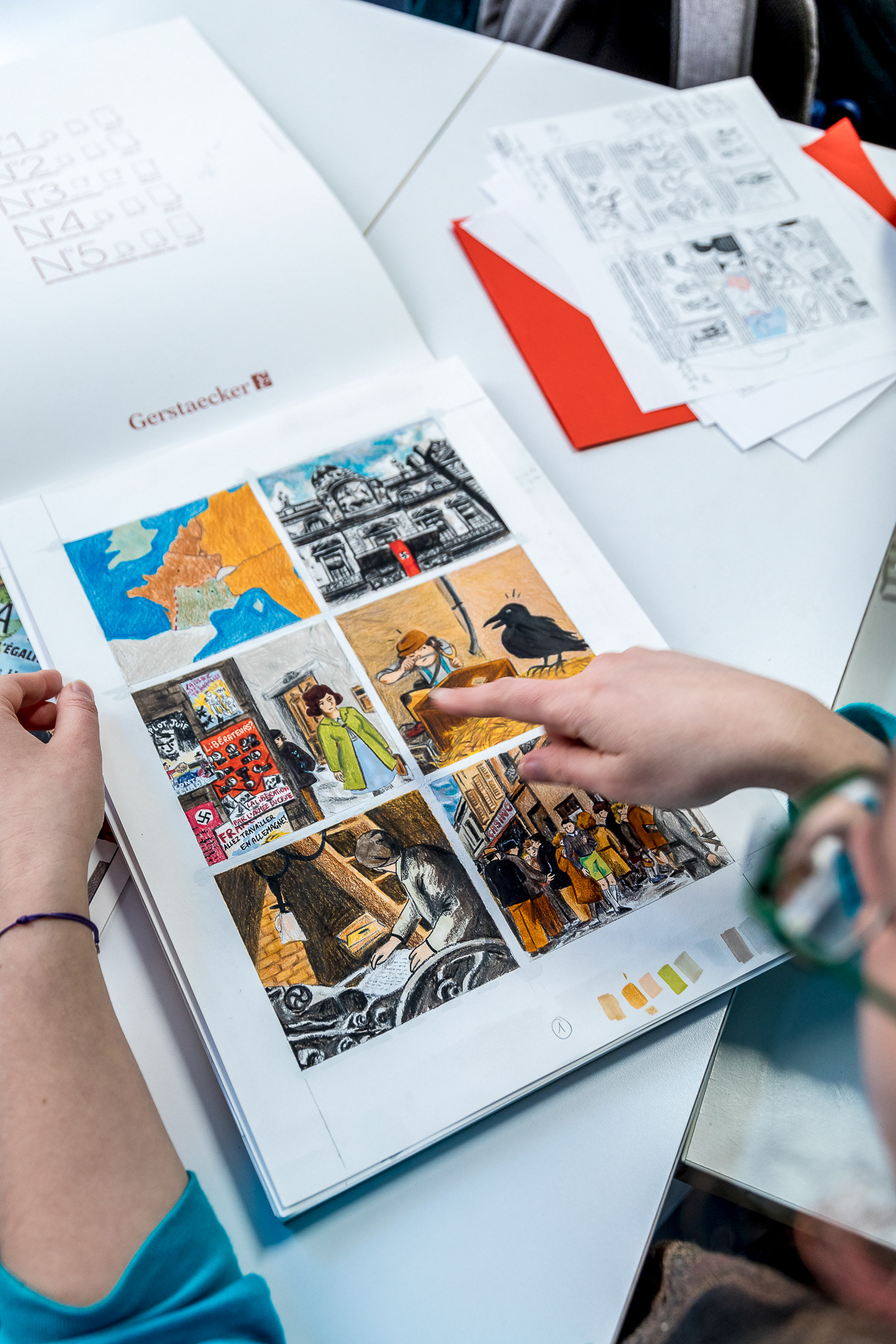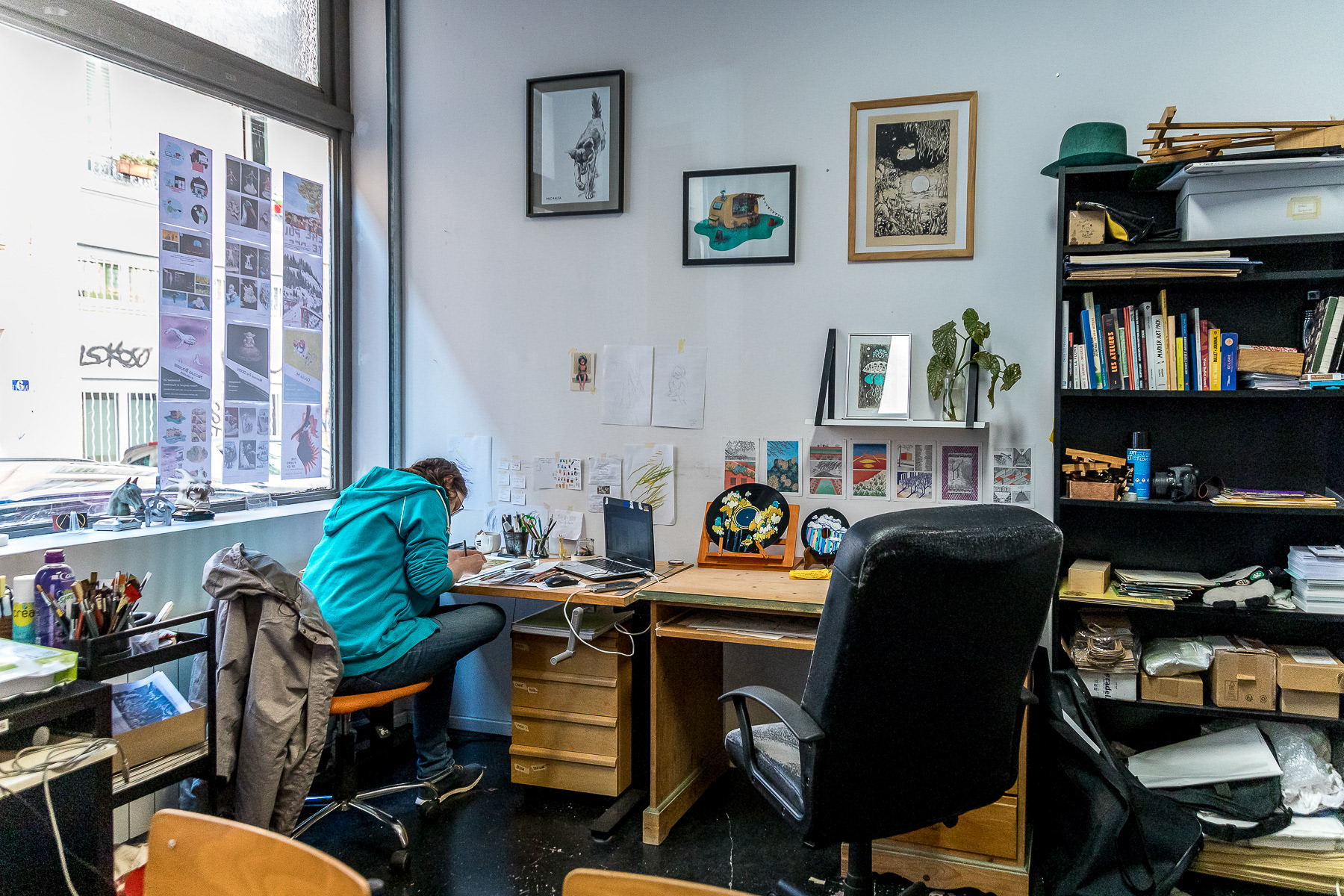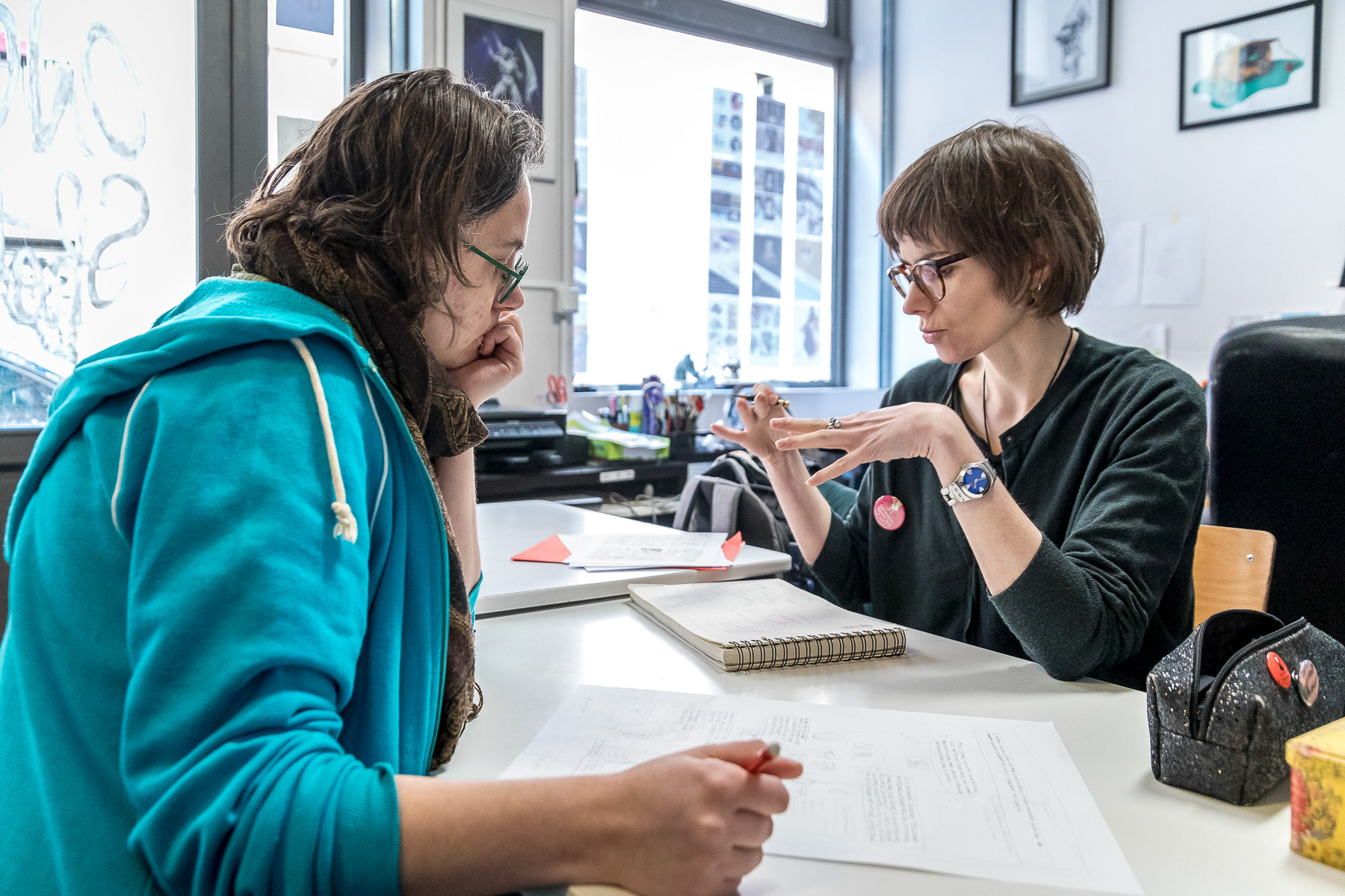 Reportage photo sur une illustratrice et une autrice durant des étapes de finalisation d'une bande destinée historique sur le massacre du Fort de Côte Lorette - Lyon, France