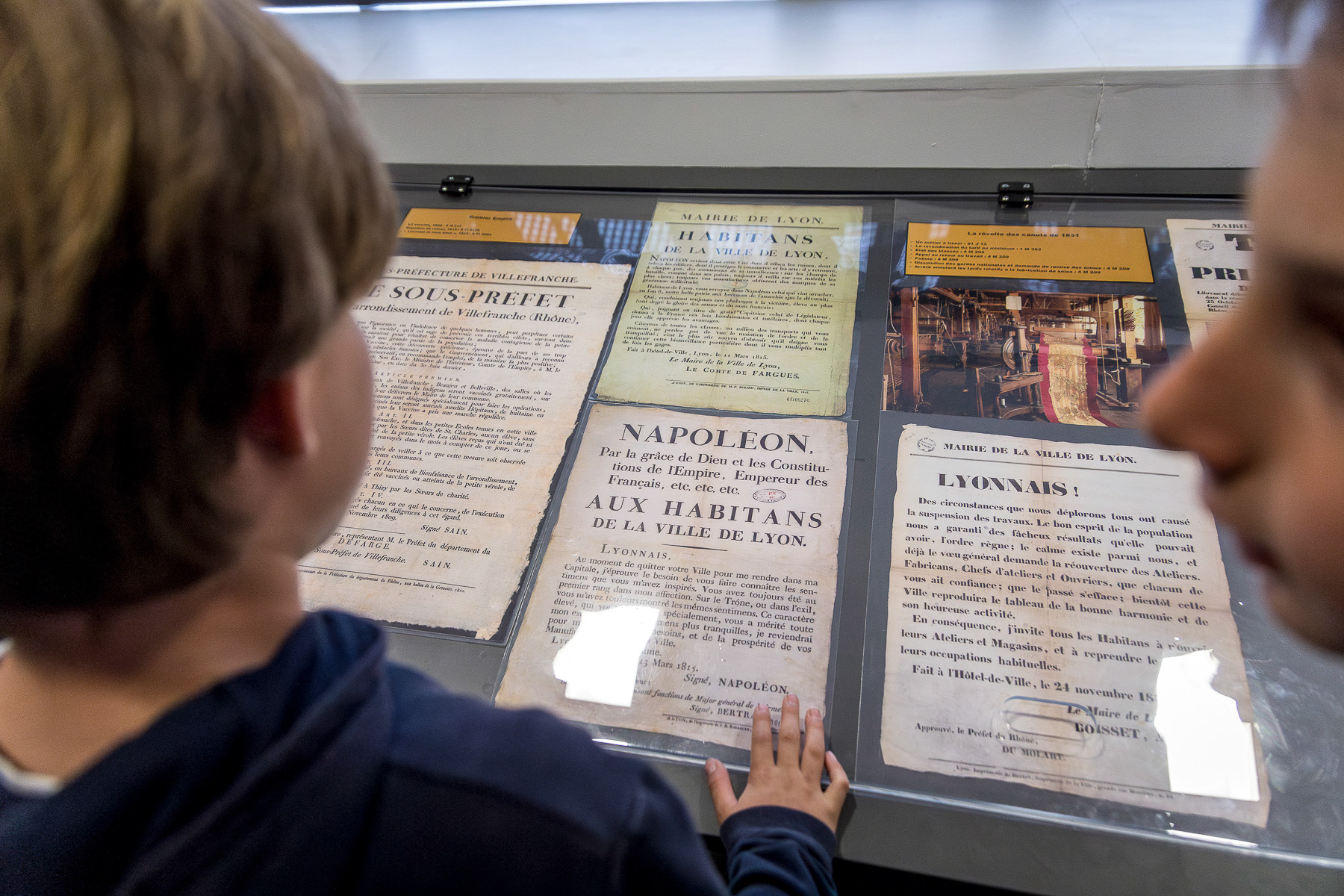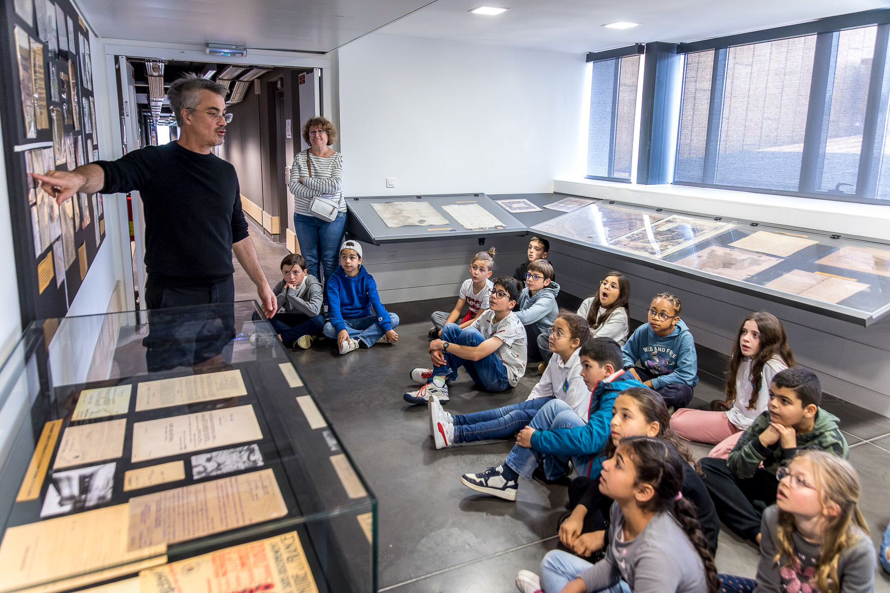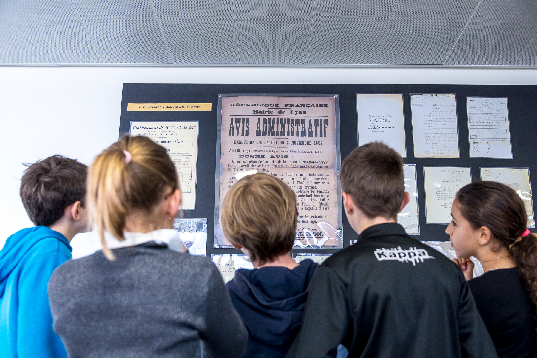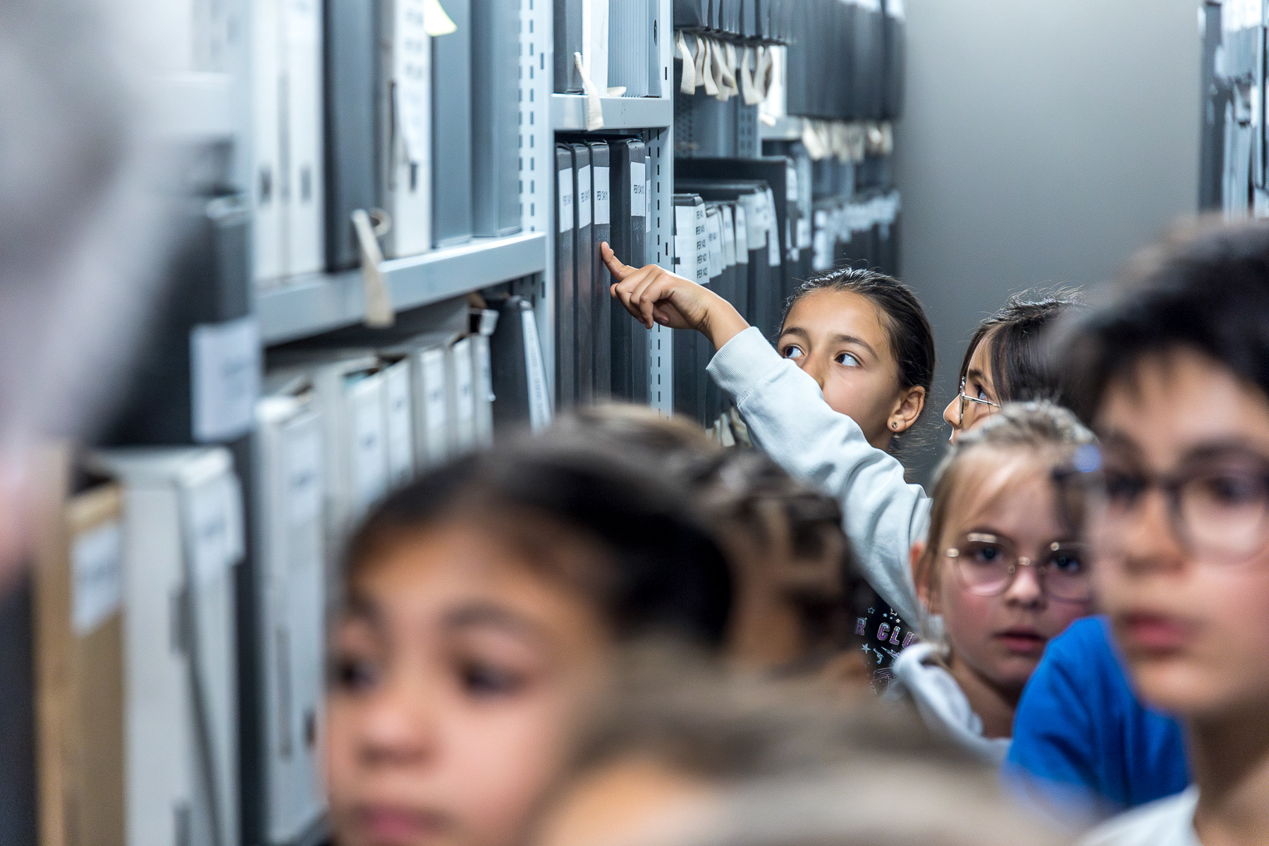 Reportage photo sur la visite des enfants du Conseil Municipal des Enfants aux archives départementales du Rhône à la Part-Dieu, dans le cadre d'un anniversaire lié à la Résistance - Lyon, France