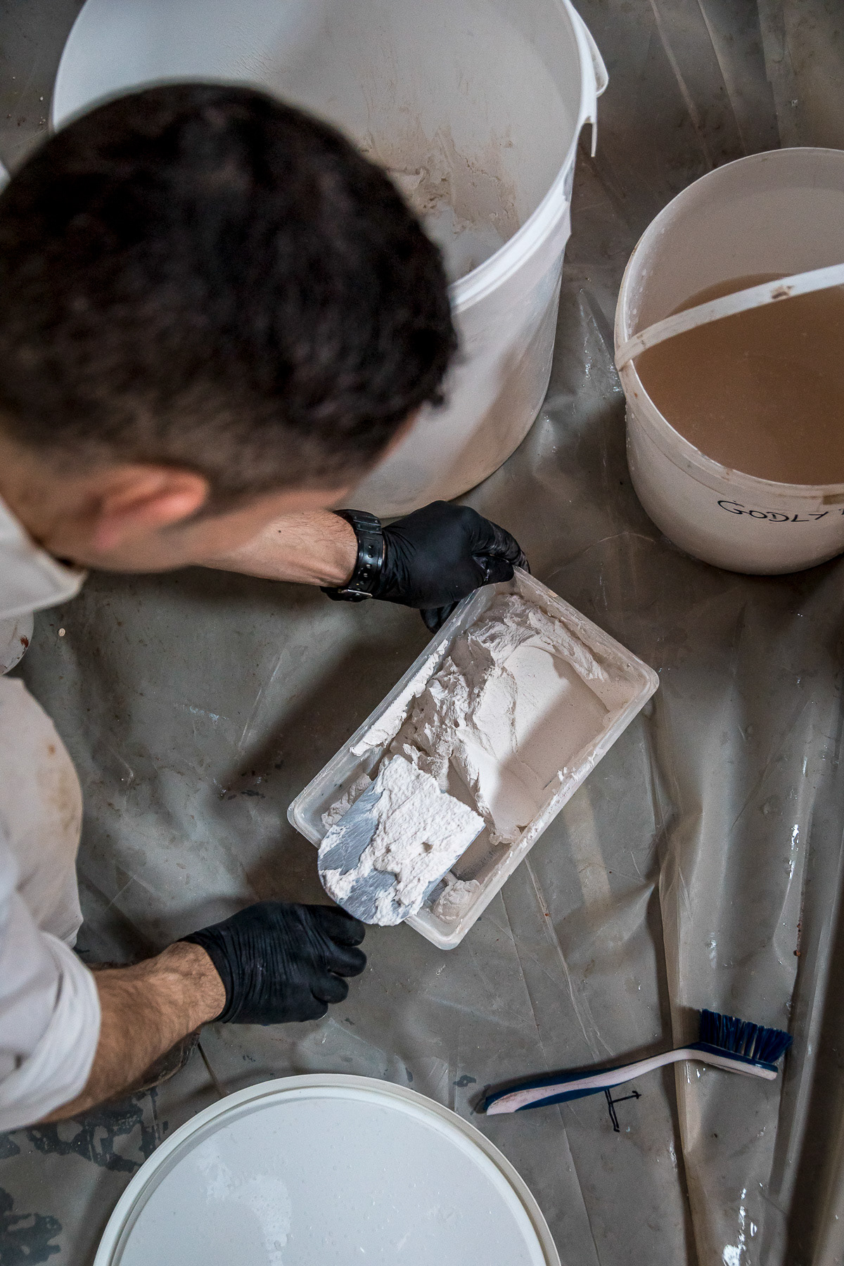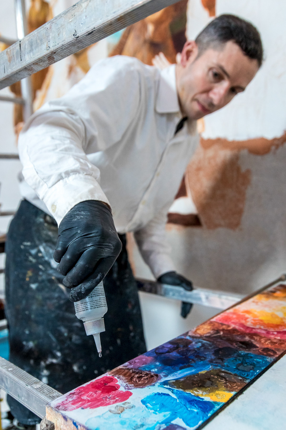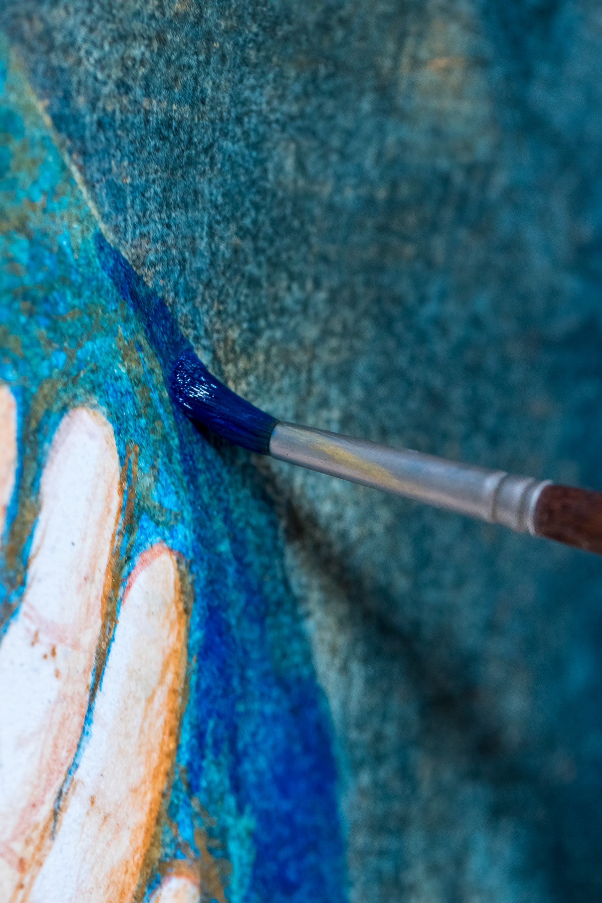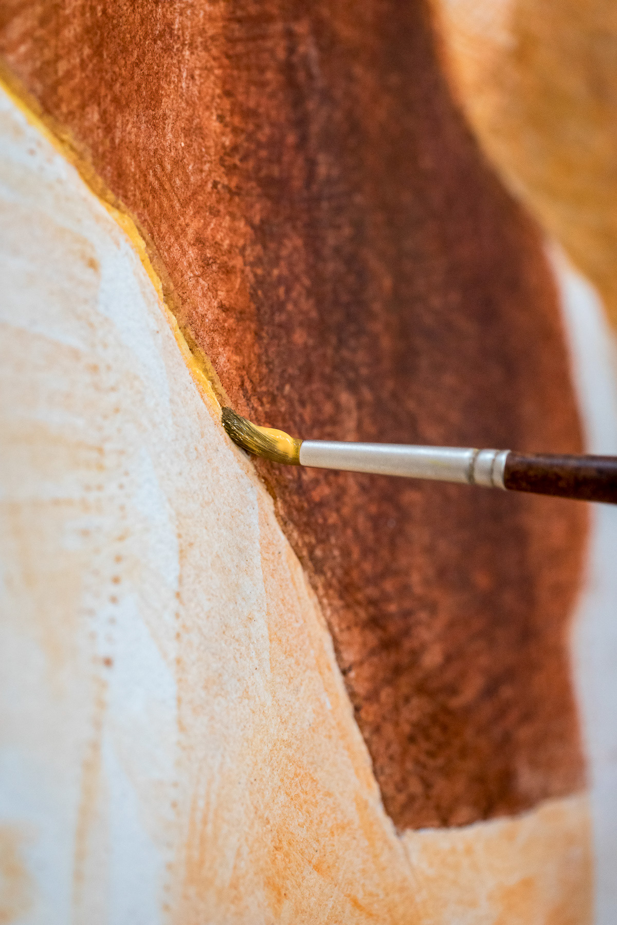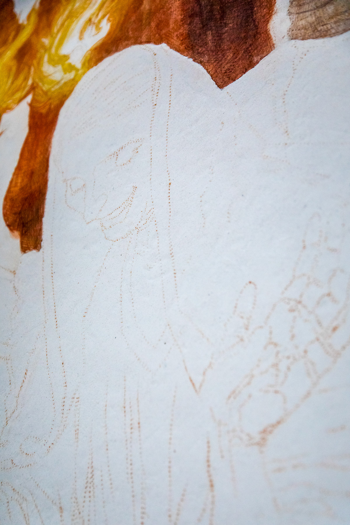 Reportage photo réalisé sur plusieurs jours pour suivre quelques étapes de la réalisation d'une fresque monumentale à la chaux,dans une église lyonnaise, par un artiste maitrisant cette technique rare et spécifique - Lyon, France