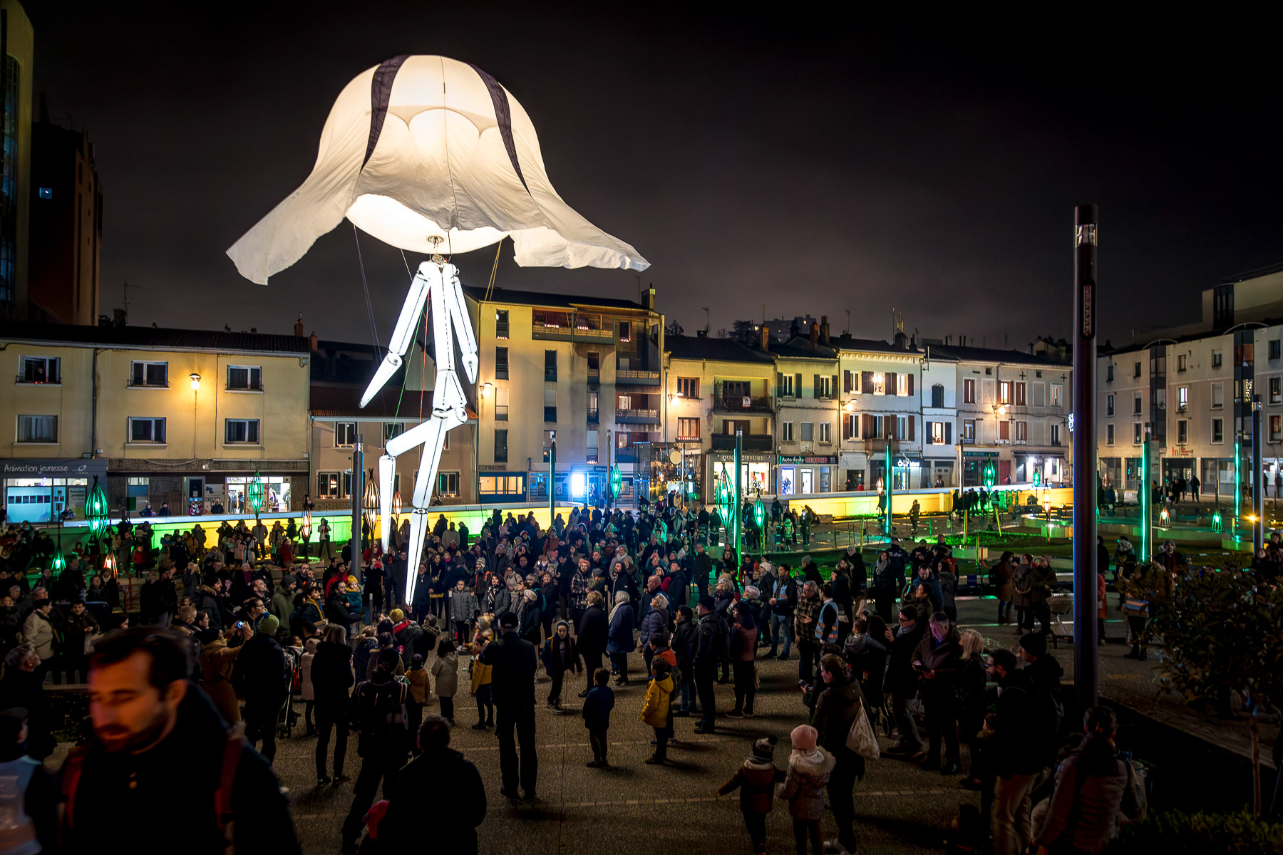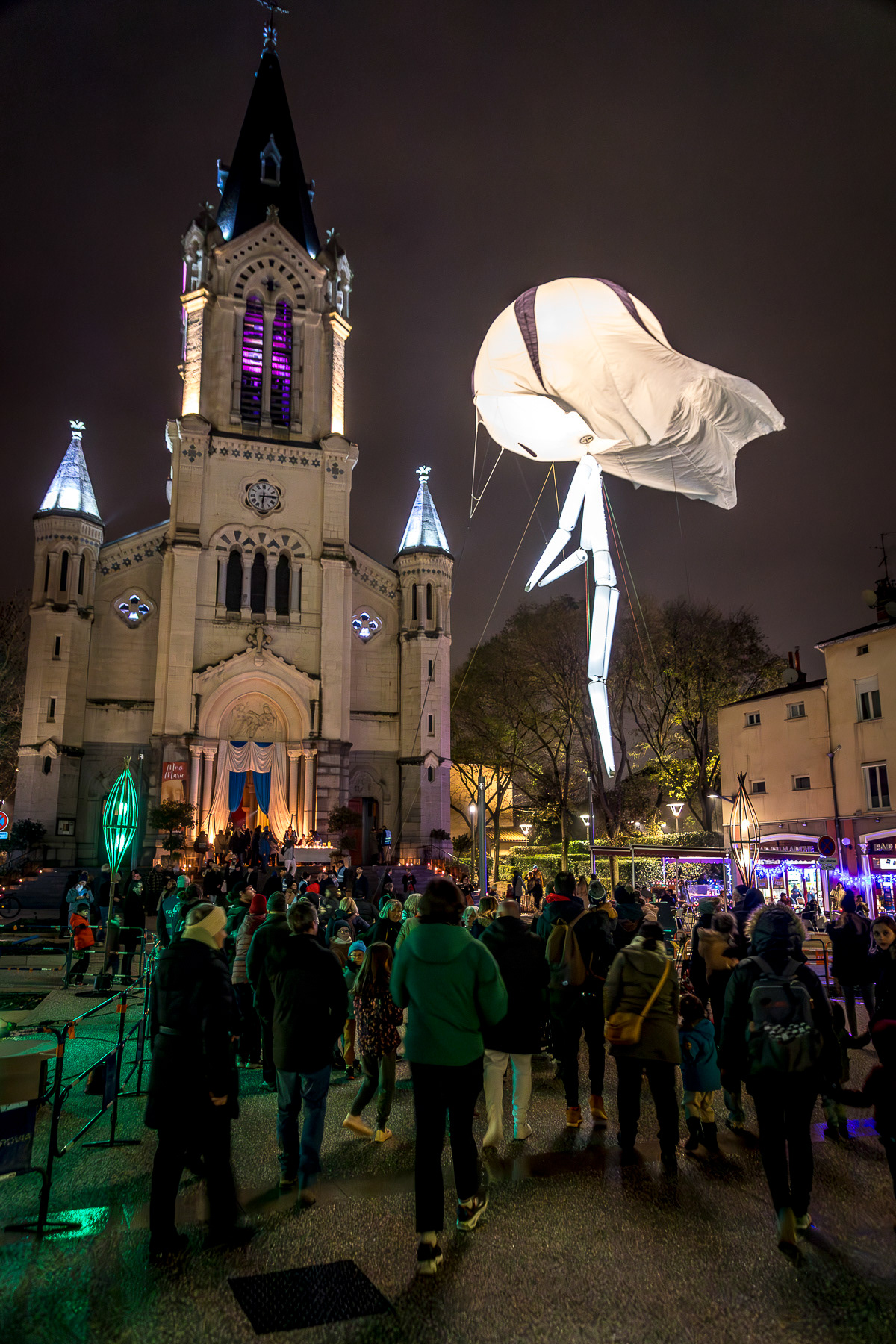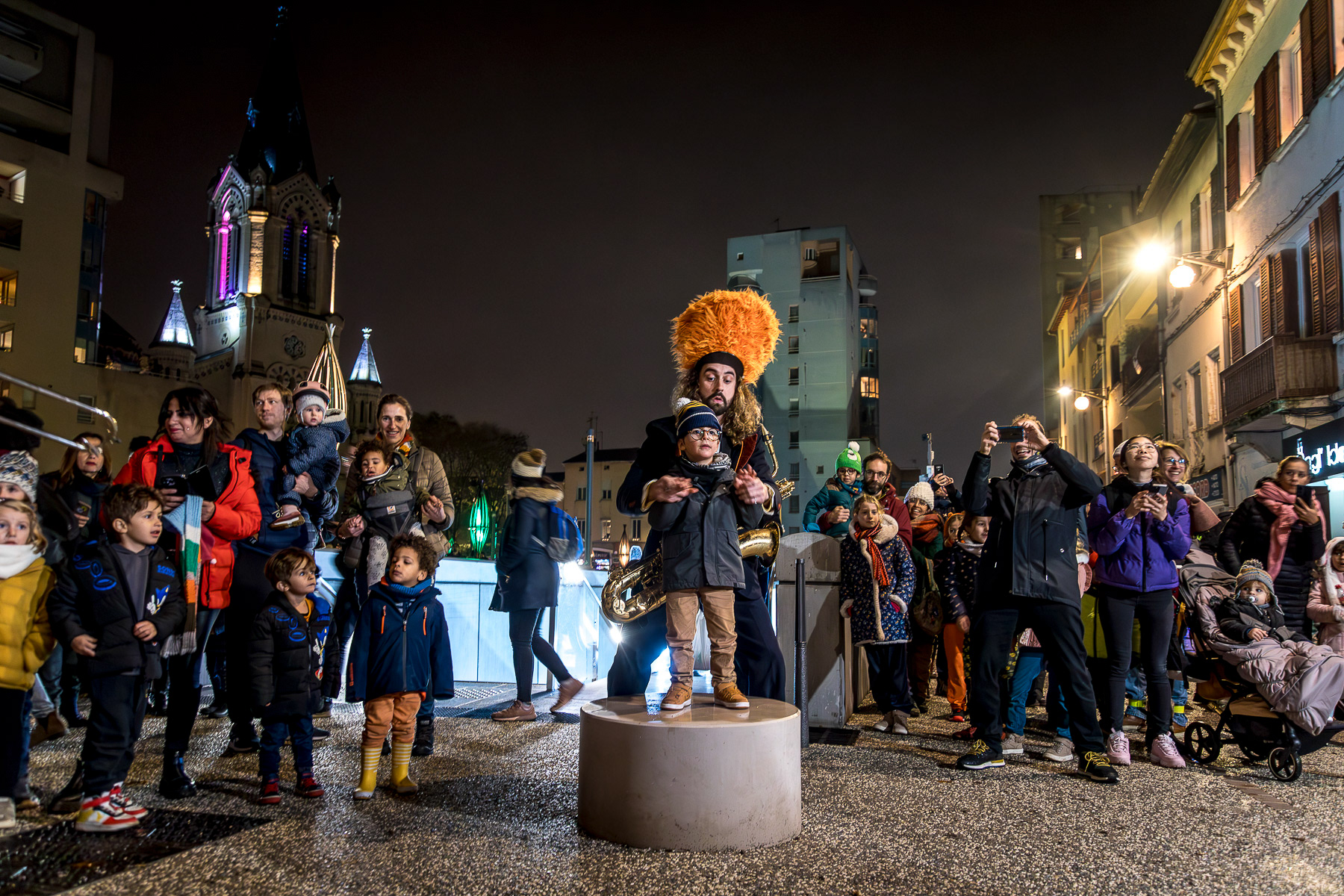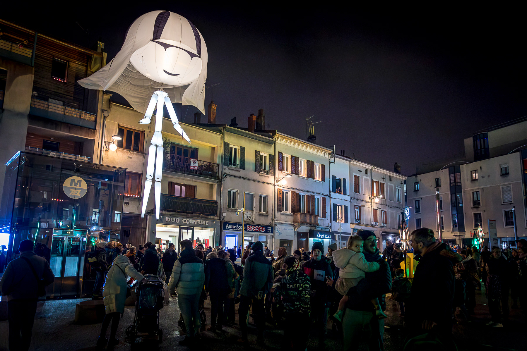 Reportage sur les festivités du 8 décembre dans le centre ville d'Oullins axé sur du spectacle vivant immersif - Oullins, Grand Lyon, France