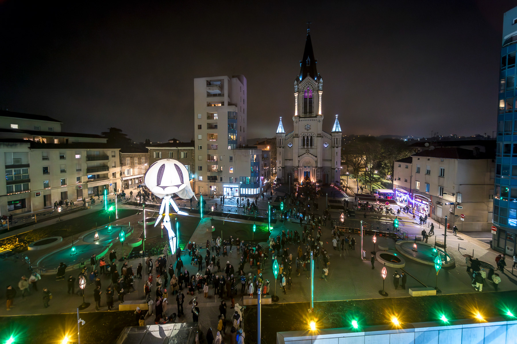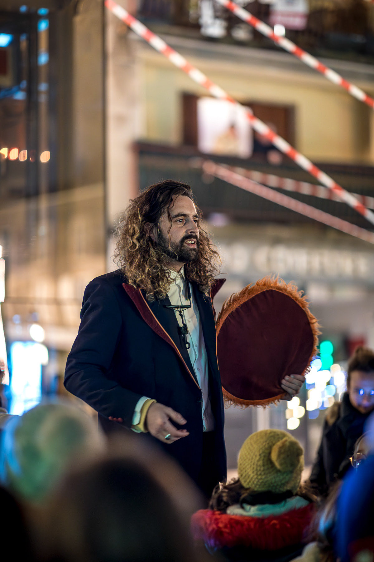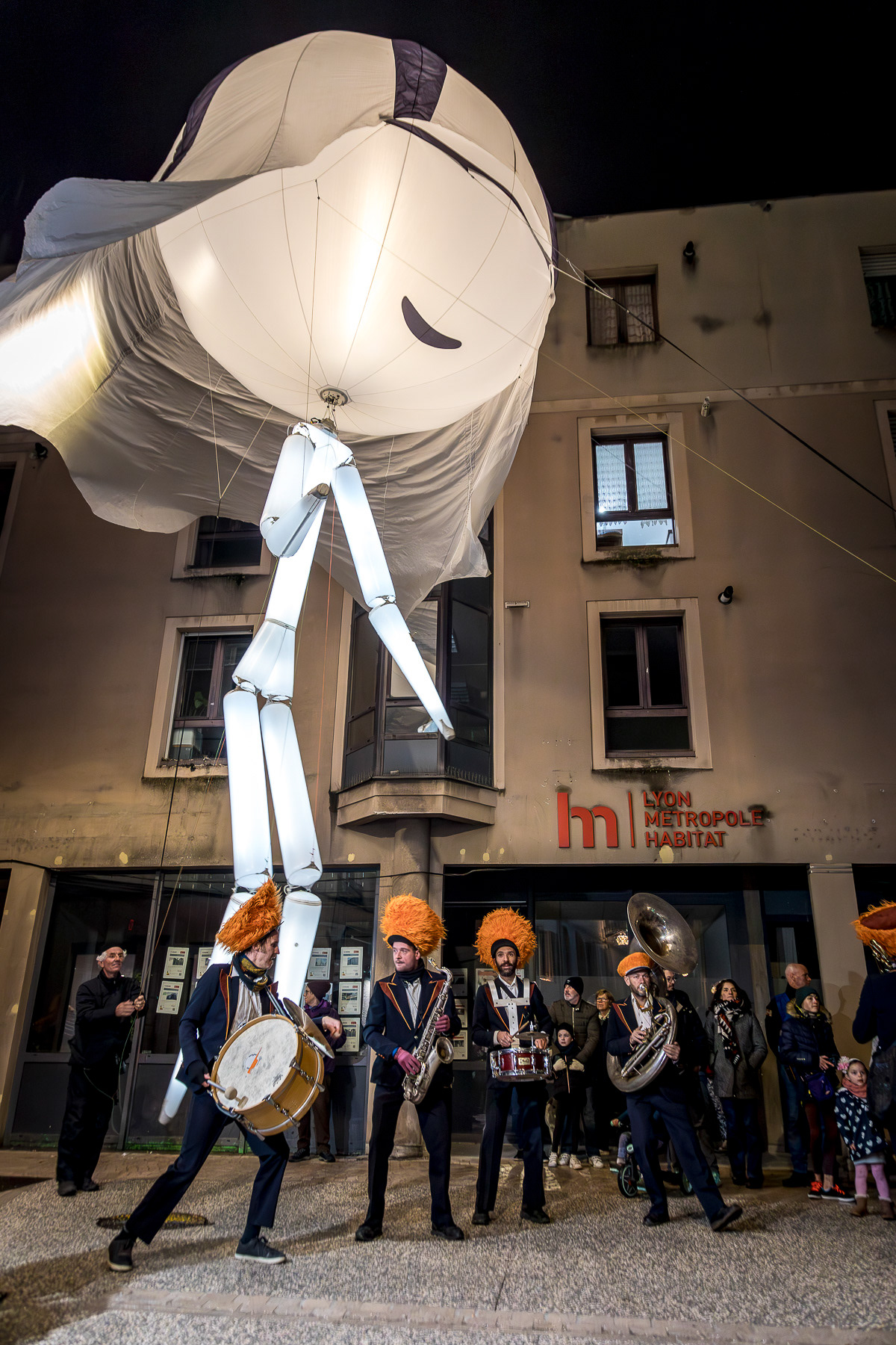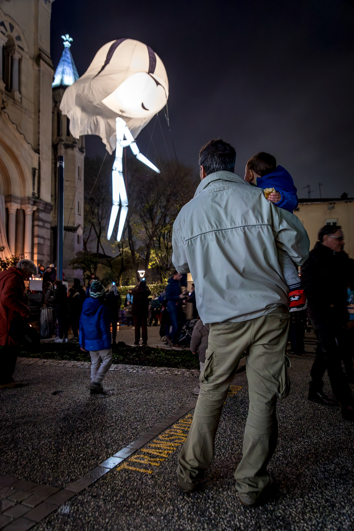 Reportage sur les festivités du 8 décembre dans le centre ville d'Oullins axé sur du spectacle vivant immersif - Oullins, Grand Lyon, France