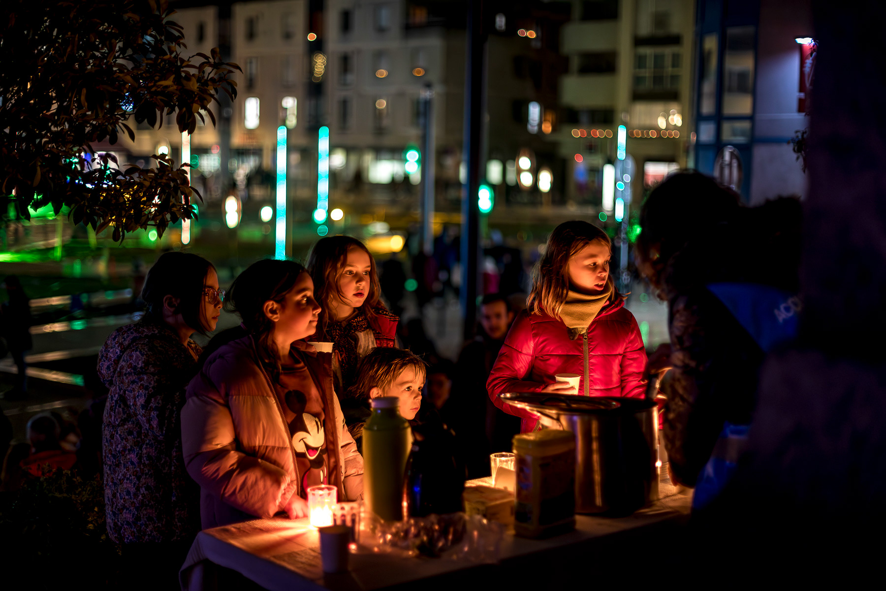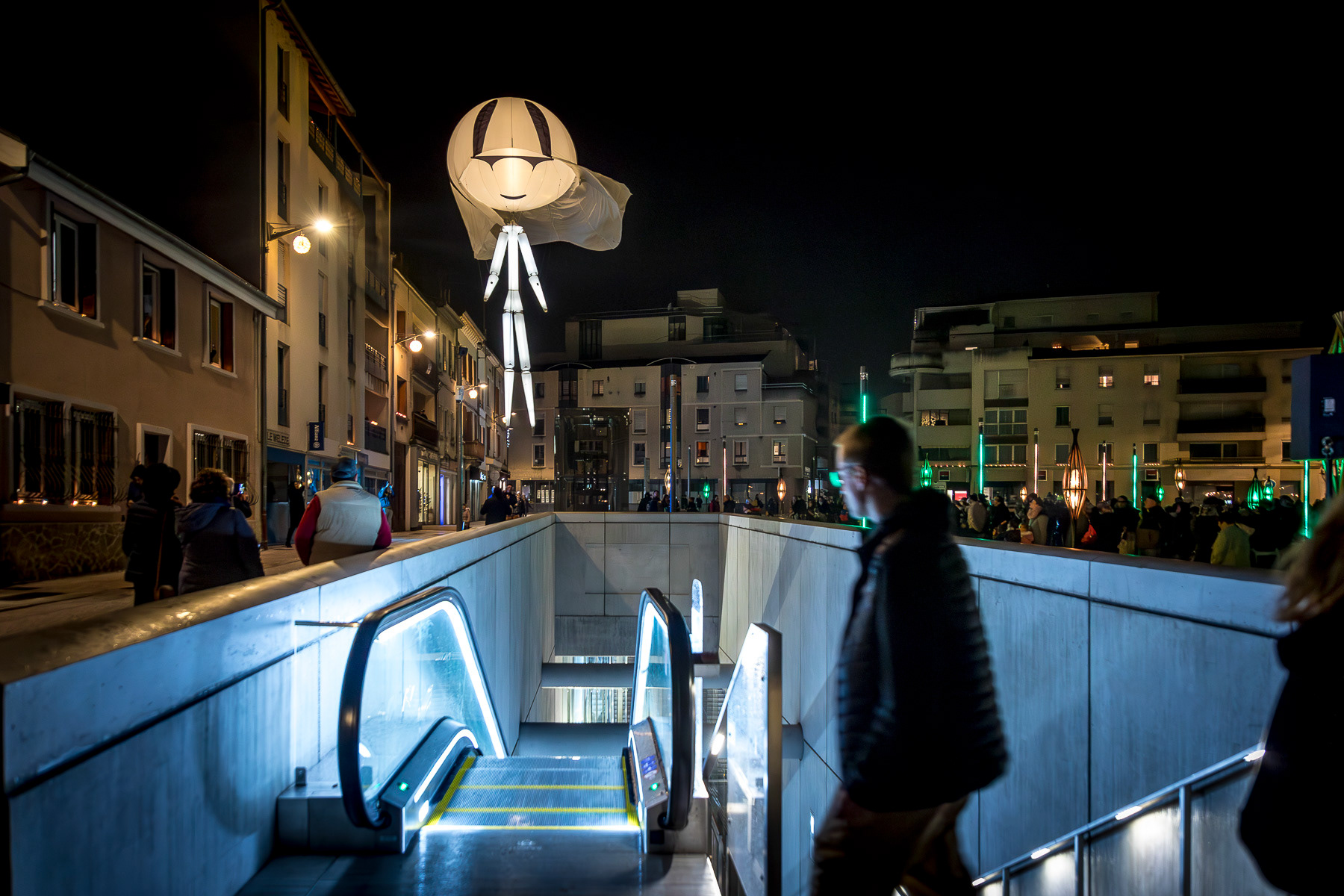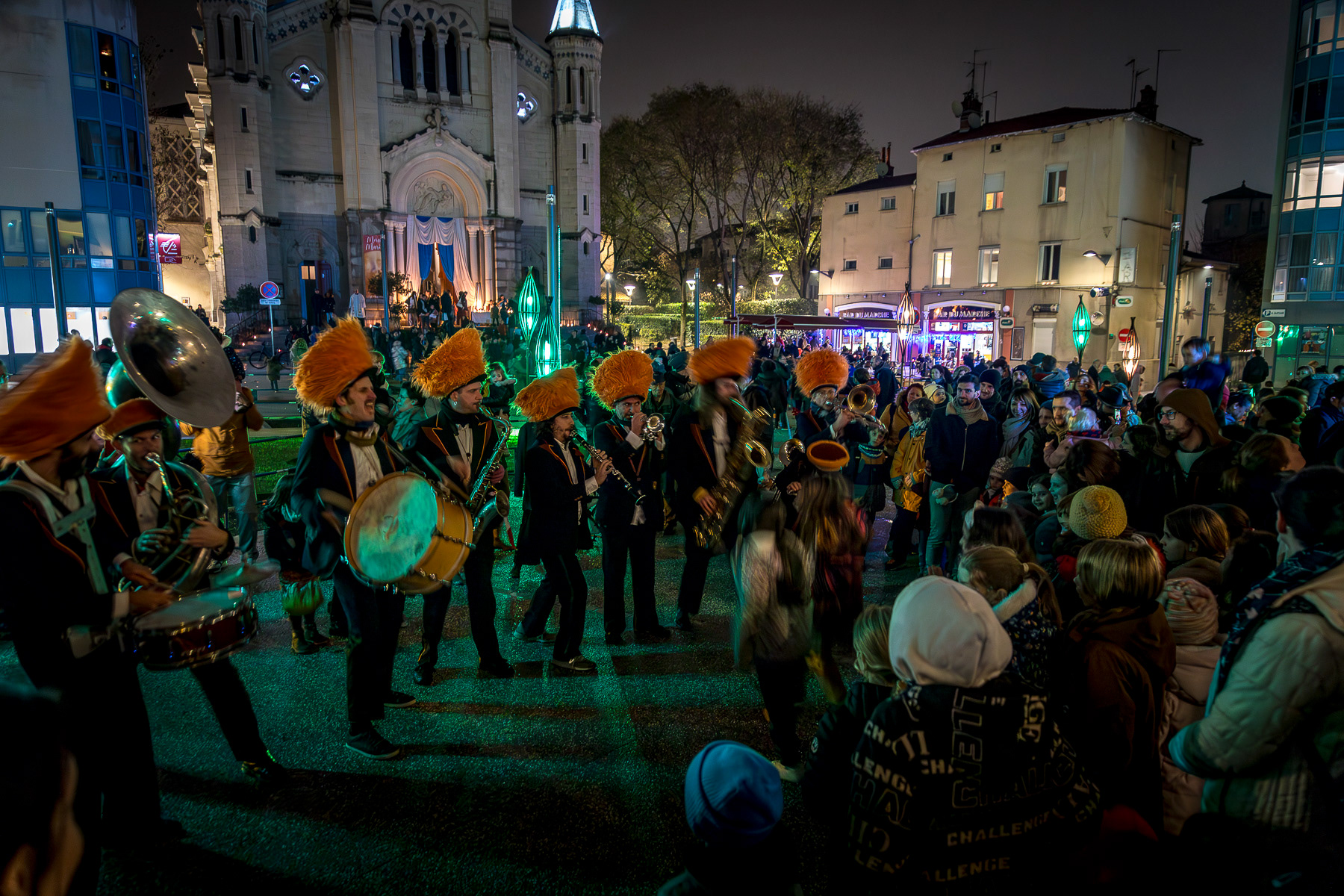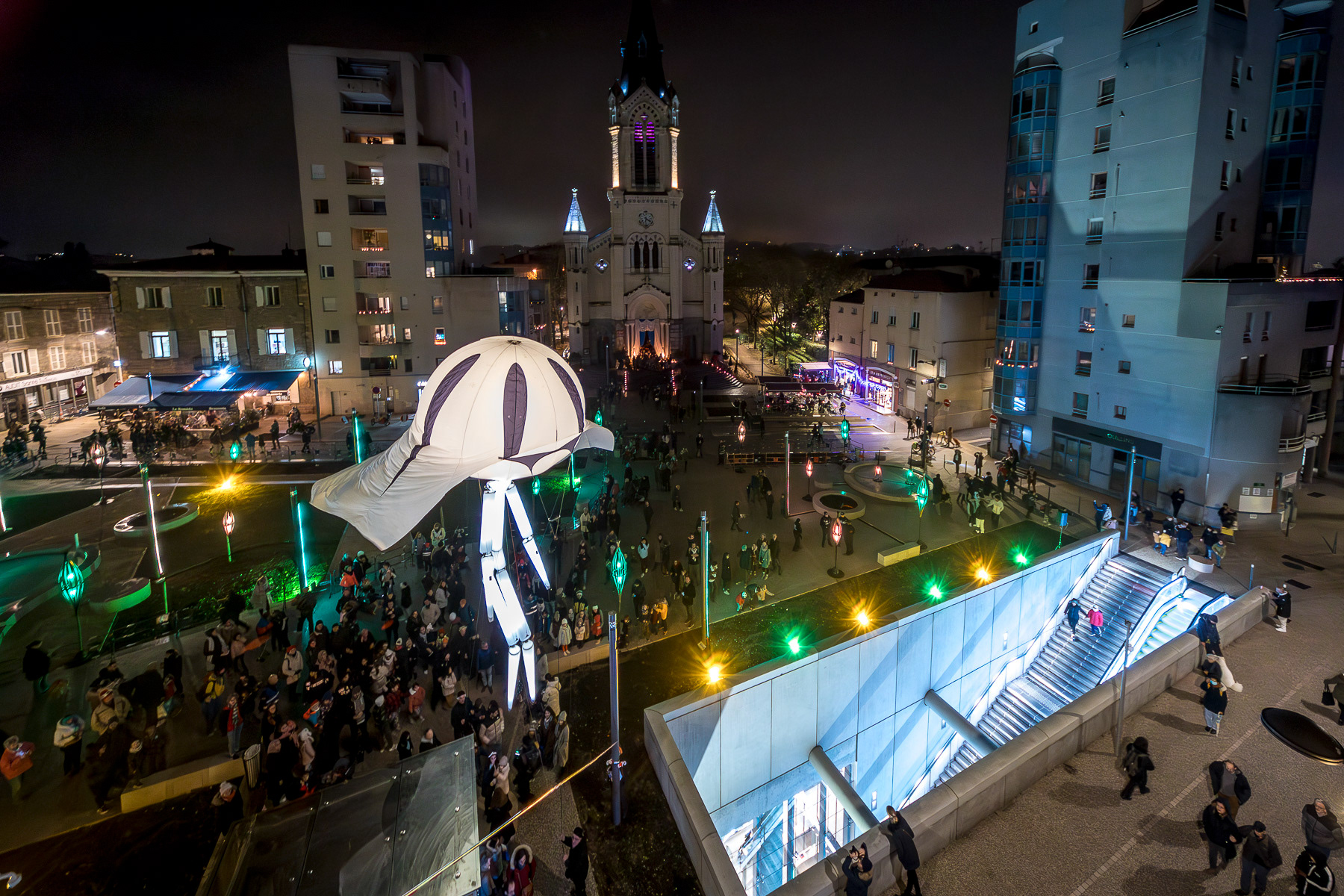 Reportage sur les festivités du 8 décembre dans le centre ville d'Oullins axé sur du spectacle vivant immersif - Oullins, Grand Lyon, France