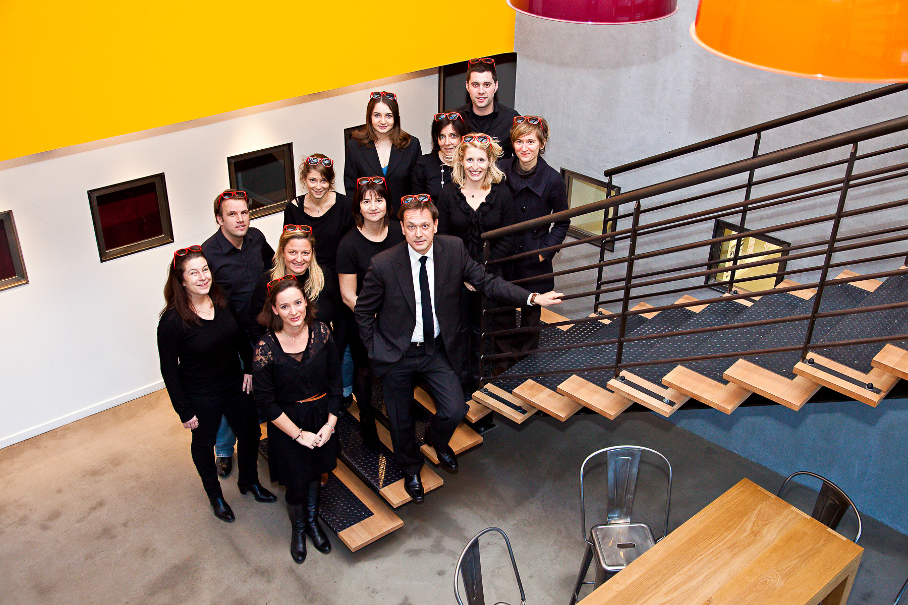 Shooting photo de portrait au flash dans les locaux de Fantassin, en low-key noir et blanc + photos de groupe - Lyon, France