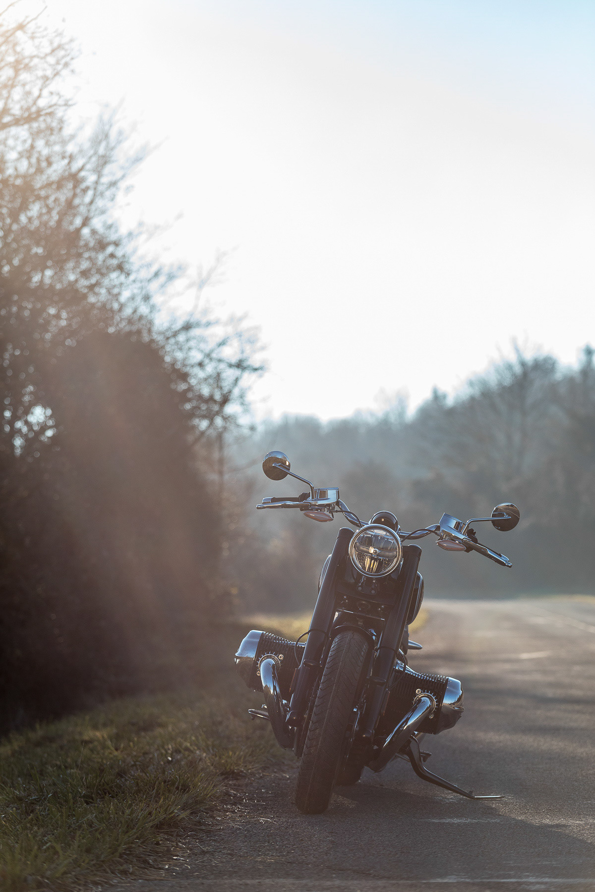 Shooting photo hivernal dans les monts du Lyonnais d'une nouvelle moto BMW - Saint-Didier au Mont d'Or, France