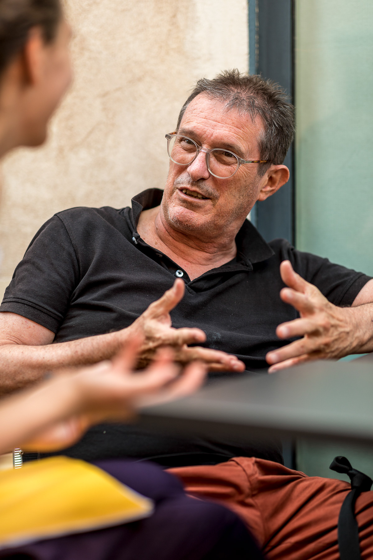 Réalisation de portraits pris sur le vif lors d'un reportage journalistique sur différents intervenants d'une école primaire interviewés (directeur, enseignant, éducateurs, parent d'élève, enfant) - Saint-Genis Laval, Grand Lyon, France