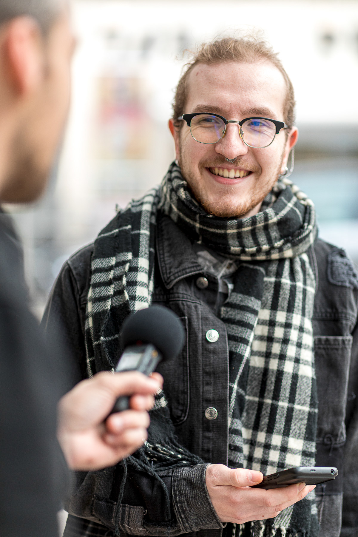 Photos de portrait pour illustrer un micro-trottoir, avec des personnes choisies dans la rue - Saint-Genis-Laval, Grand Lyon, France
