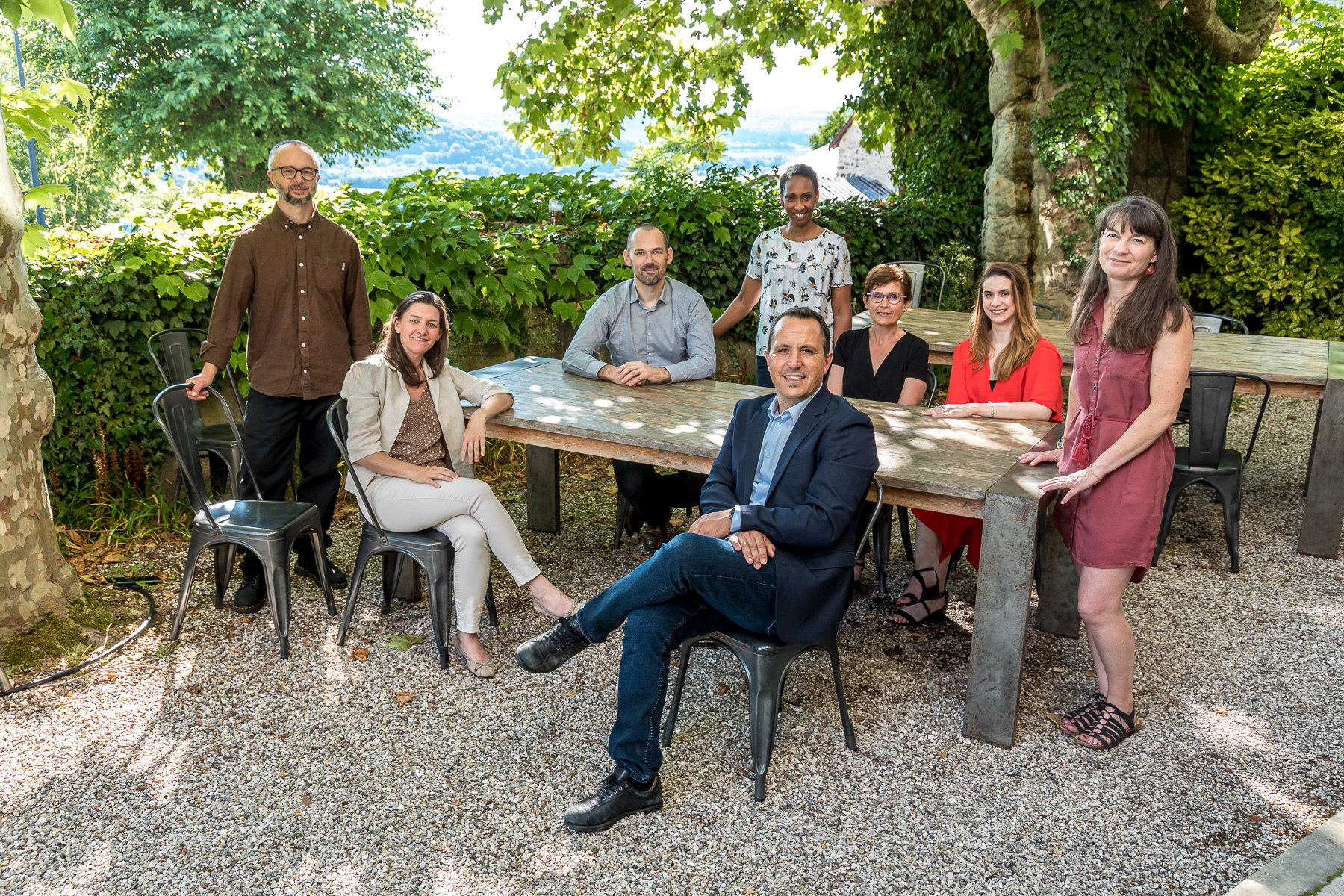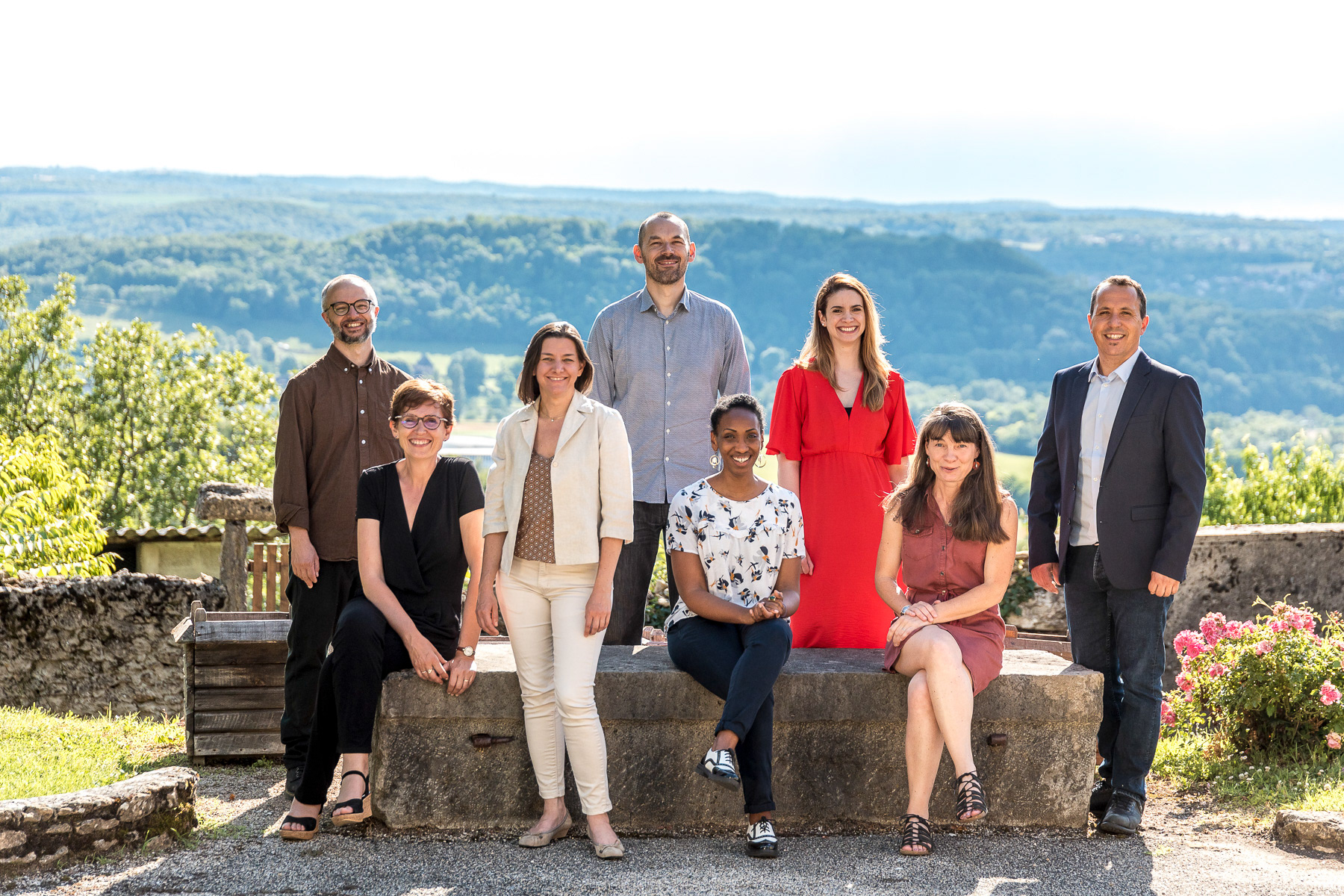 Photos de groupe et portraits individuels réalisés lors d'une convention d'entreprise conviviale - Montagnieu, France
