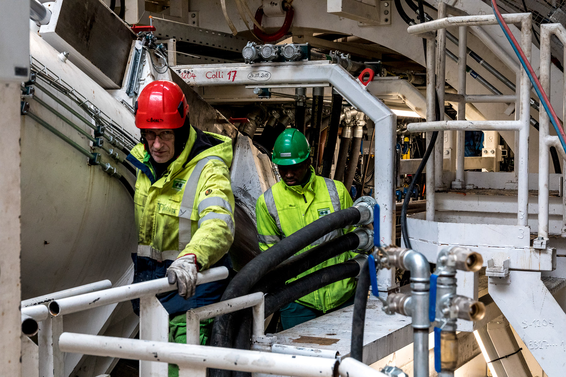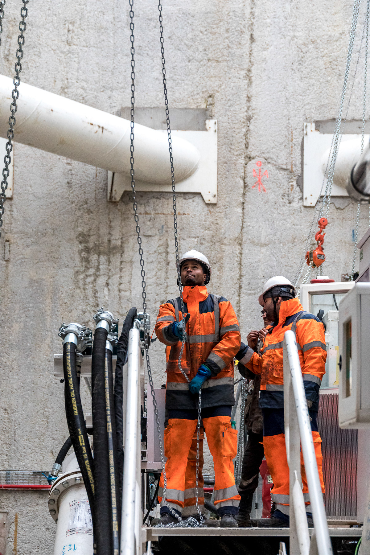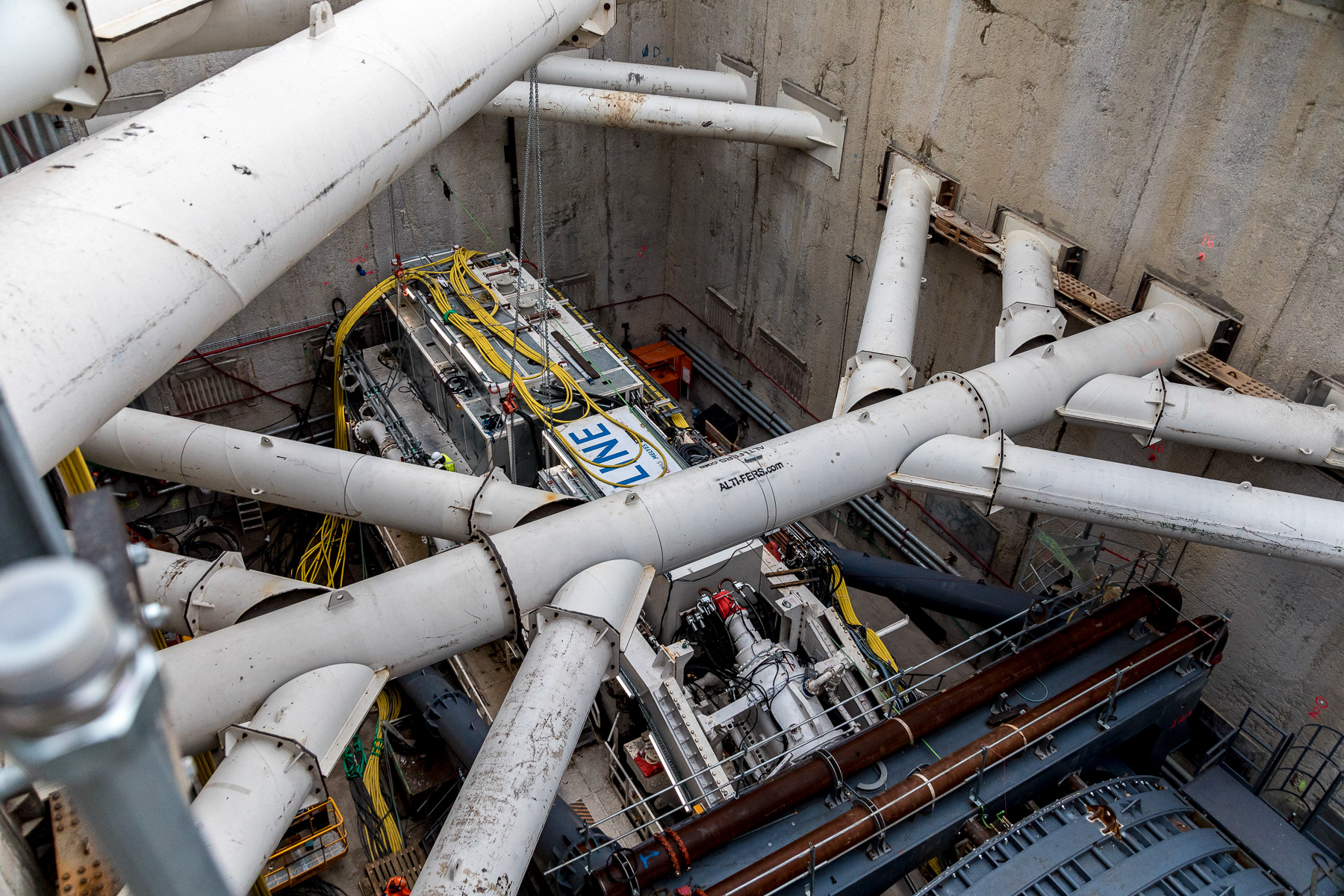 Reportage photographique sur le départ du chantier de creusement du métro et du tunnelier "Coline" - Saint-Genis-Laval, Grand Lyon, France