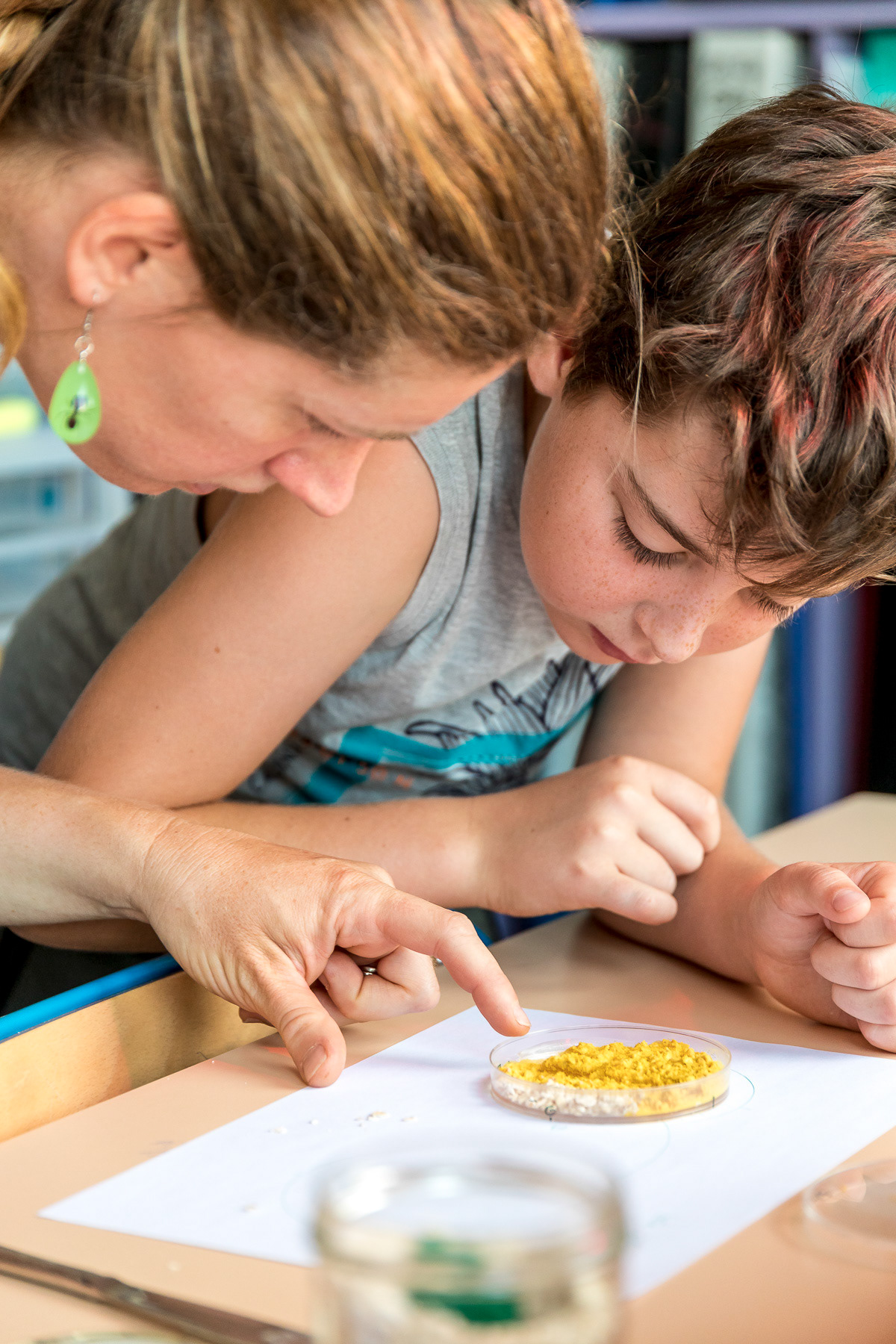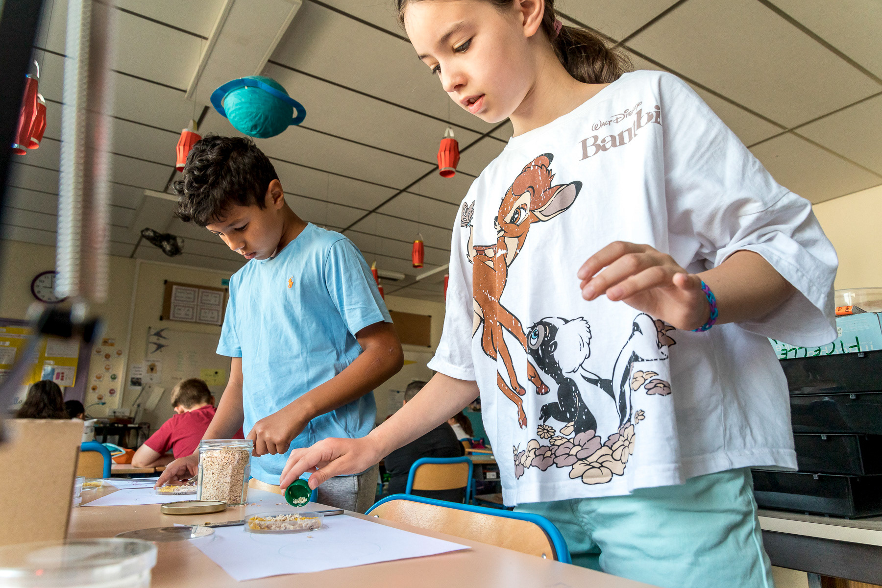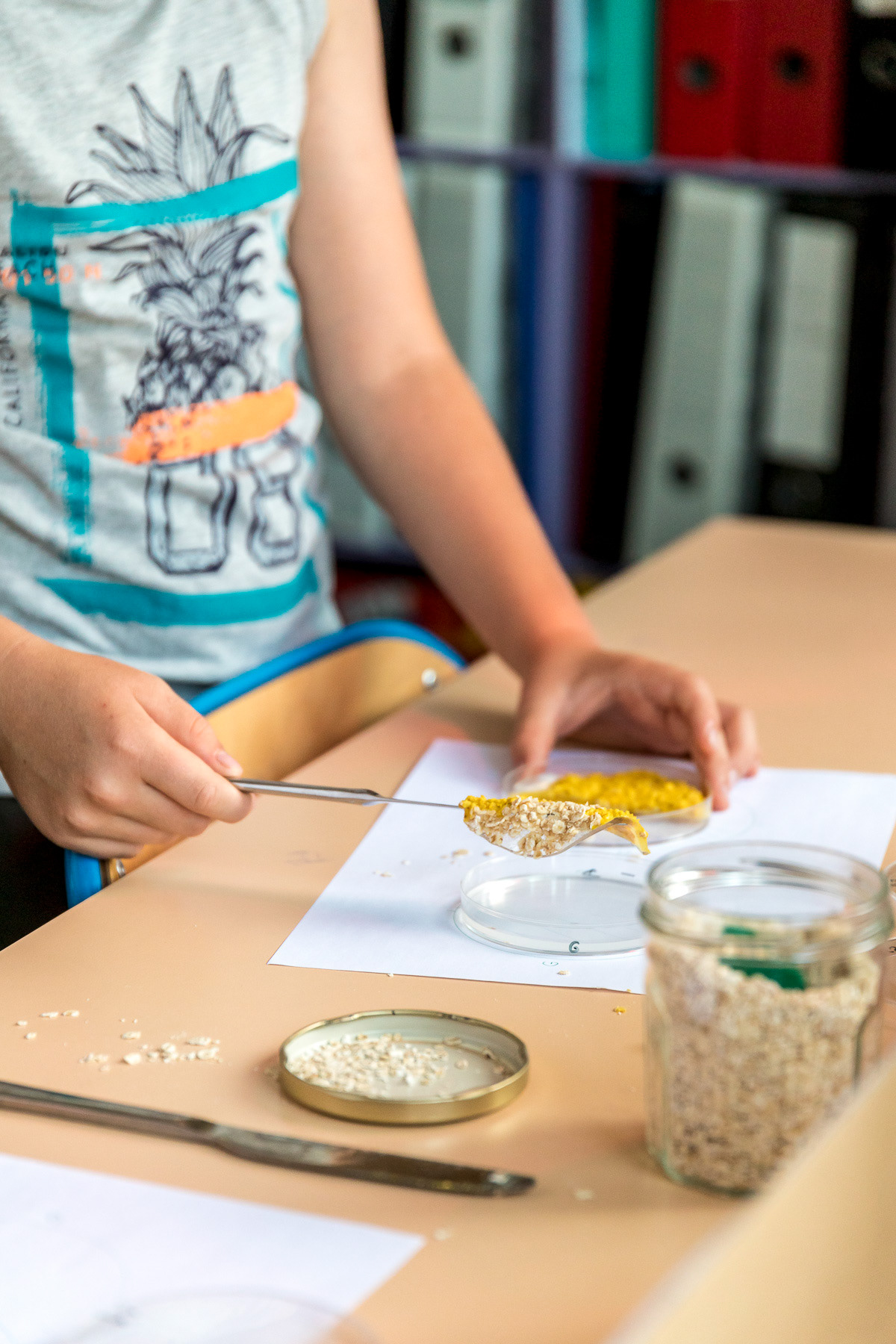 Reportage photo d'activités dans une classe de CP sur le blob, en collaboration avec le CNRS - Saint-Genis-Laval, Grand Lyon, France