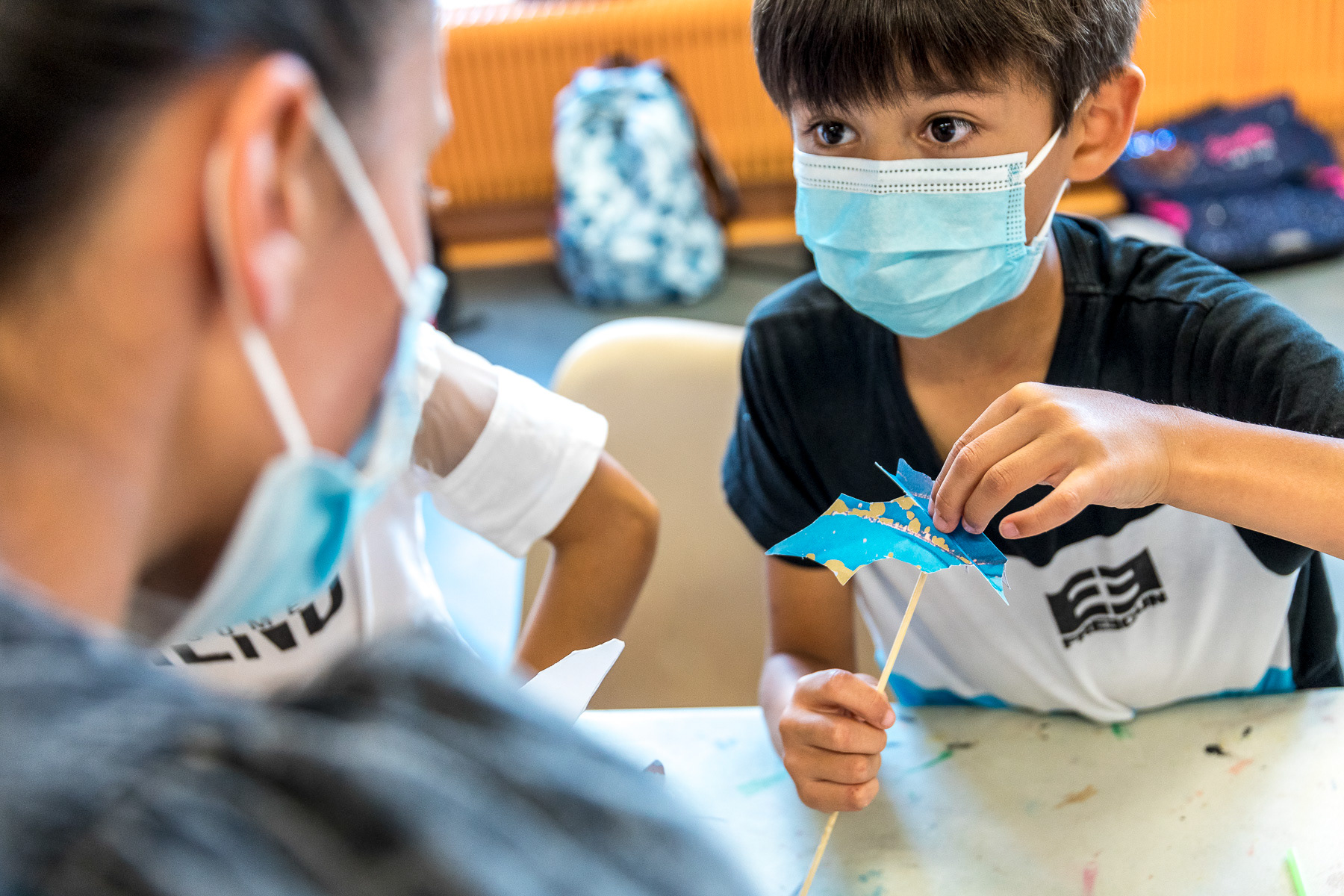 Reportage photo d'activités dans une classe de CP sur le blob, en collaboration avec le CNRS - Saint-Genis-Laval, Grand Lyon, France