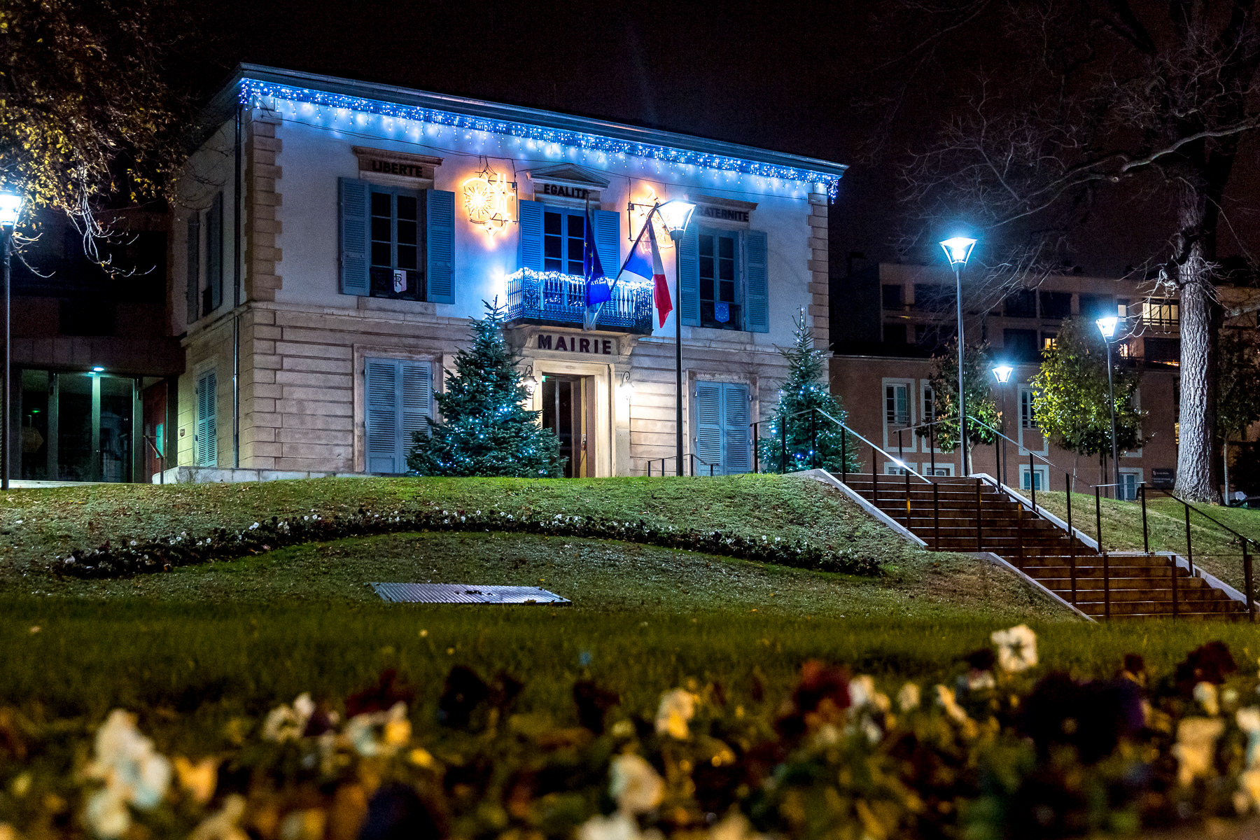 Reportage photo à l'occasion de l'événement "La Nuit est Belle" organisée par la Métropole de Lyon. Lecture dans l'obscurité au B612 et promenade nocturne durant l'extinction de l'éclairage urbain - Saint-Genis-Laval, Grand Lyon, France