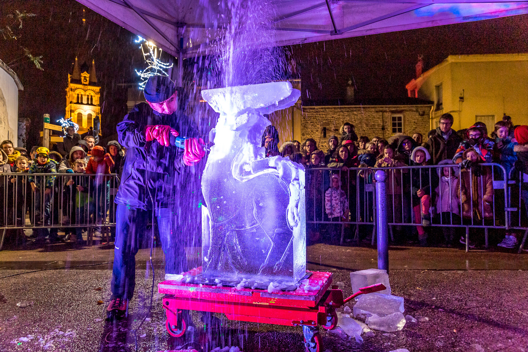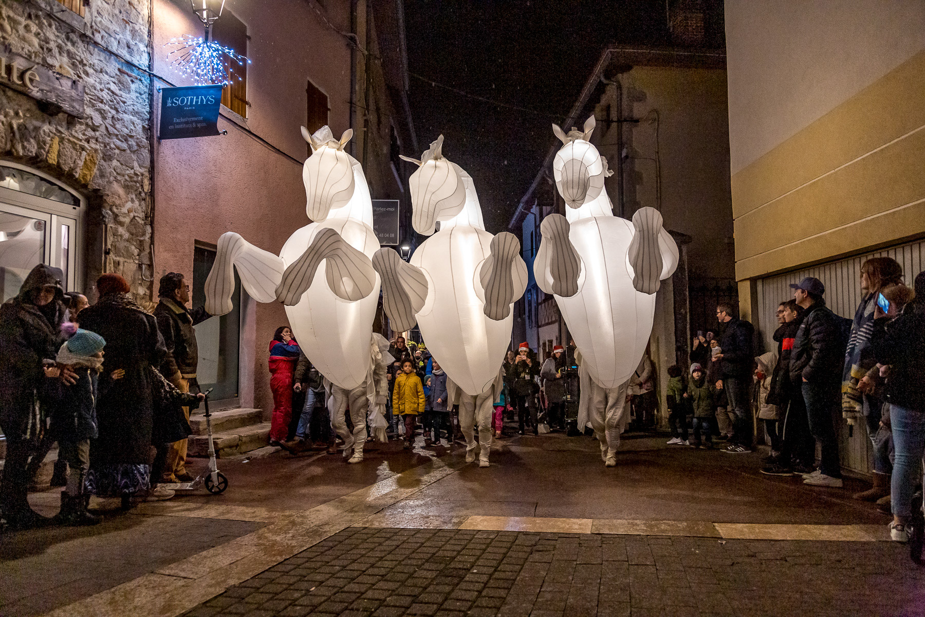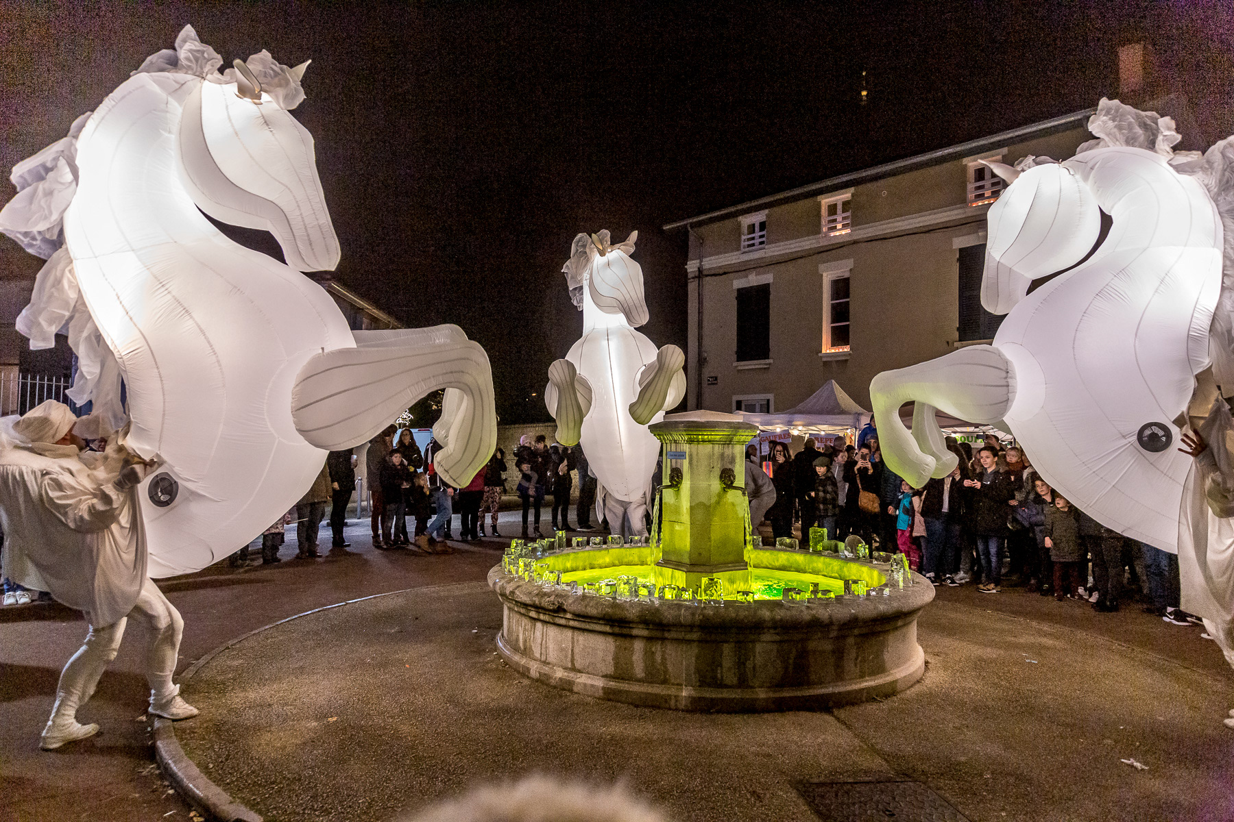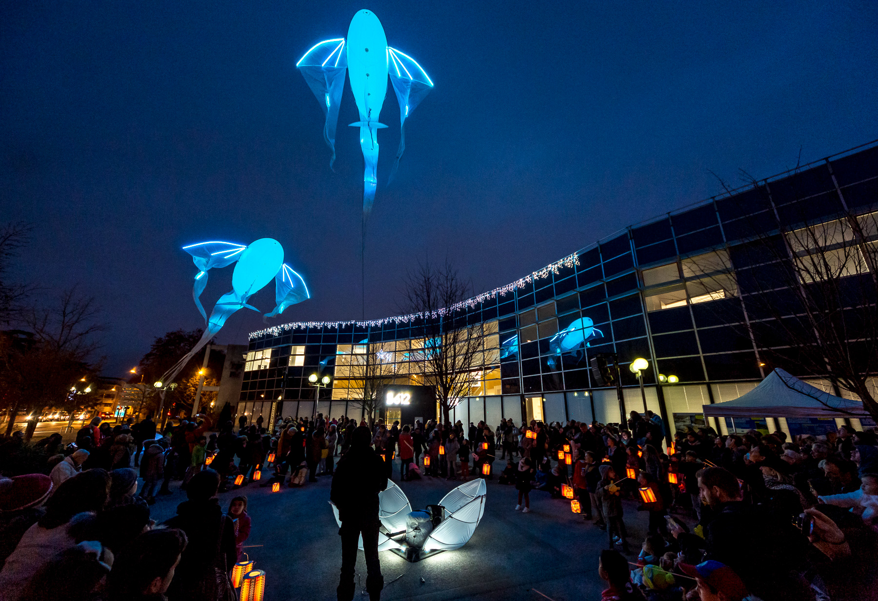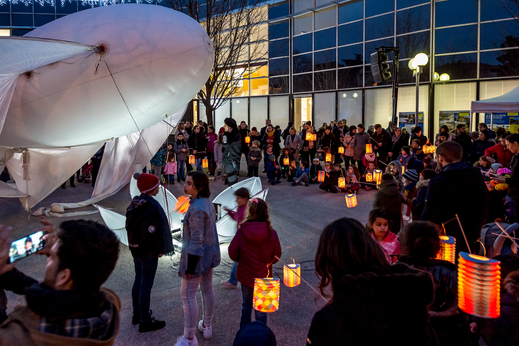Reportage photo de la fête des lumières du 8 décembre. Photographies des spectacles et de l'affluence - Saint-Genis-Laval, Grand Lyon, France