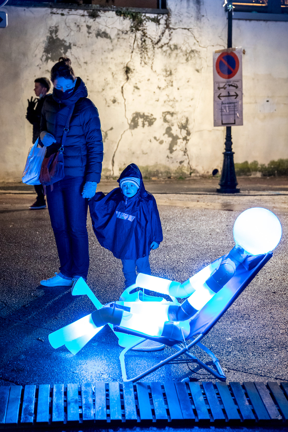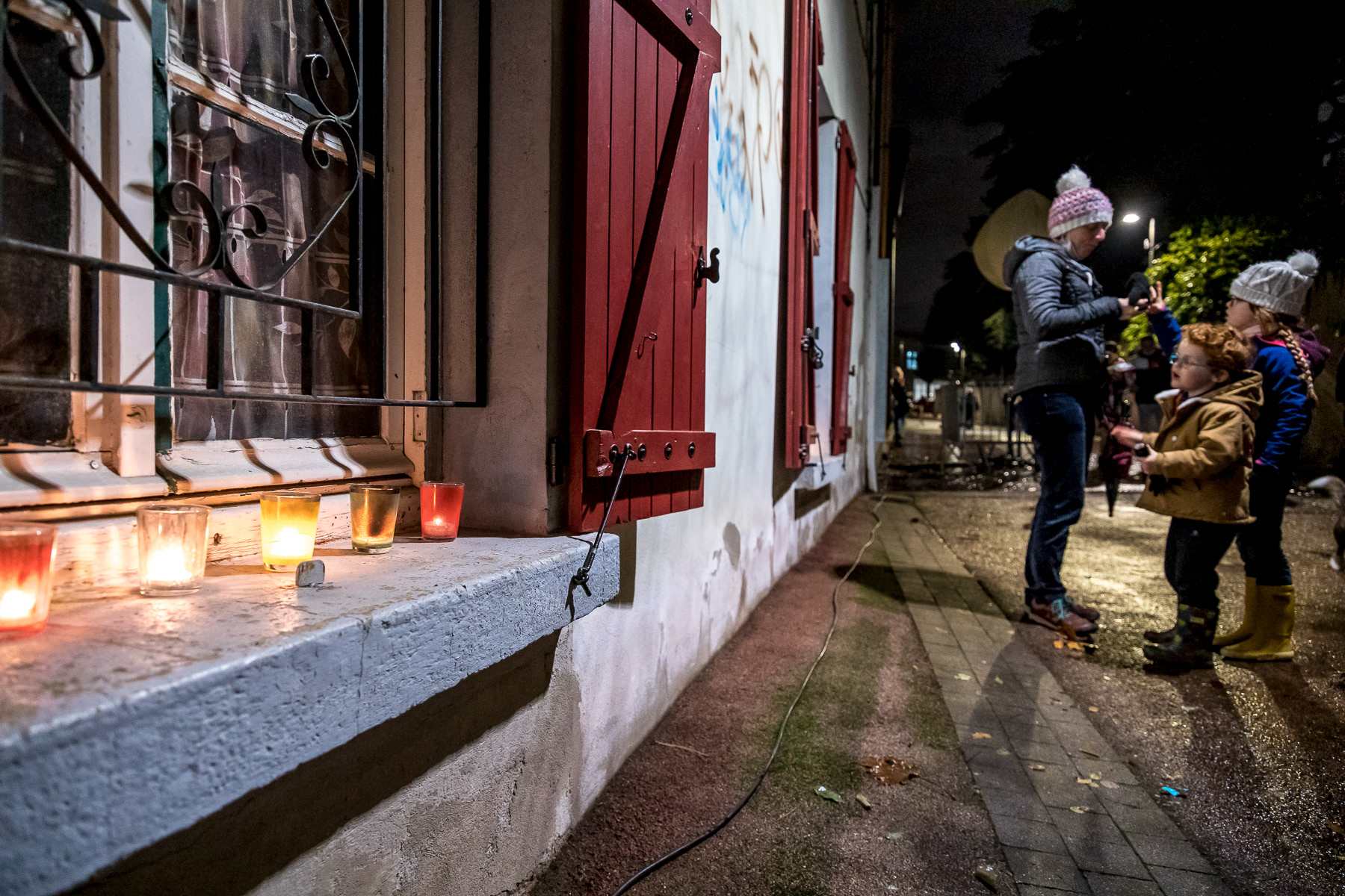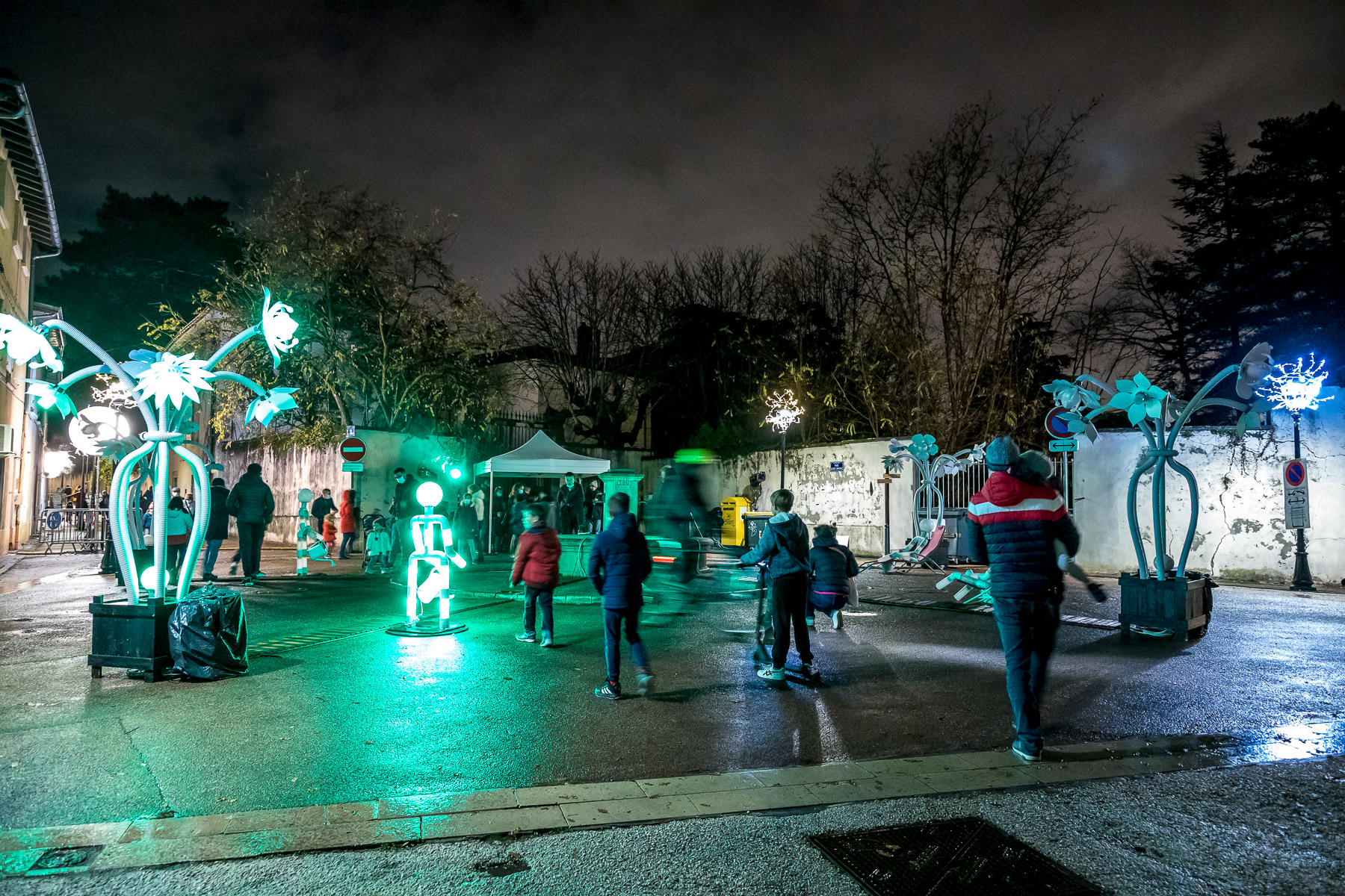 Reportage photo de la fête des lumières du 8 décembre. Installations et affluence - Saint-Genis-Laval, Grand Lyon, France