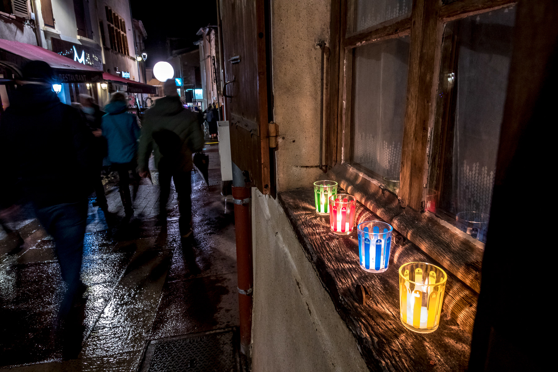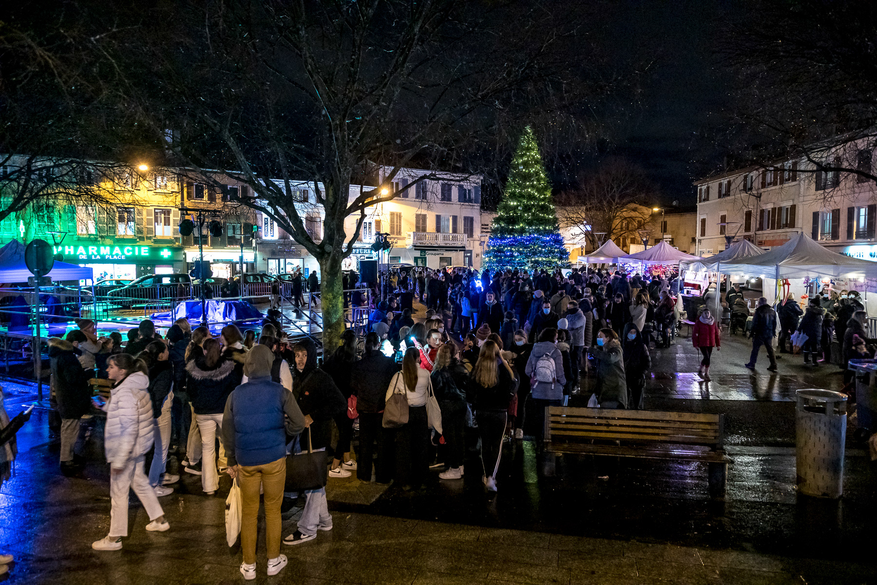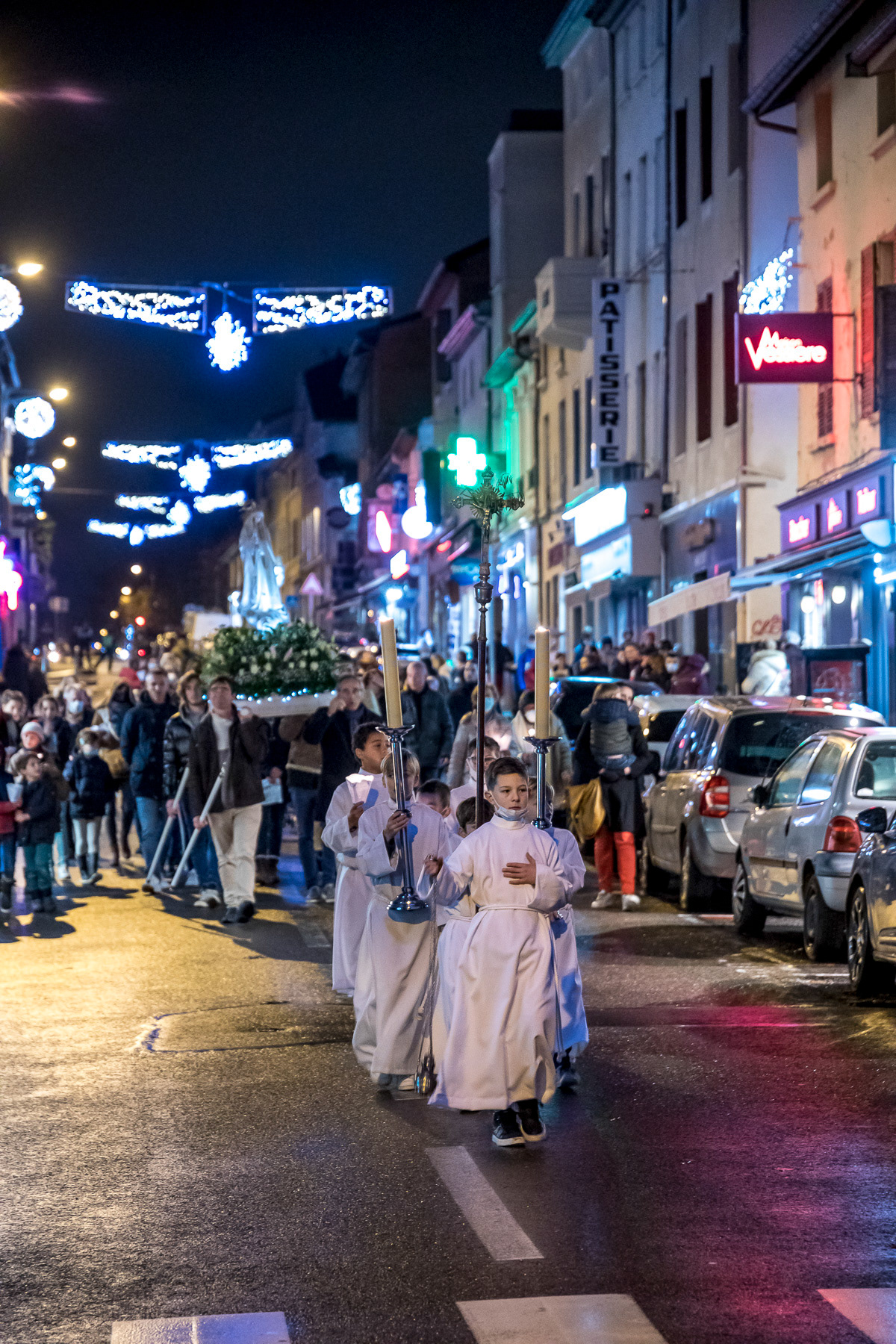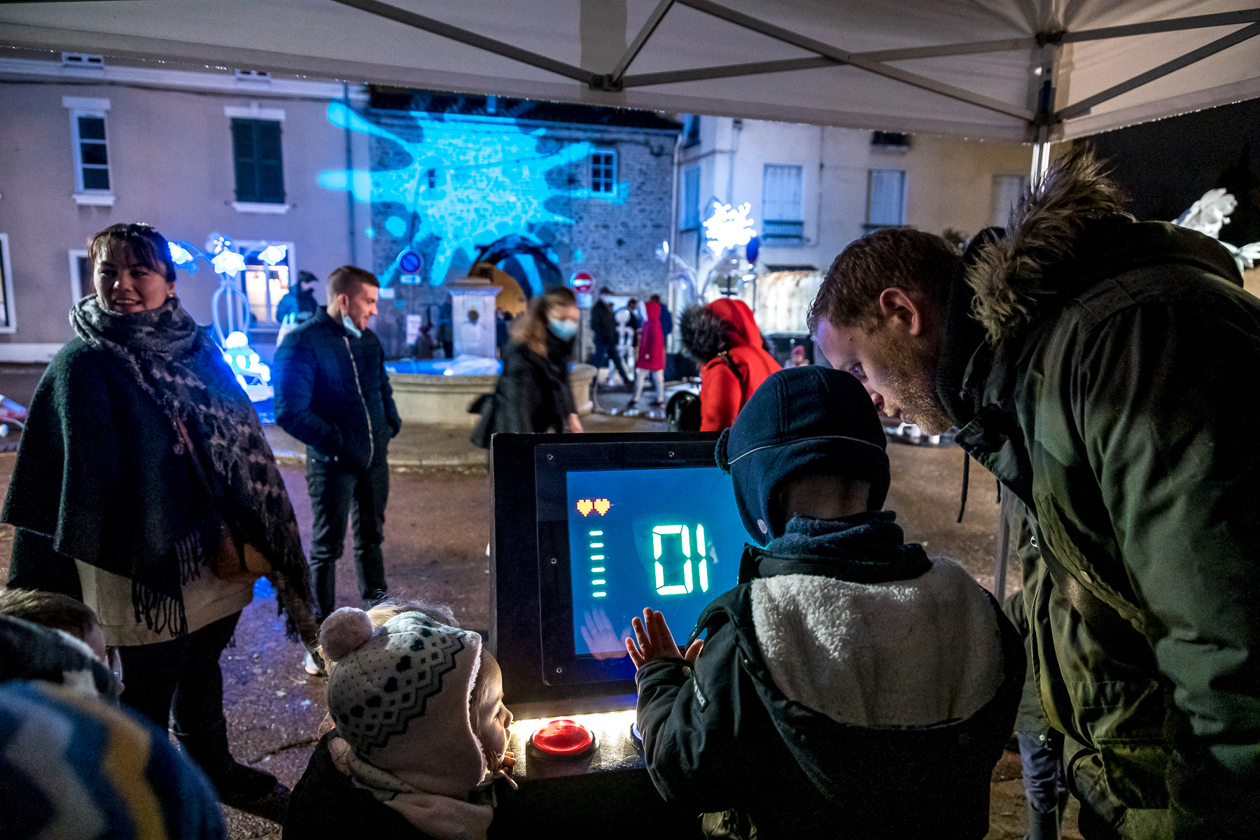 Reportage photo de la fête des lumières du 8 décembre. Installations et affluence - Saint-Genis-Laval, Grand Lyon, France