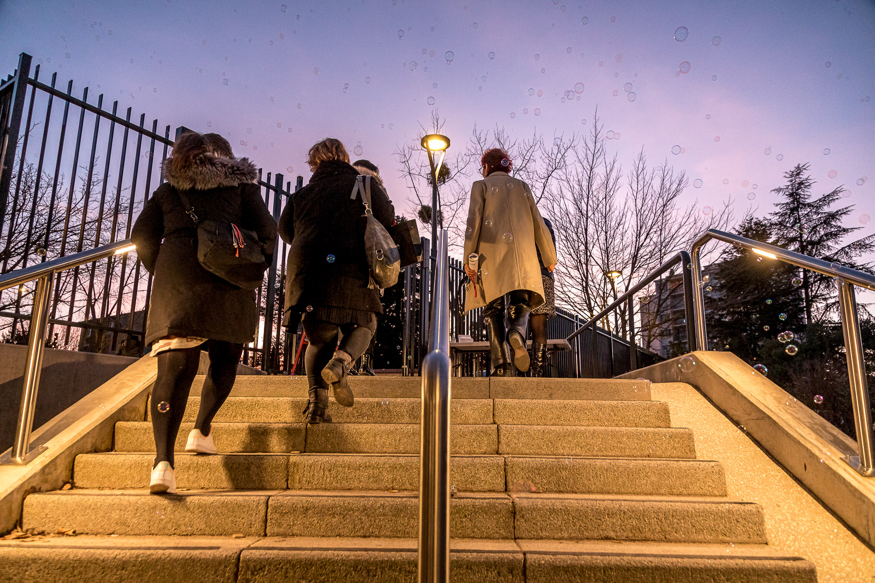 Reportage photo de la fête des lumières du 8 décembre. Photographies des spectacles et de l'affluence - Saint-Genis-Laval, Grand Lyon, France