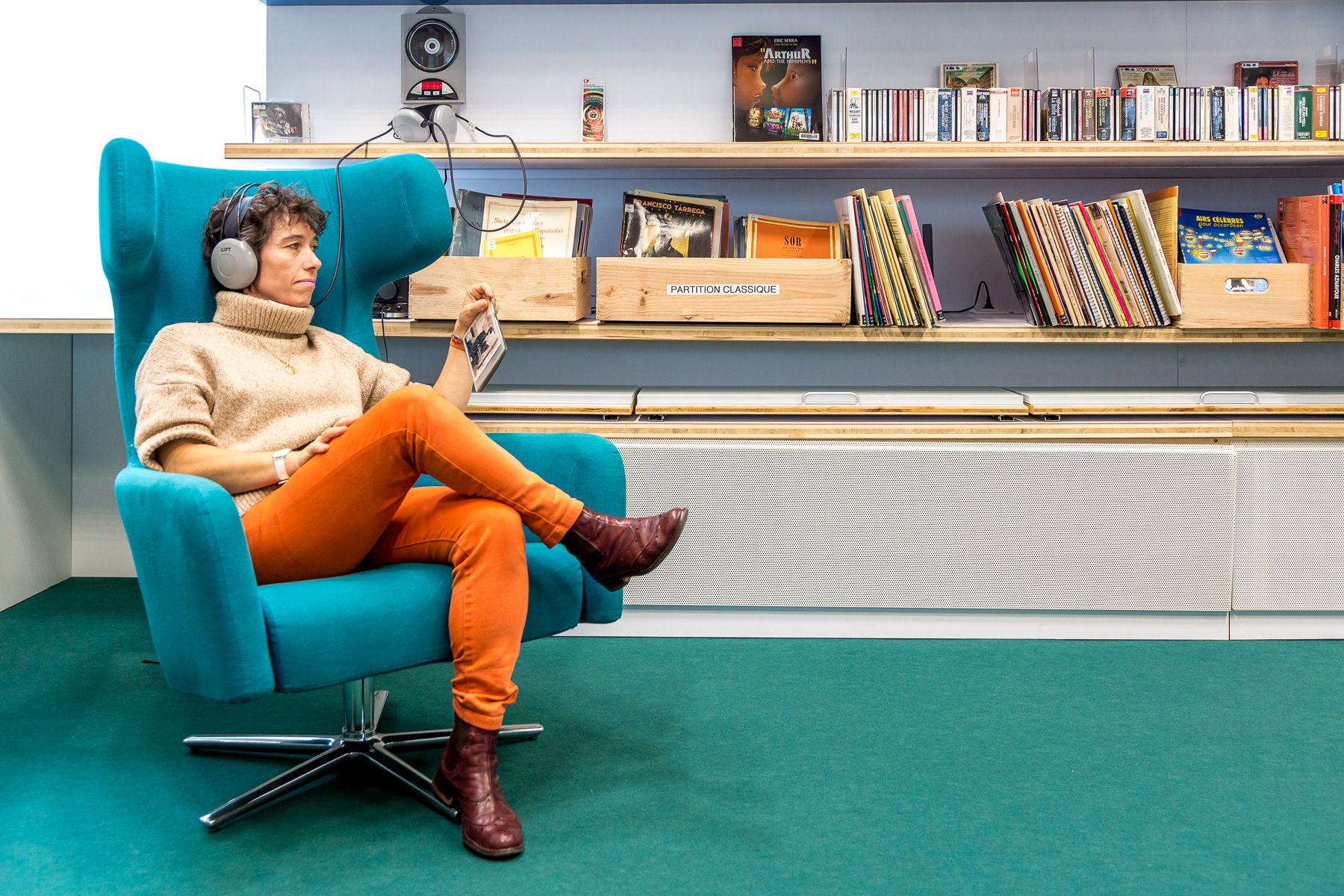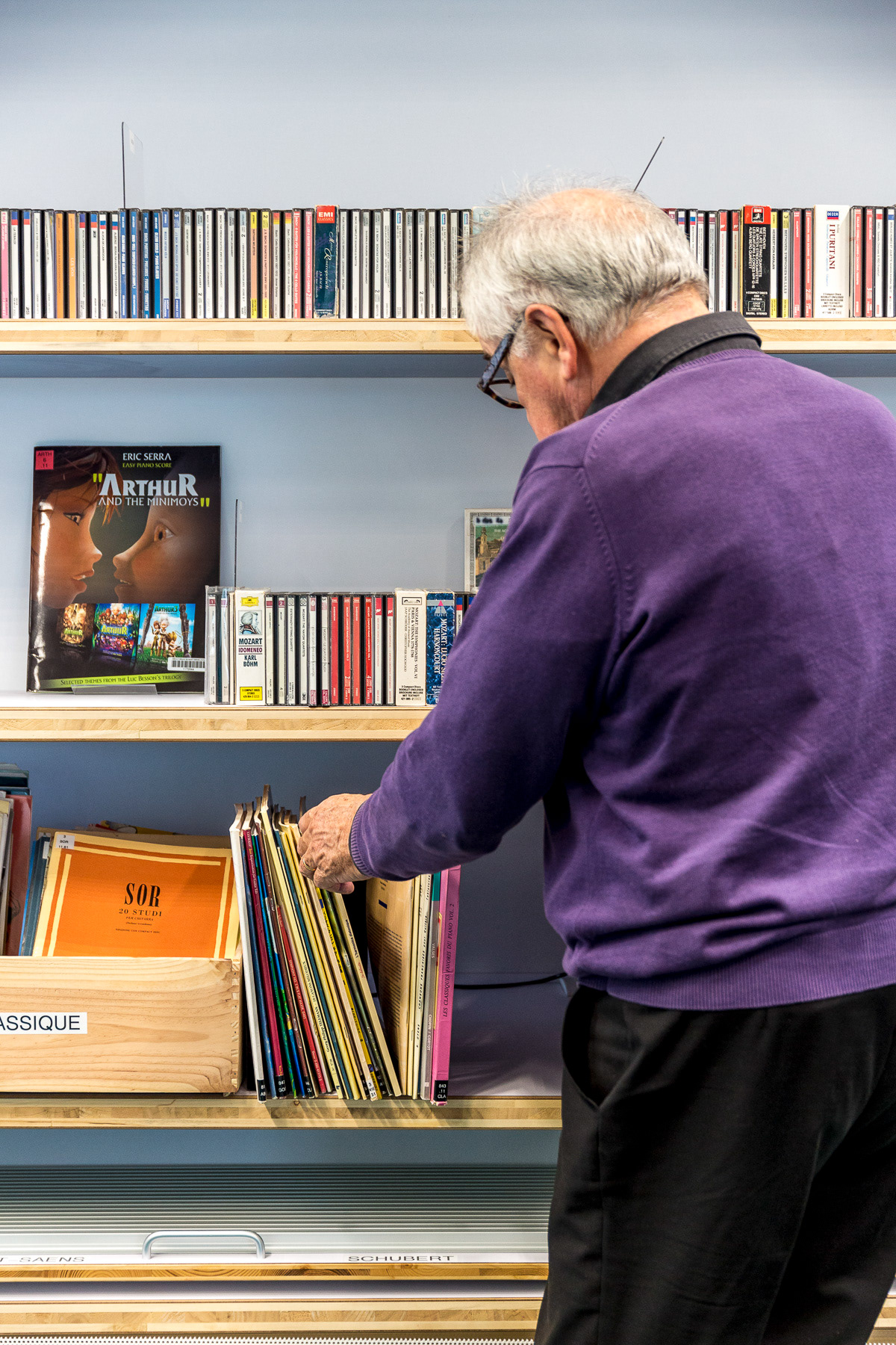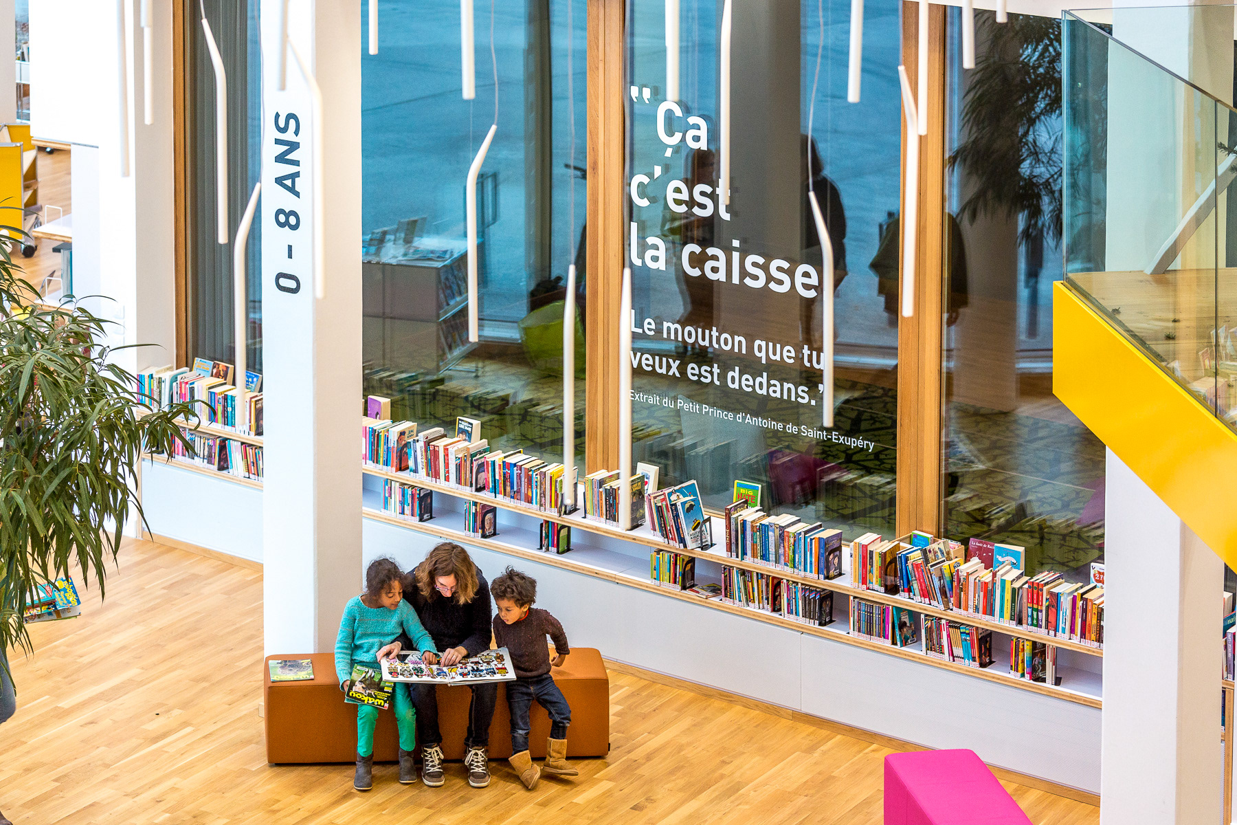 Reportage photographique sur les différentes activités d'une médiathèque, avec mises en scène - Saint-Genis-Laval, Grand Lyon, France