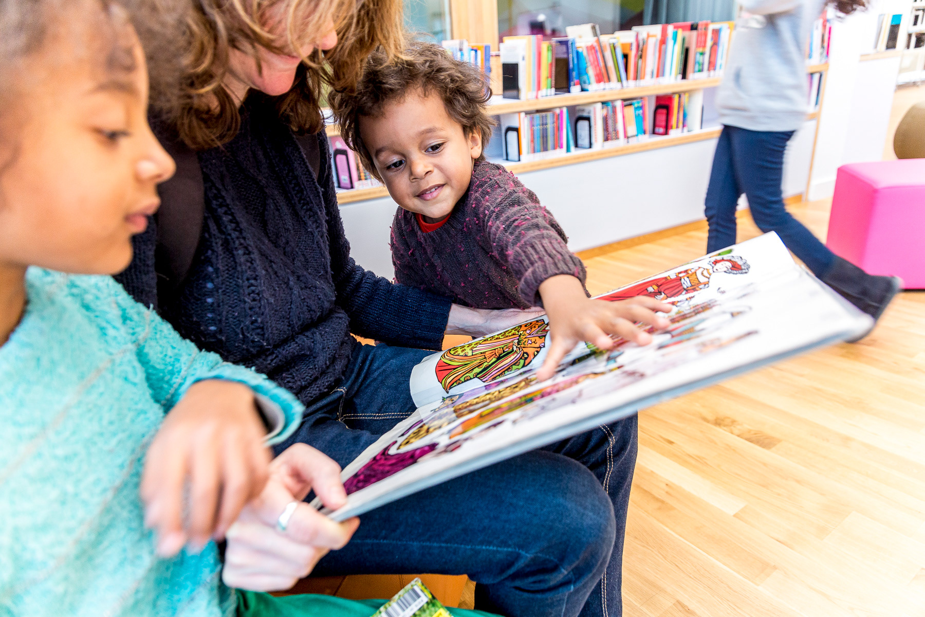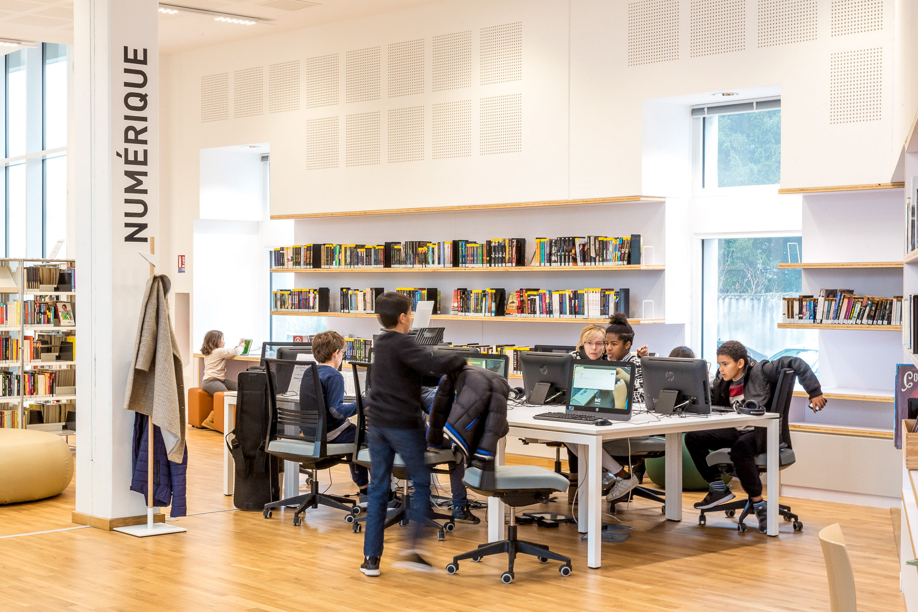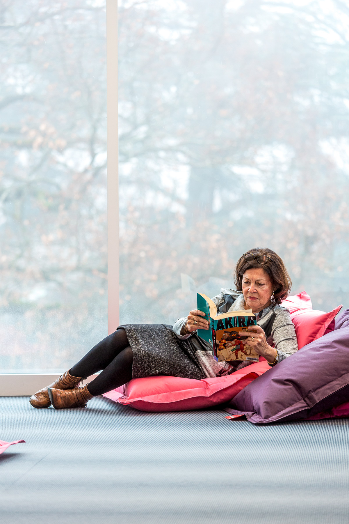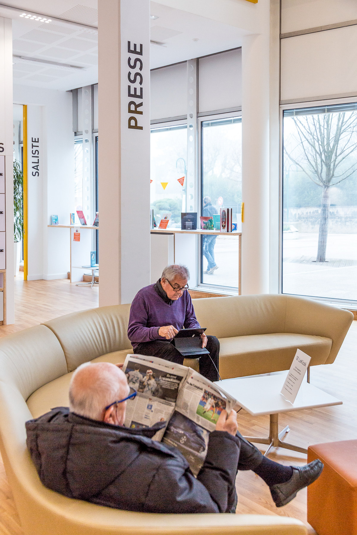 Reportage photographique sur les différentes activités d'une médiathèque, avec mises en scène - Saint-Genis-Laval, Grand Lyon, France