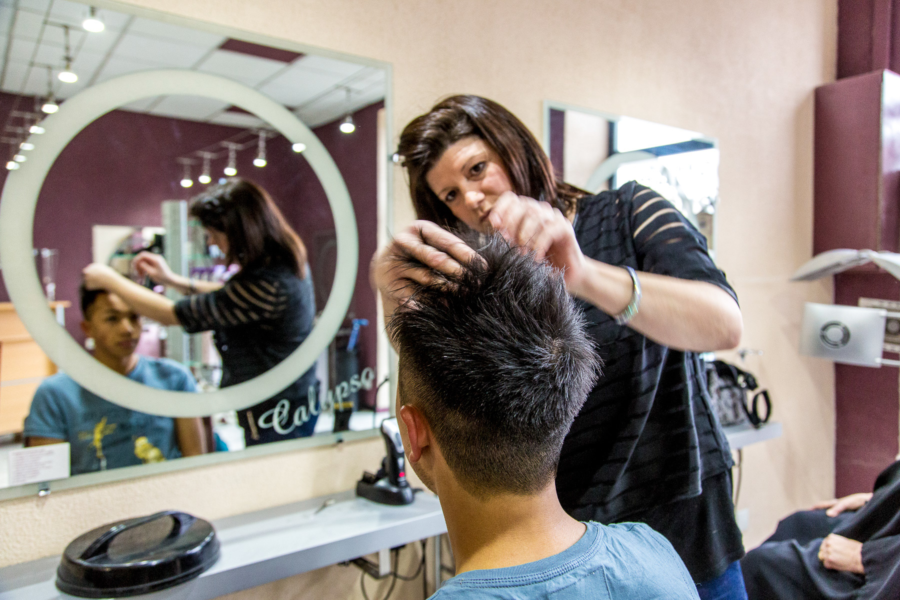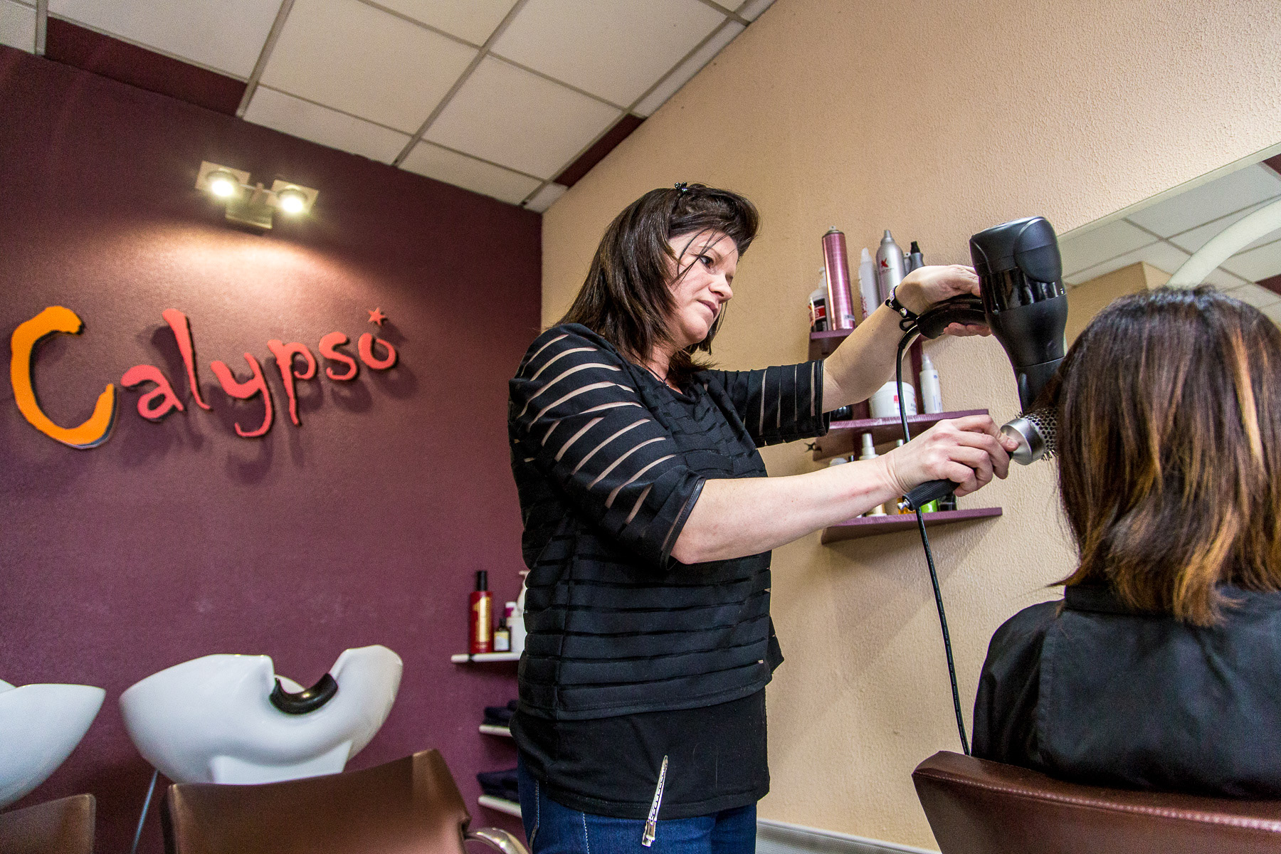 Reportage photo au salon de coiffure et d'esthétique Calypso, tenu par deux sœurs - Lorette entre Saint-Etienne et Lyon, France