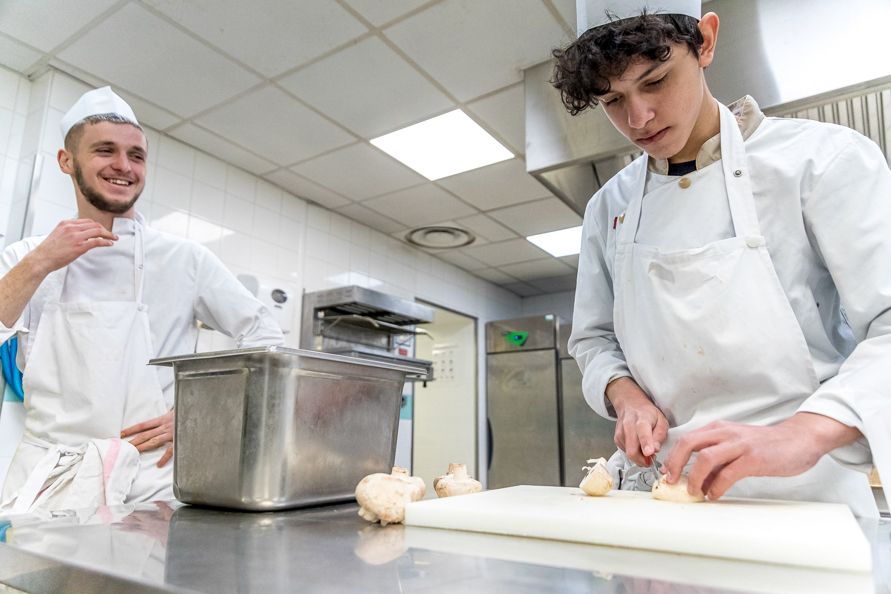 Reportage photo sur le lycée hôtelier La Vidaude, où des jeunes en difficulté aprennent les métiers de la restauration et du service - Saint-Genis-Laval, Métropole de Lyon, France