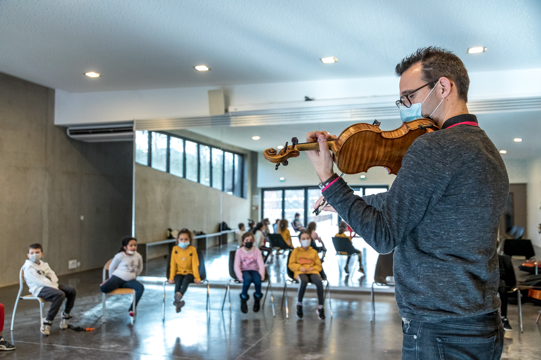 Suivi photographique d'un projet de découverte de la musique pour des enfants de milieux défavorisés - Saint-Genis-Laval, Grand Lyon, France
