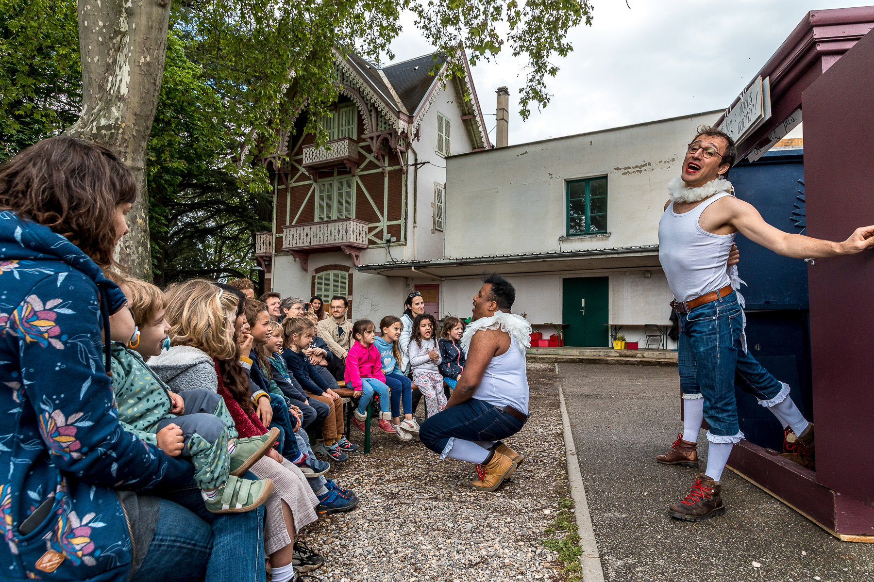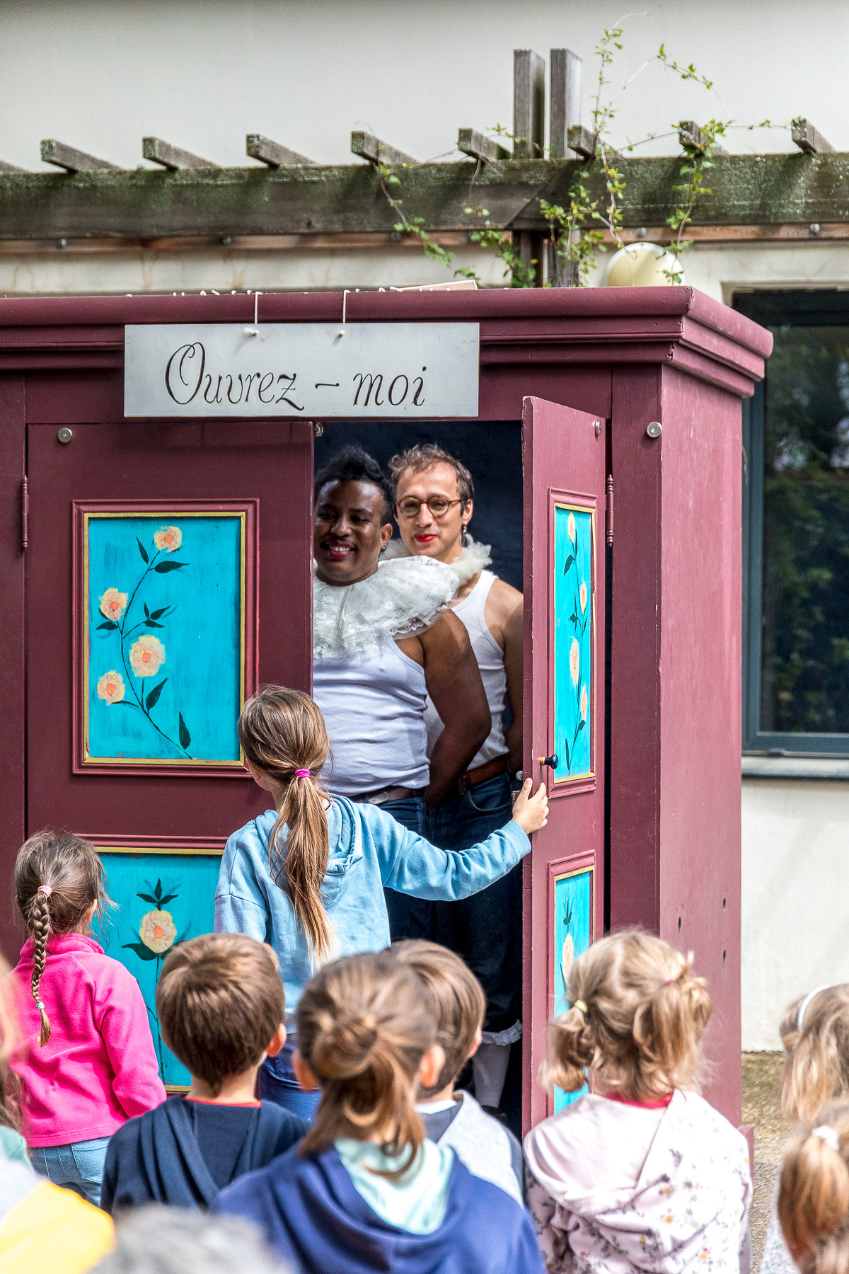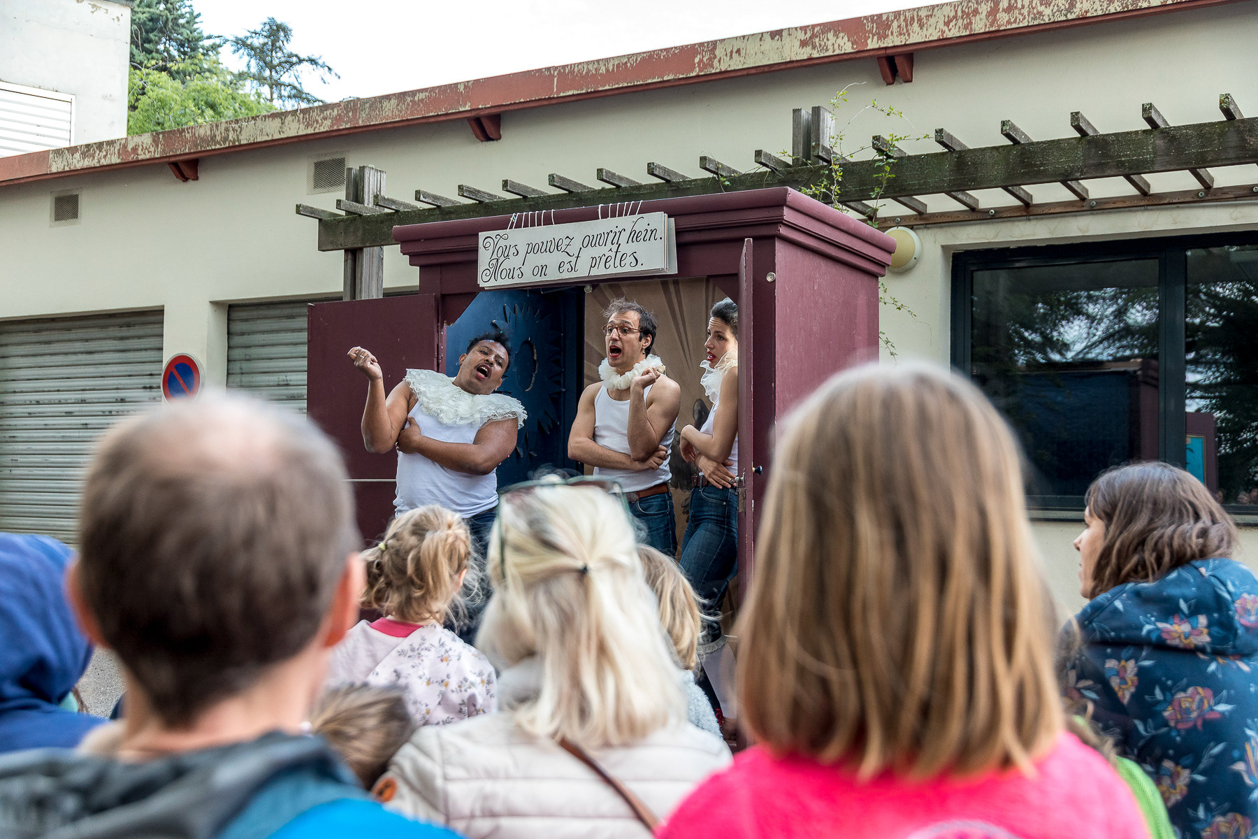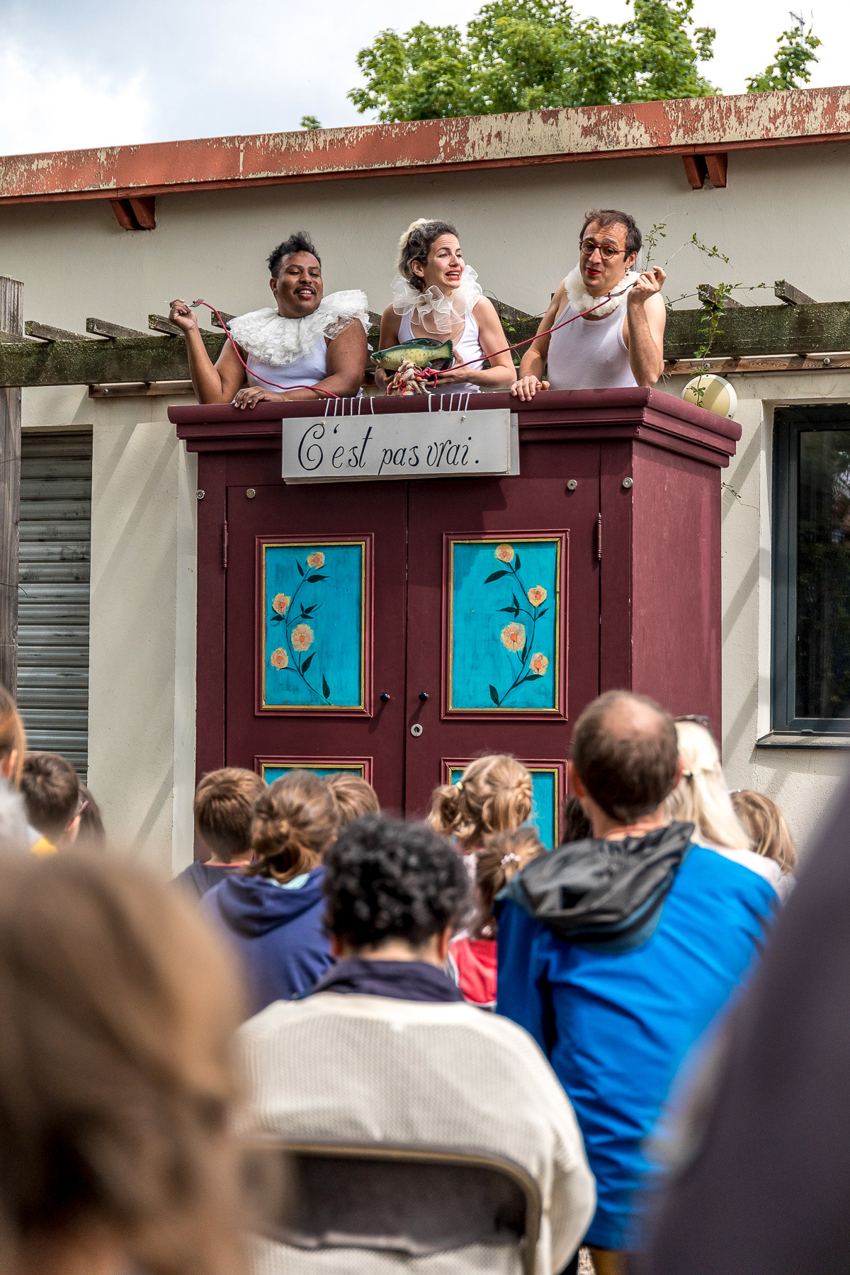 Reportage photo en live du spectacle théâtral en plein air "L'Armoire Polyphonique" par le Bureau d'Études de la Chason durant la fête de l'Iris - Oullins, Grand Lyon, France