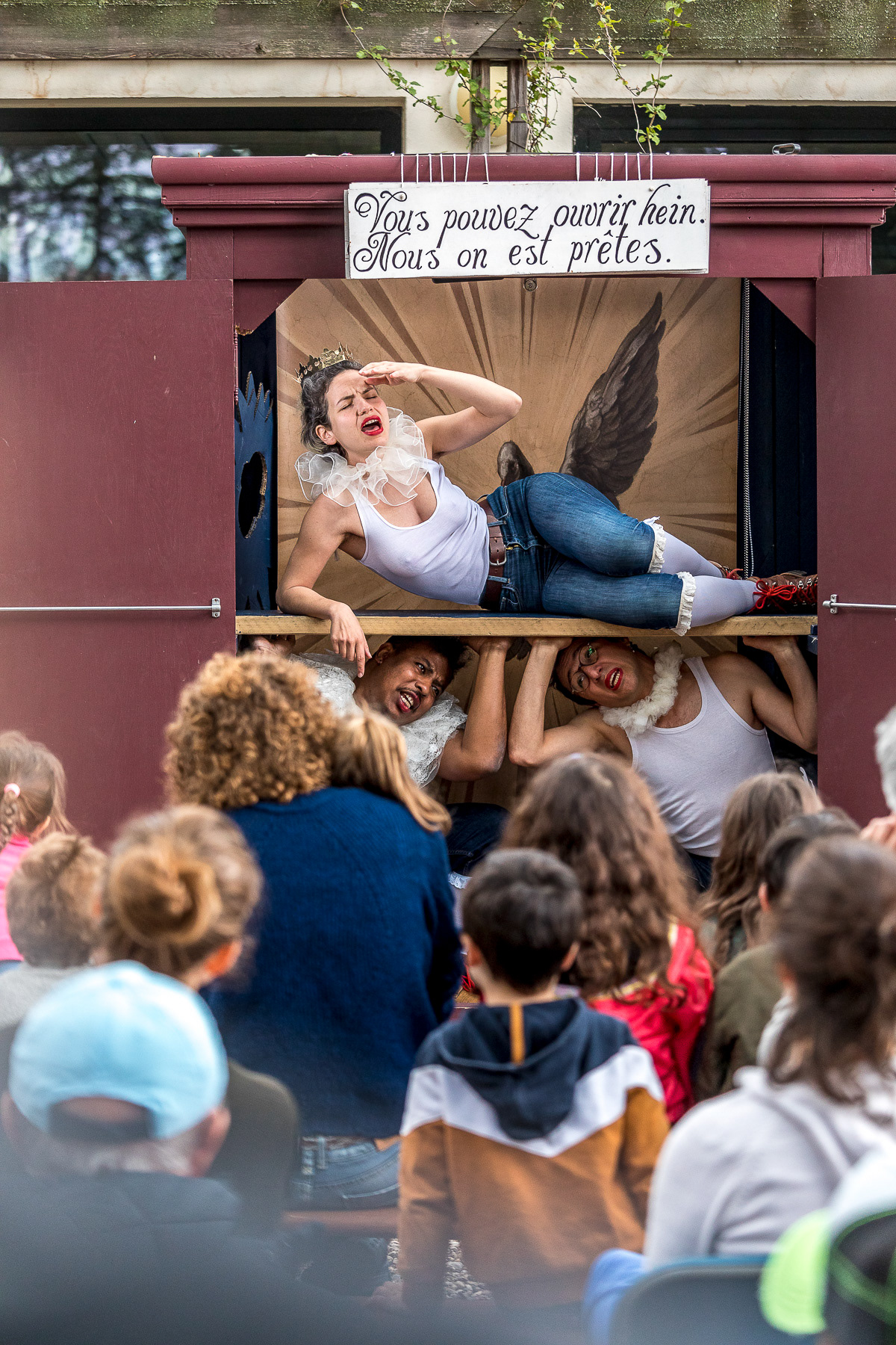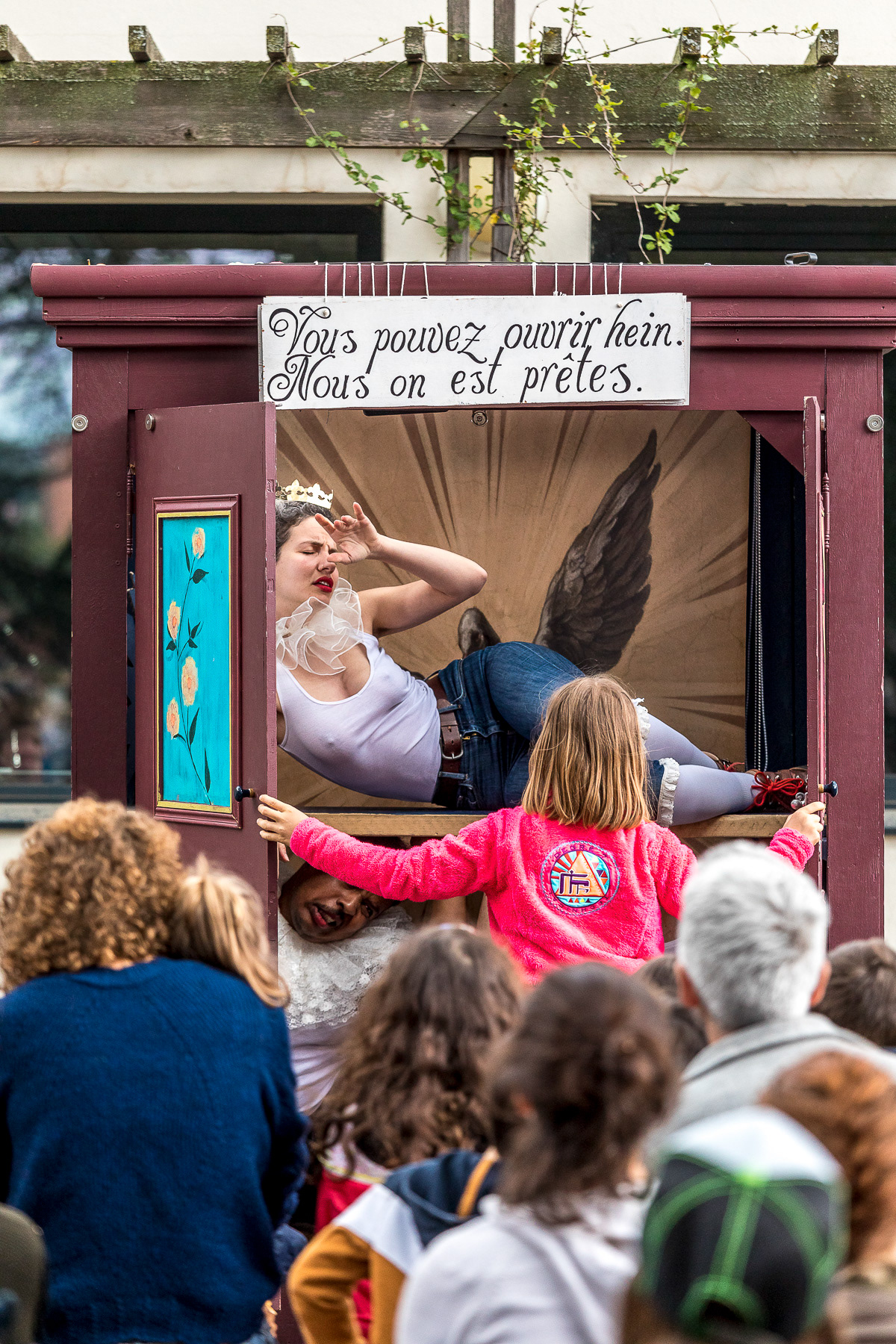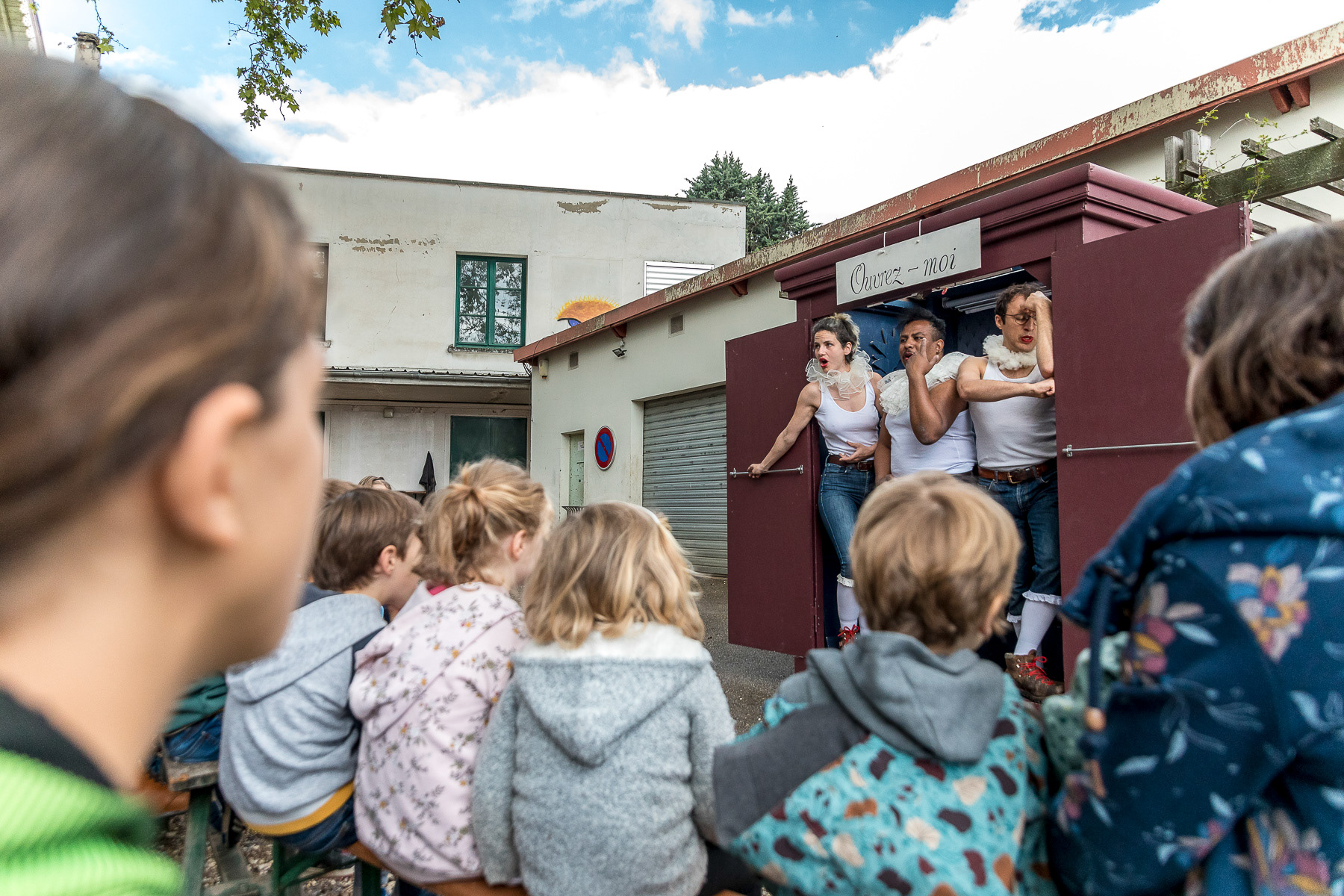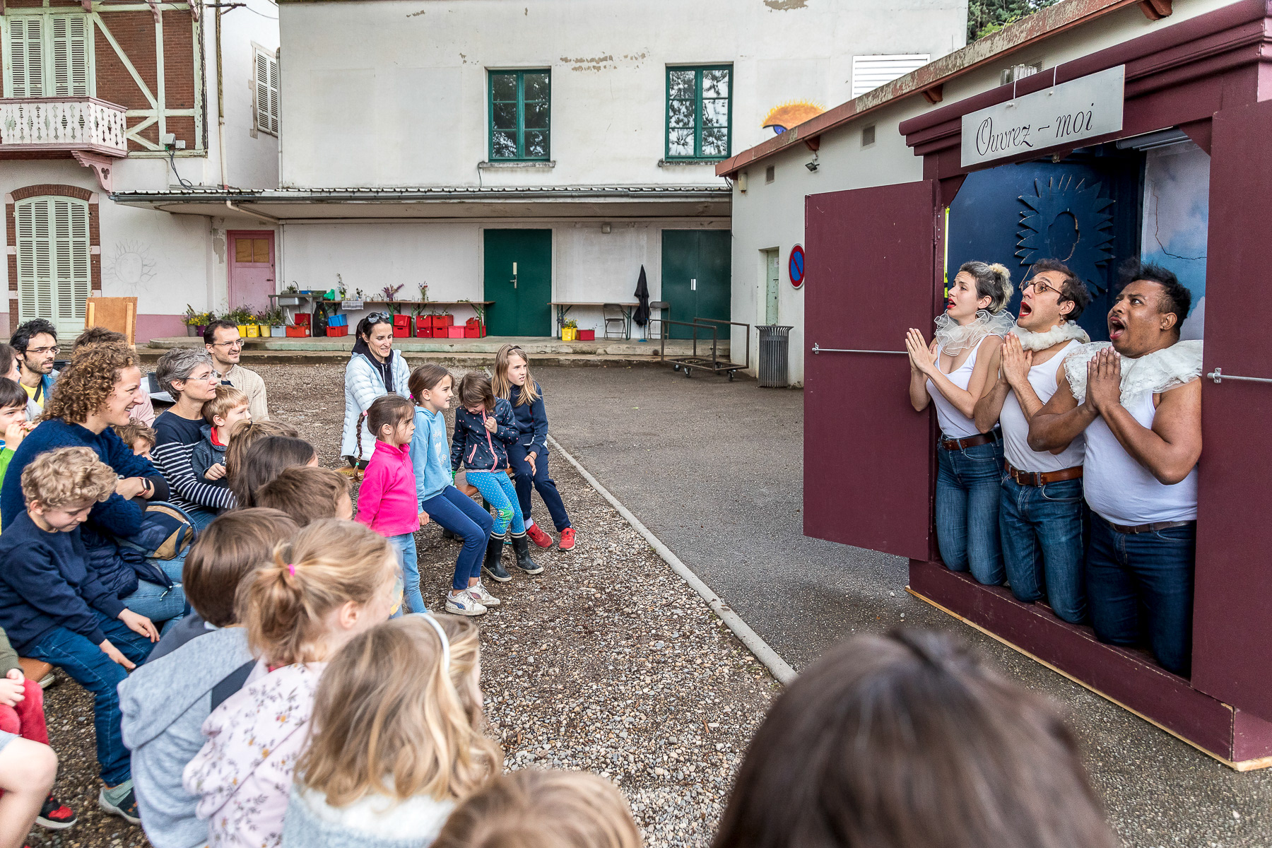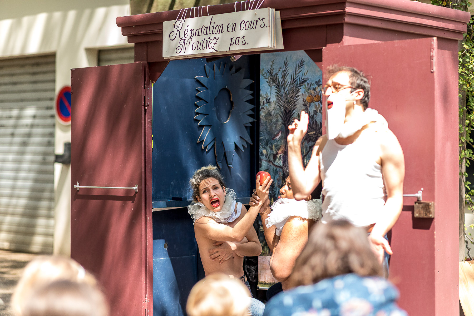 Reportage photo en live du spectacle théâtral en plein air "L'Armoire Polyphonique" par le Bureau d'Études de la Chason durant la fête de l'Iris - Oullins, Grand Lyon, France